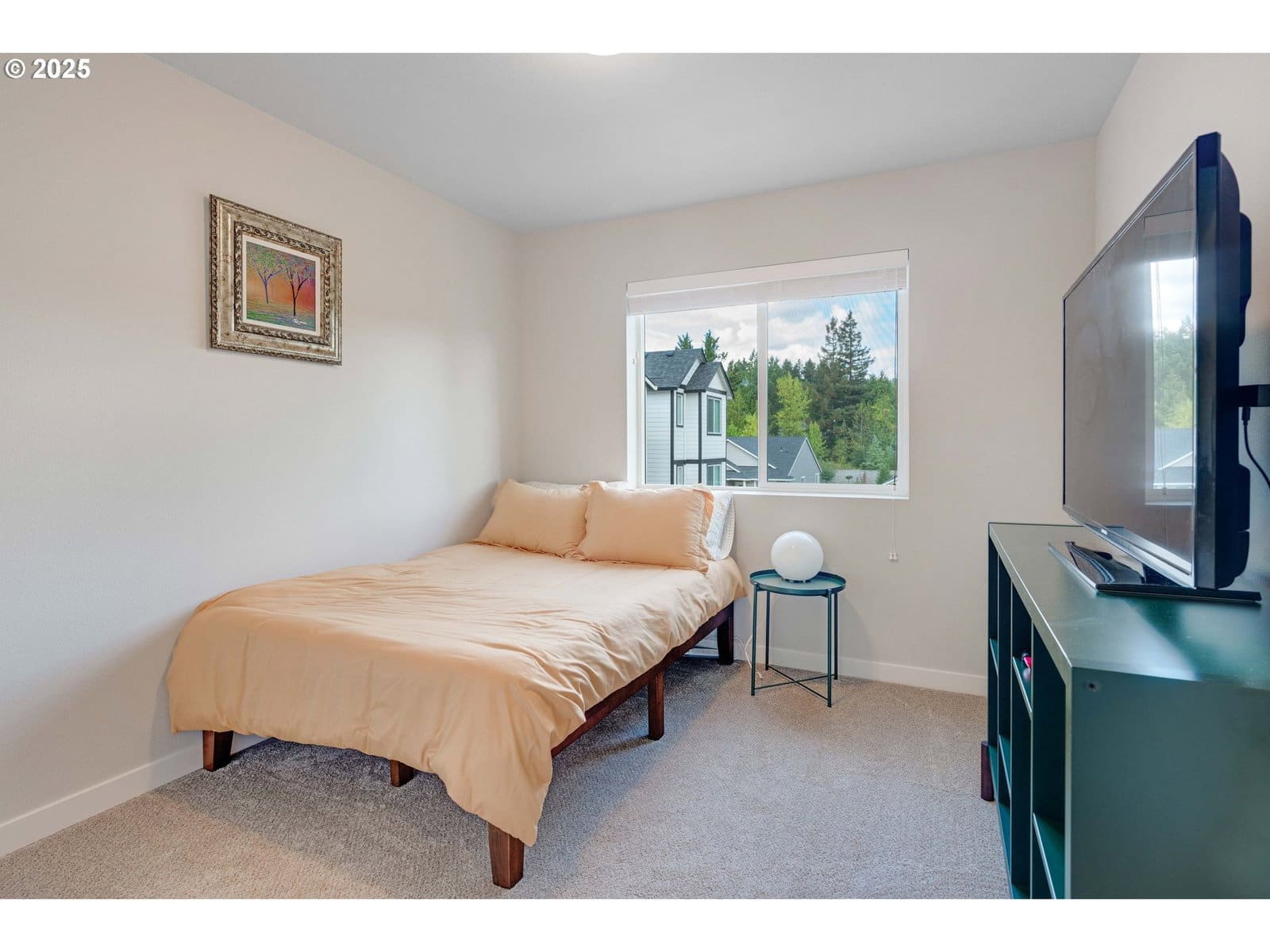 This modern three-story detached home in Newberg offers style, space, and functionality throughout. The lower level features a large, extra deep, three-car garage with abundant storage, ideal for vehicles, tools, and hobbies. A covered front entry leads upstairs to the open-concept main level, where the bright living room is filled with natural light and opens through a sliding door to the private patio. There is a door through the garage on the lower level that leads to the fully privacy fenced backyard. The dining area connects seamlessly to the kitchen, complete with stainless steel appliances, an island, and a walk-in pantry. A convenient half bath is also located on this level. Upstairs, all four bedrooms are thoughtfully arranged along with a full hallway bath and a laundry room. The spacious primary suite boasts vaulted ceilings, a walk-in closet, and a private bath with double vanity and a large walk-in shower. This home is truly unique and backs to a peaceful green space, offering added privacy and a natural backdrop to enjoy year-round. With modern finishes, a functional layout, and outdoor space to enjoy, this home is move-in ready and perfectly close to schools, shopping, and all that Newberg has to offer.