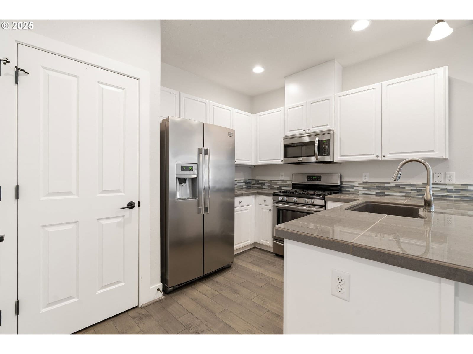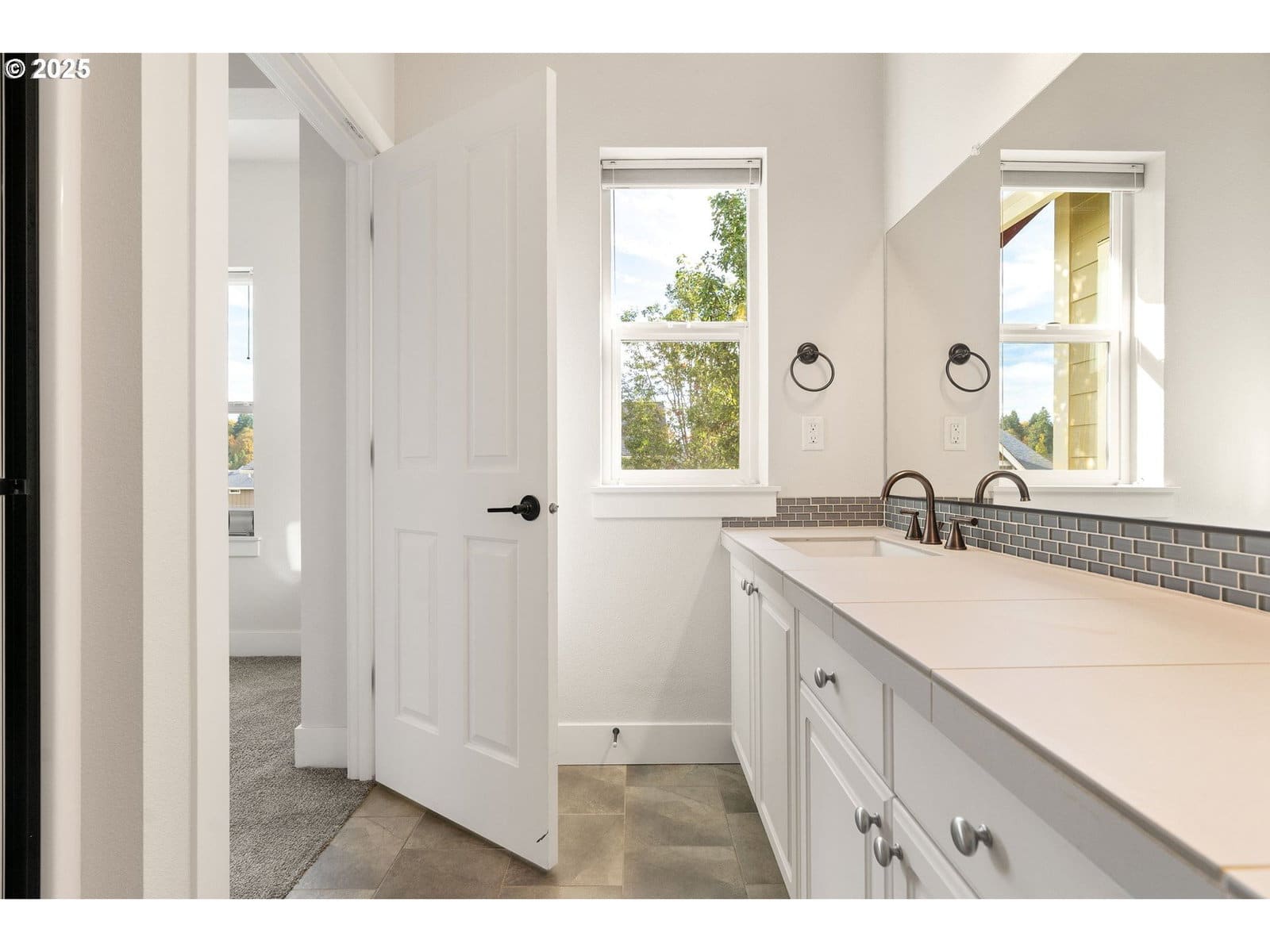 Tucked within Beaverton’s highly desirable Sexton Mountain neighborhood, this beautifully maintained townhome perfectly blends sophistication, comfort, and modern design. Sunlight pours through expansive windows, highlighting rich engineered hardwood floors and elegant tile finishes that create a bright, welcoming atmosphere. Designed for both everyday enjoyment and effortless entertaining, the chef-inspired kitchen boasts sleek stainless-steel appliances, polished tile countertops, and a stylish backsplash. The open-concept main level flows seamlessly into the dining and living areas—ideal for gatherings or quiet mornings with coffee and natural light.Upstairs, the primary suite offers a generous walk-in closet and a spa-like bath with dual vanities and refined finishes. A spacious second bedroom with its own full bath provides excellent flexibility for guests, a home office, or family living. Additional features include an oversized two-car garage with ample storage, extra space adjacent to the balcony, and convenient in-unit laundry. Ideally located close to Nike, Intel, Progress Ridge, and scenic parks, this home offers low-maintenance living and contemporary style in one of Beaverton’s most sought-after communities.