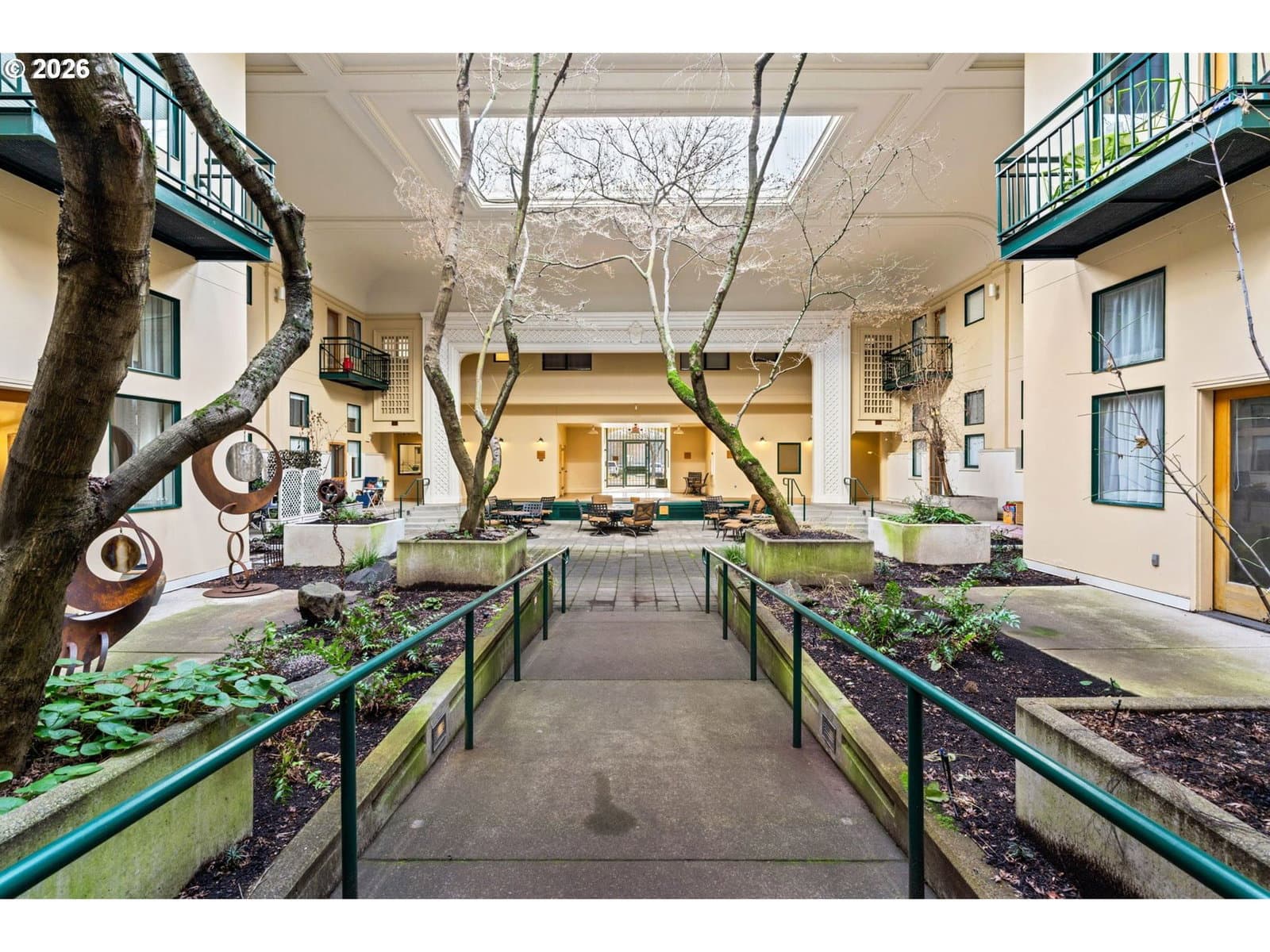 Own a piece of Eugene history at the iconic Lincoln School Condos! PRICED TO SELL! This light filled ground floor studio sits inside one of the city’s most recognizable historic buildings. Originally built in 1924 and later converted to condominiums, the Lincoln School is listed on the National Register of Historic Places and is known for its tall ceilings, oversized windows, and character you simply cannot recreate in newer construction.Inside, the space feels open and airy thanks to the high ceilings and wall of large windows that bring in incredible natural light. The kitchen features granite counters, ample cabinet storage, and a raised bar that opens to the living area, making the layout feel comfortable and functional. Beautiful warm wood floors run through the main living space, and the sleeping area is tucked behind a half wall for added separation while still keeping the lofted feel. This unit is truly move in ready with furnishings negotiable, making it an easy option for a primary residence, weekend place in town, student housing, or an investment! One of the most charming features of the Lincoln School is the interior open air courtyard. Surrounded by the building’s historic architecture, this shared space offers planters, mature trees, and seating areas that create a quiet, welcoming place to relax right outside your door. Residents enjoy gated entry, shared laundry, bike storage, courtyard space, and a prime location near the Jefferson Westside neighborhood with easy access to downtown Eugene, restaurants, shops, and the university. Historic character, great light, and turnkey convenience make this a condo you will not find anywhere else. Don’t miss the chance to see it in person!