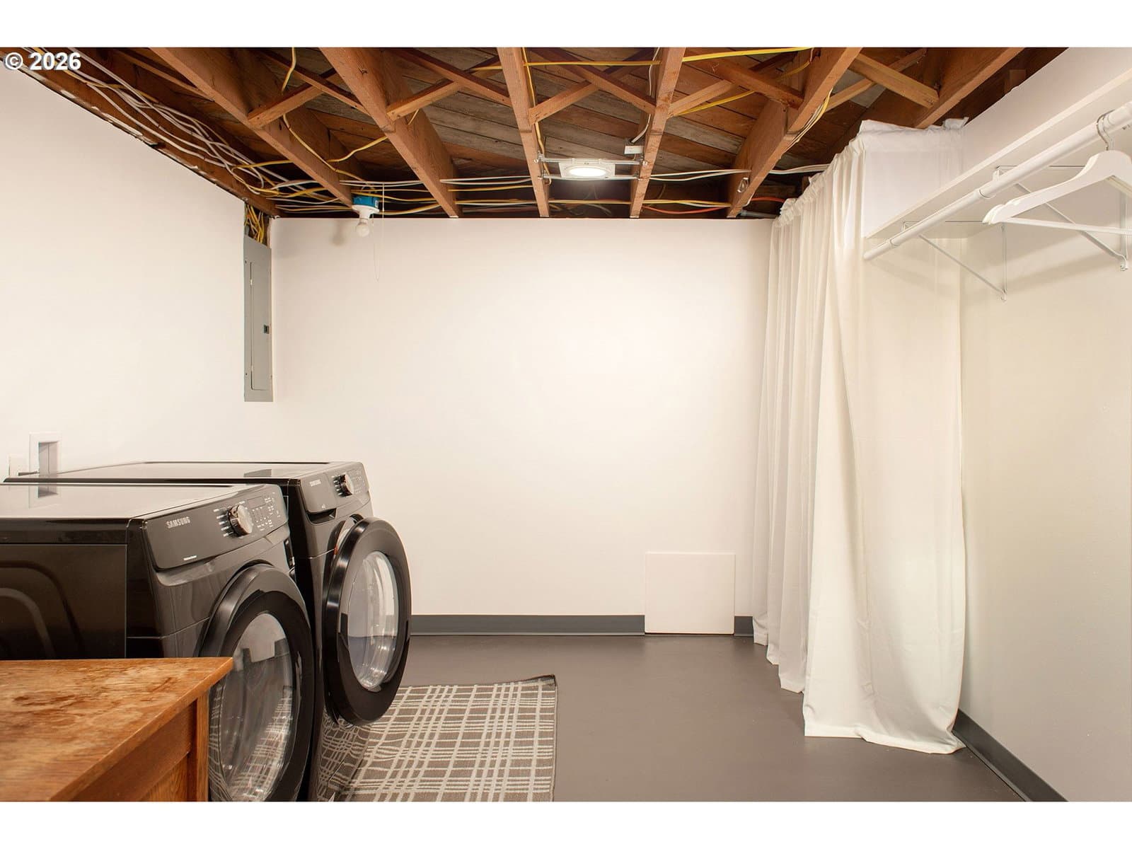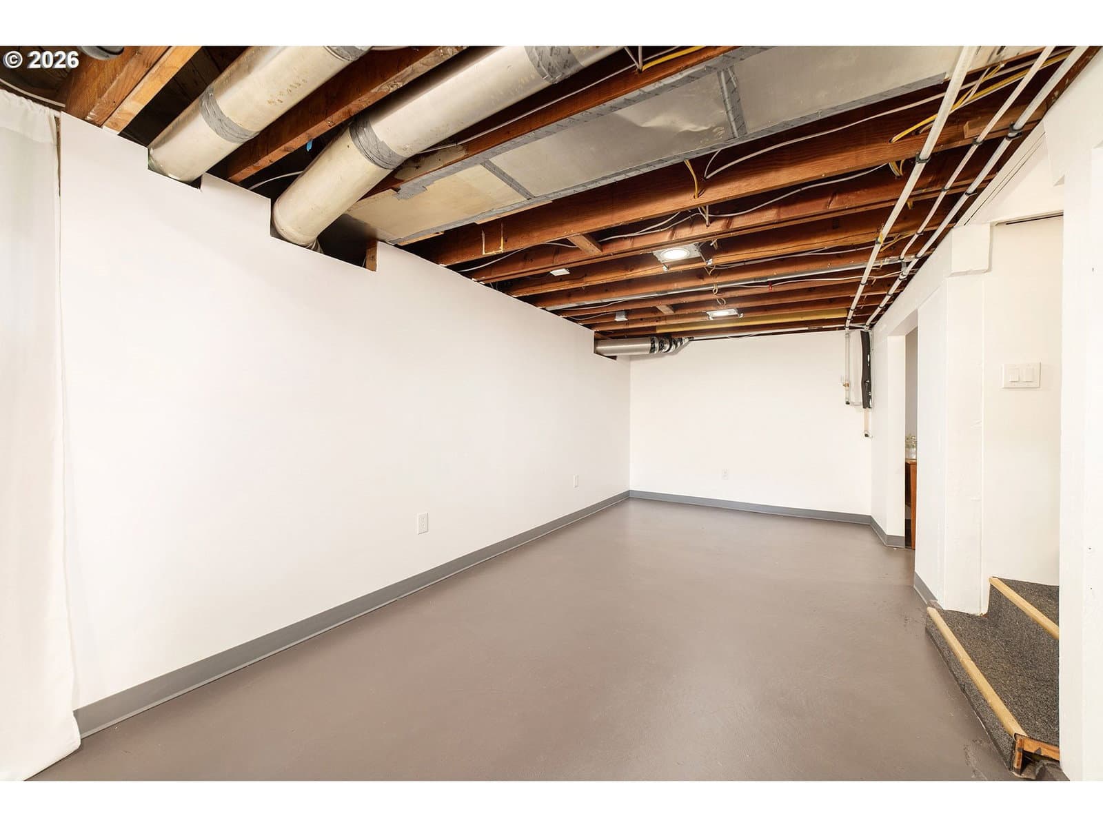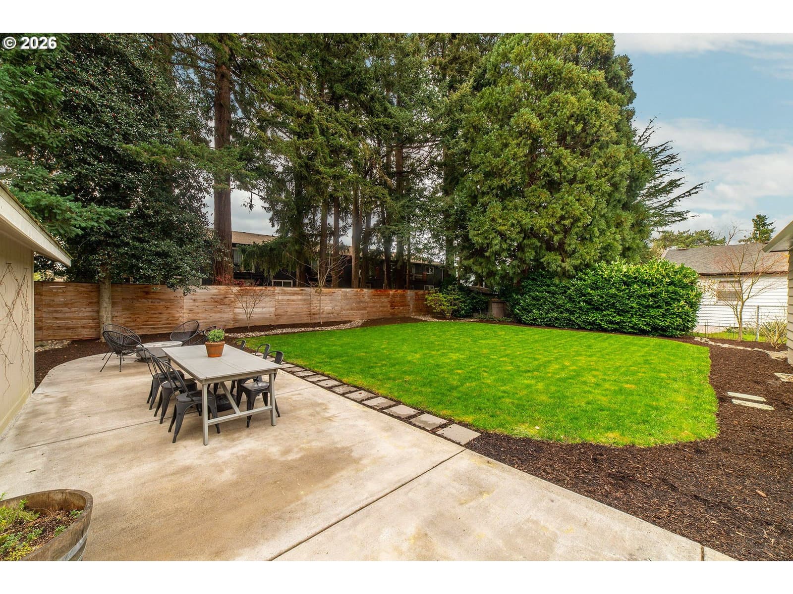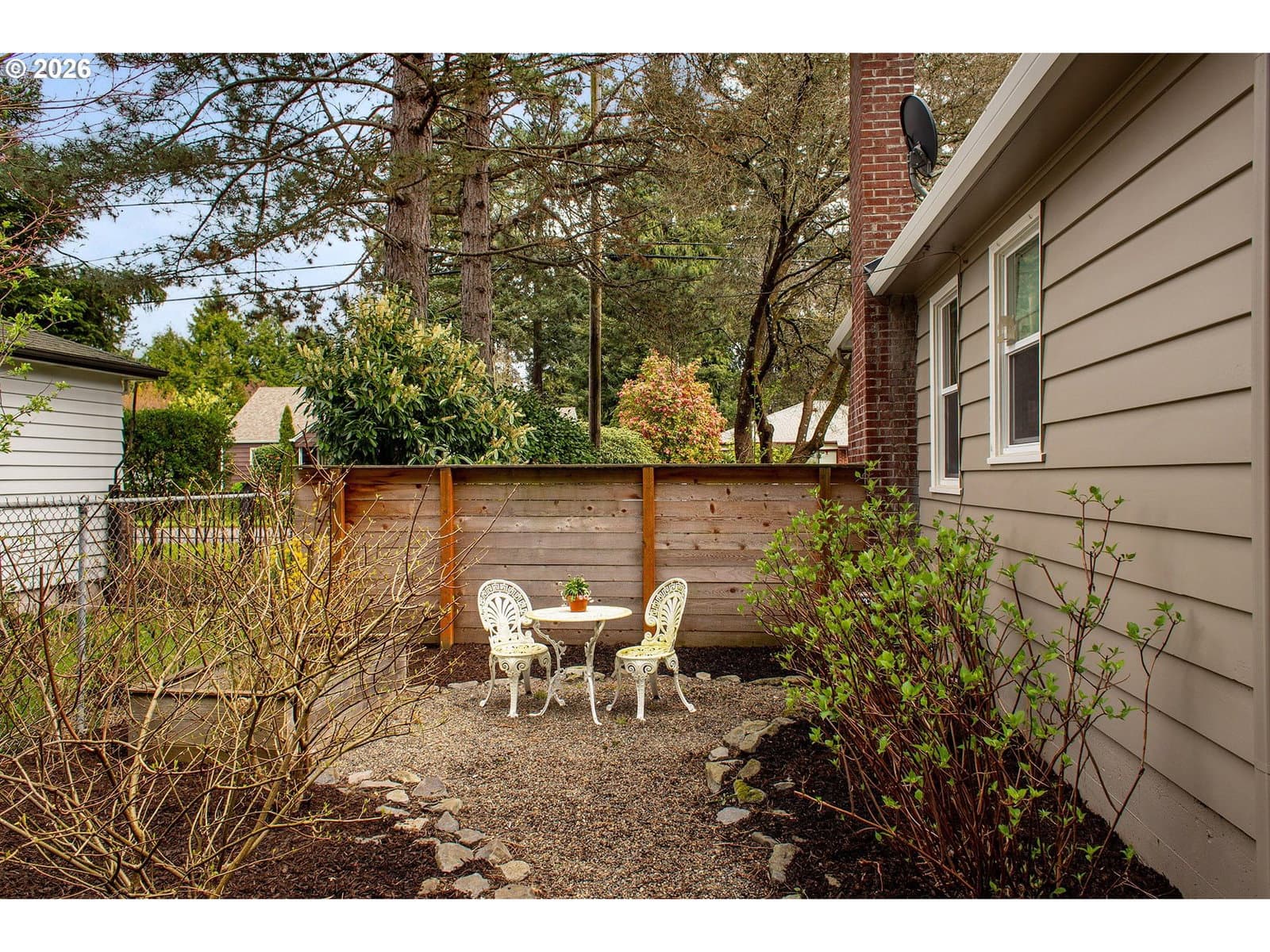 Charming, thoughtfully updated mid-century ranch set on a double-sized lot. Sunlight pours in through abundant windows, including two oversized picture windows that brighten the living and dining rooms. Relax by the wood-burning fireplace, seamlessly connected to the dining area, both featuring gleaming oak hardwood floors. The renovated kitchen offers a modern touch with quartz countertops, built-in appliances, and a convenient pantry. Both bedrooms include ceiling fans and stylish barn doors on the closets. Stay cool this summer with central AC installed in 2020. The bathroom features a beautifully tiled walk-in shower with rain showerhead option. Downstairs, the basement provides endless possibilities—perfect for a second living area, home office, or creative studio—plus a spacious laundry room. The finished one-car attached garage feels like an extension of the home and could serve as an exercise space, with additional storage available in the large backyard shed. Outside, enjoy a fully fenced, expansive yard lined with mature trees, along with a charming hydrangea garden and two established blueberry bushes. Located on a quiet, tree-lined street, this home is just minutes from the vibrant and growing NE Halsey district, offering coffee shops, organic groceries, and is only a few blocks from Gateway Discovery Park. Ask your agent for the LONG list of updates completed in the last 5 years.
