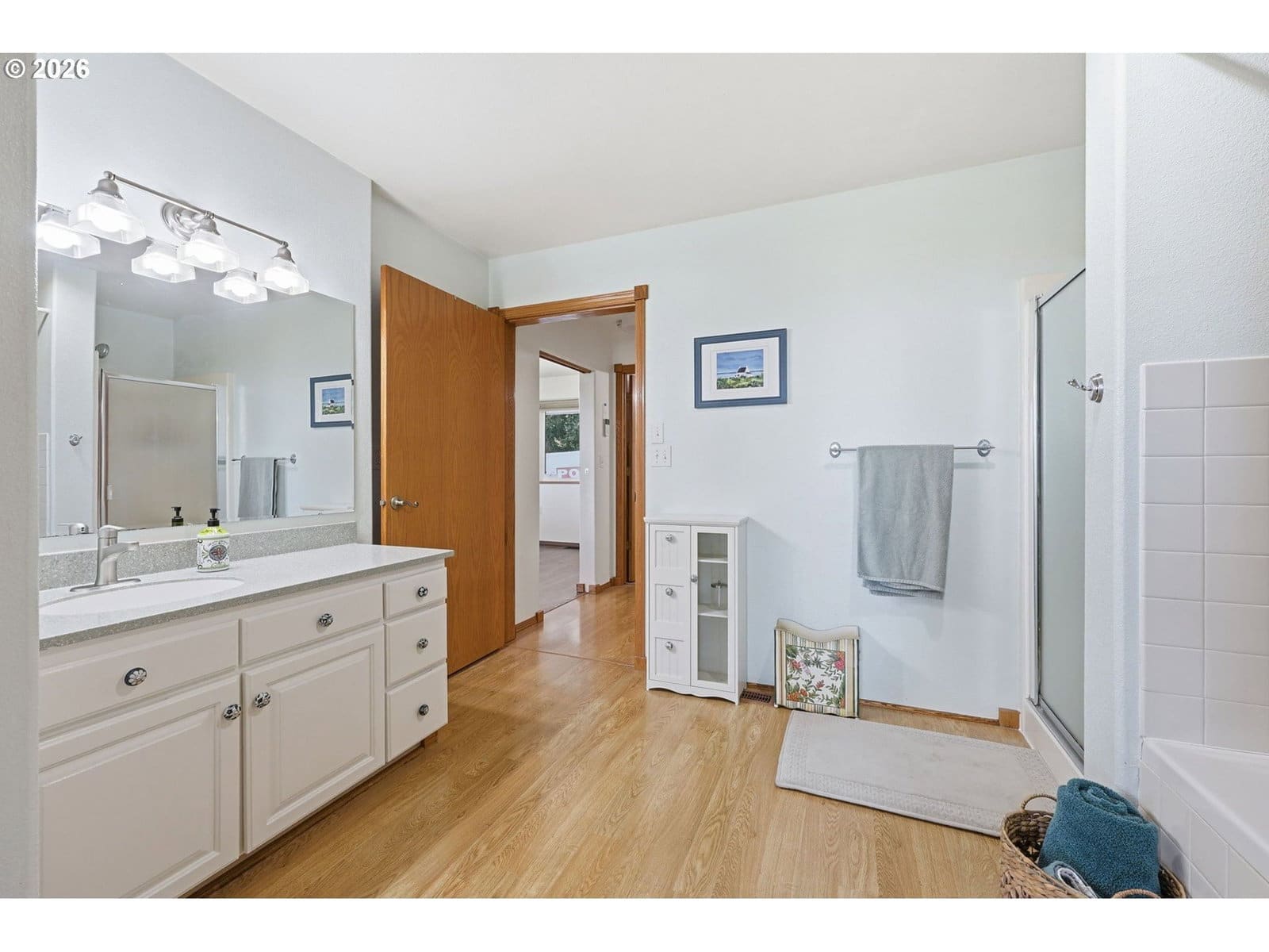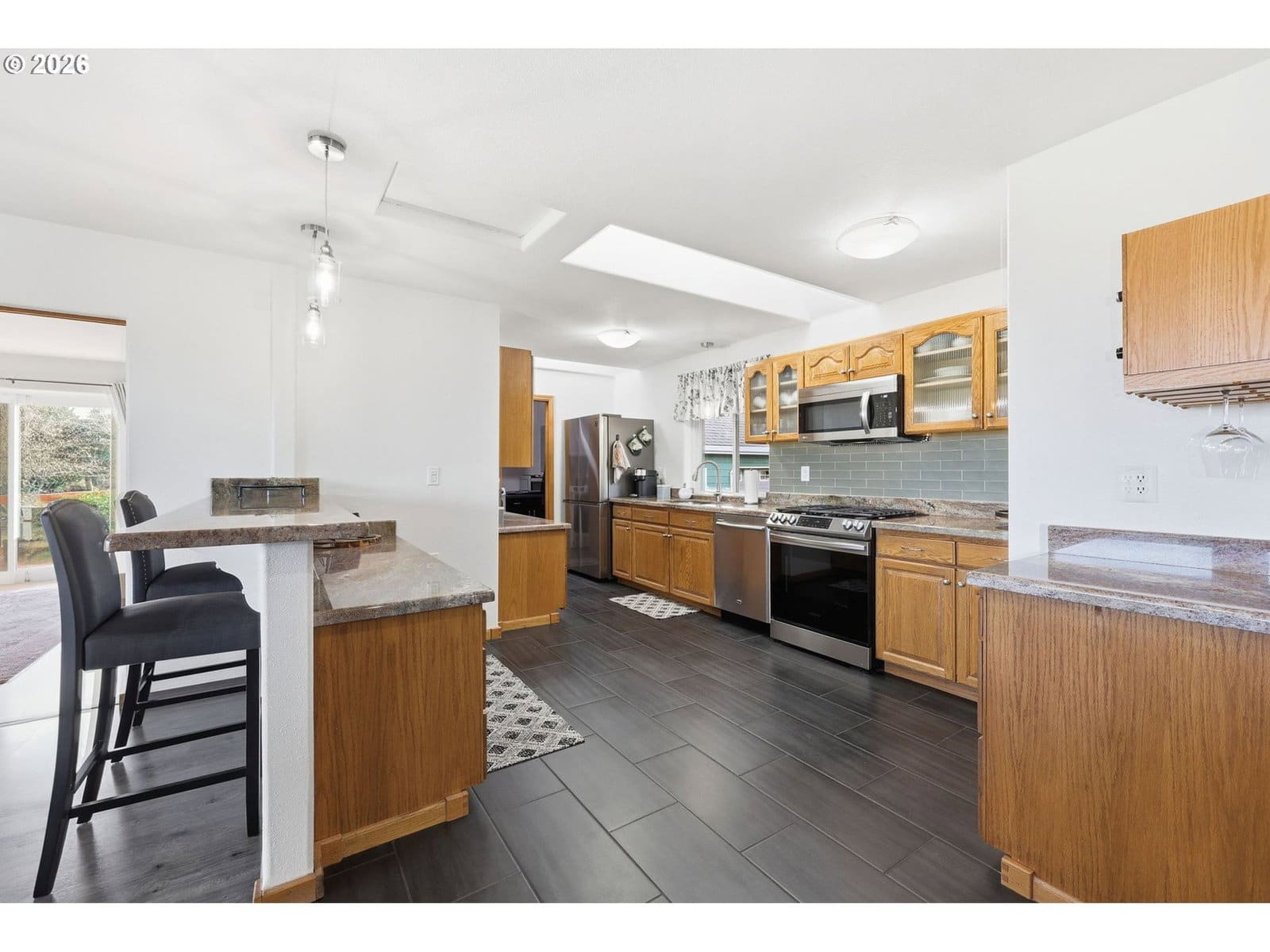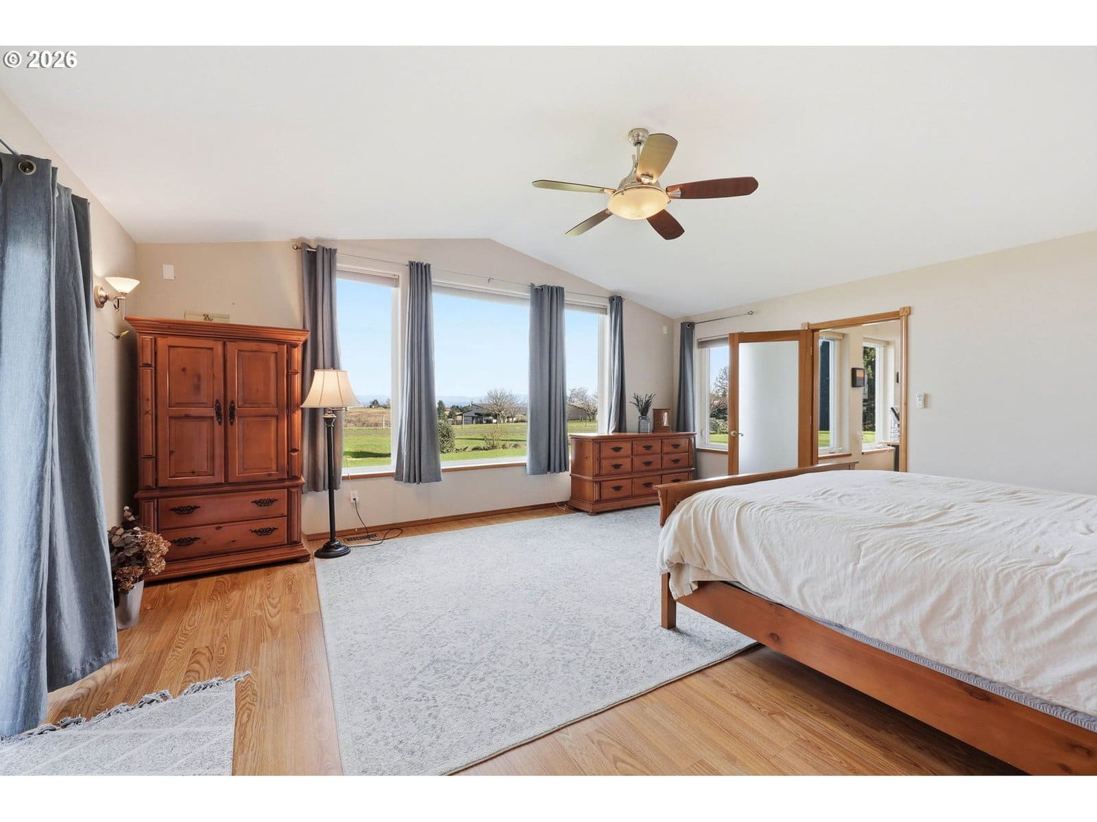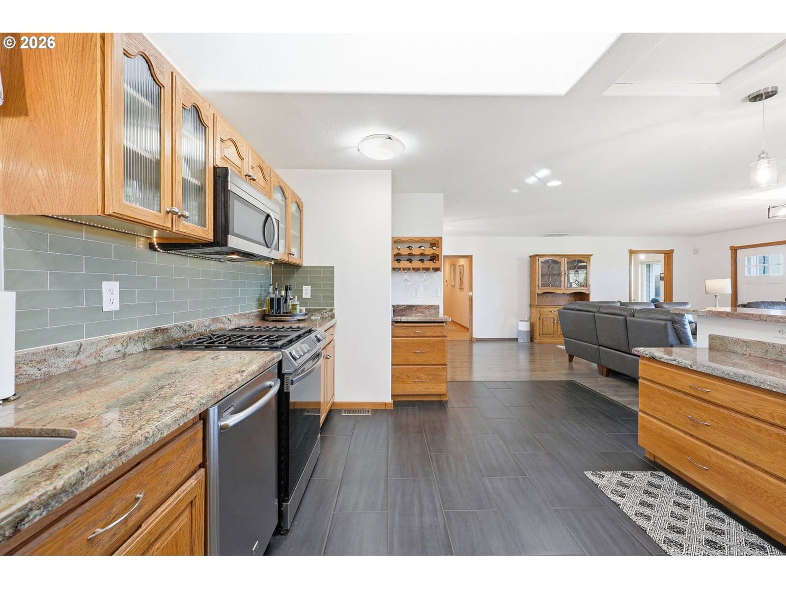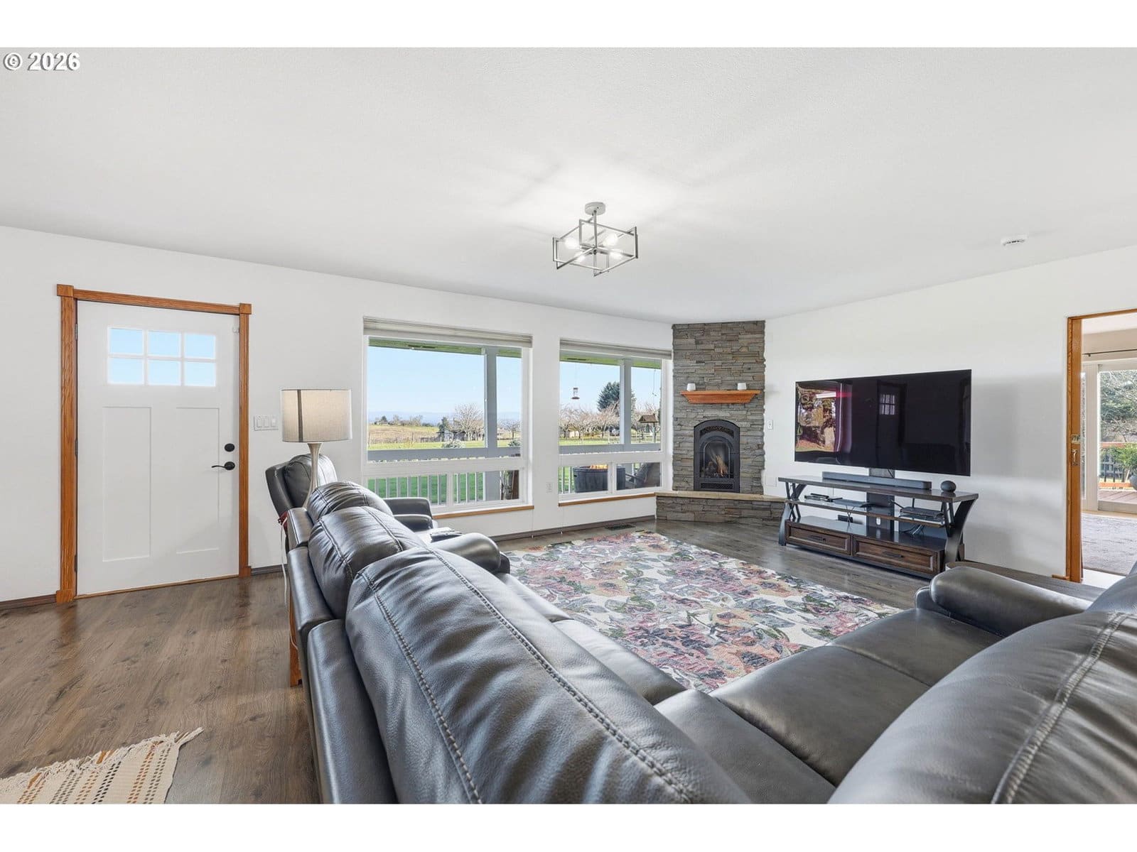 Thoughtfully situated on a level parcel with sweeping mountain and valley views, this meticulously maintained and tastefully updated single level home on Parrett Mountain is a rare find. Originally built with accessibility in mind in 1995 at 1,609 square feet, a permitted 2008 addition expanded the home to 2,509 square feet.The home has seen meaningful updates throughout, including the kitchen. The spacious kitchen has warm Crema Bordeaux granite countertops and durable tile flooring. Open sightlines to the living and dining areas create an easy flow for everyday living and entertaining, with abundant natural light from the skylight and large windows. Versatile layout with the option of three bedrooms and a dedicated office or four true bedrooms, complemented by three full bathrooms. Additional key systems include a whole-home water filtration system, hot water recirculation, and smart home automation with geofencing and alarm integration. The grounds are equally well cared for, with a fully fenced backyard, underground power, full drip irrigation and sprinkler system with timers, and annual arborist tree inspections. A brand new asphalt driveway leads to extensive outbuildings, including a heated shop with 220v power and potential for a four-car garage, plus a pole barn with two 12x36 bays, one 12x36 covered exterior bay, and 14-foot eaves. RV infrastructure includes a dump station and separately a 30-amp 110v hookup. The level lot is planted with mature fruit trees and vines, including pear, grape, raspberry, fig, and plum.