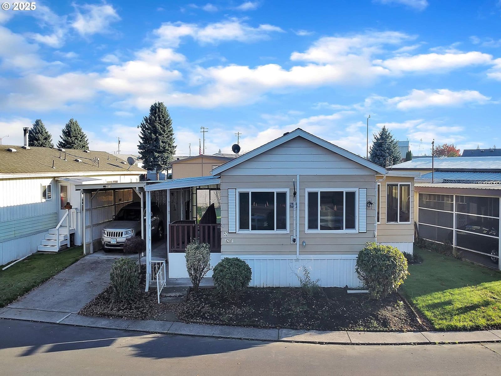 Well-Maintained Home in 55+ Park. Fresh carpet in the front room, cozy sunroom off the kitchen, all appliances included, cooking stove, microwave, dishwasher, W/D, fridge. Open flow from living room to dining area, newer pellet stove, Trane high-efficiency A/C, new water heater, vinyl windows, carport with storage, enclosed patio, wheelchair ramp. Extra outbuilding. Current space rent is $975 a month and includes water. Park approval is required.
