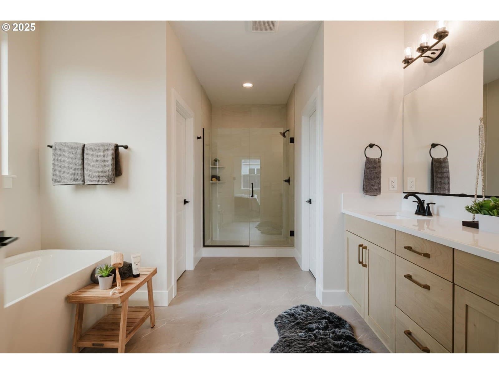 Location, location, location! Brand-new Move-In Ready home in The Reserve at Seven Wells! This community is in an ideal location, close to historic downtown, the wildlife refuge, walkable to shopping, 3 minutes from Costco, and easy access to I5. This elegant home is a Primary-on-Main with Gourmet Kitchen & Large Landscaped Yard. Welcome to this professionally designed home featuring a main-level primary suite and a thoughtful layout perfect for comfortable everyday living and upscale entertaining. With 3 bedrooms, 2.5 bathrooms, and a dedicated office on the main, this home offers flexible space for the PNW living lifestyle. Enjoy a formal dining room and an impressive gourmet kitchen equipped with upgraded appliances, a spacious island, and a butler’s pantry—ideal for hosting and meal prep. Additional highlights include smart home technology, loft storage, and designer finishes throughout. Situated on a fully landscaped, oversized yard, there’s plenty of room for outdoor living, gardening, or play. Best of all—this Brand-new home is completed and move-in ready! Don't miss your opportunity to settle into this home without the wait. New Construction