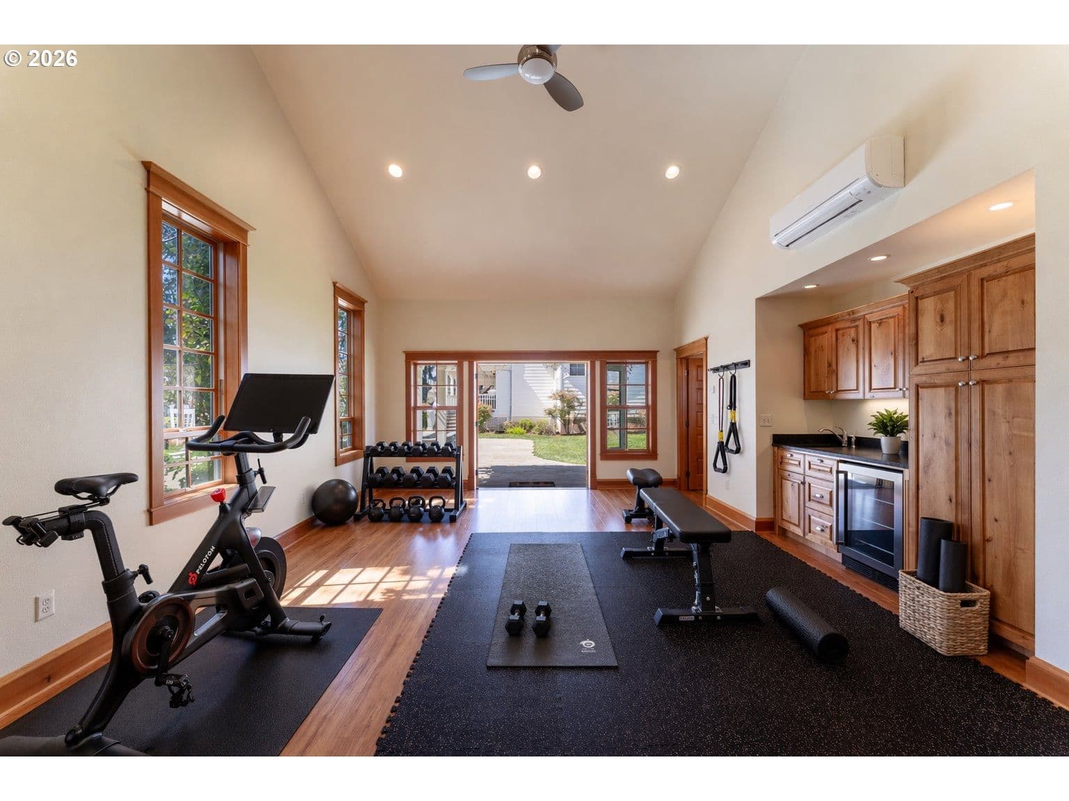 Set on 80 scenic acres in Oregon’s Willamette Valley, this exceptional estate offers a rare blend of luxury living, agricultural value, and privacy. With sweeping valley views, mature landscaping, and rolling pastures, the property is ideal as a private retreat, multigenerational residence, or legacy farm. Approximately 46 acres of prime grass crop ground provide strong agricultural utility and long-term investment potential in one of the region’s most sought-after farming areas. The 4469 sq ft remodeled farmhouse combines timeless craftsmanship with modern comfort, featuring fir wood floors, pine cabinetry, and a dramatic great room with 25-foot ceilings and a stone fireplace. French doors open to a 12-foot-wide covered porch, perfect for indoor-outdoor living. The main level includes a primary suite, laundry, and half bath, while upstairs offers three bedrooms, two bathrooms, and a built-in office. Designed for entertaining, the property includes a guest space with three-car garage, a pool house, and a resort-style swim-jet pool and spa, all positioned to take in the natural surroundings. The land includes productive acreage currently shared with a local farmer, offering income potential and flexibility. Additional features include orchard trees with 100-year-old apple trees and a notable English walnut tree, water features, a bridge, fenced pastures, irrigated garden beds, a workshop with 220V power, and a chicken coop. With Robinson Reservoir, Ash Swale, and extensive hardscaping, the property reflects exceptional care and stewardship, an outstanding opportunity to own a premier Willamette Valley estate.
