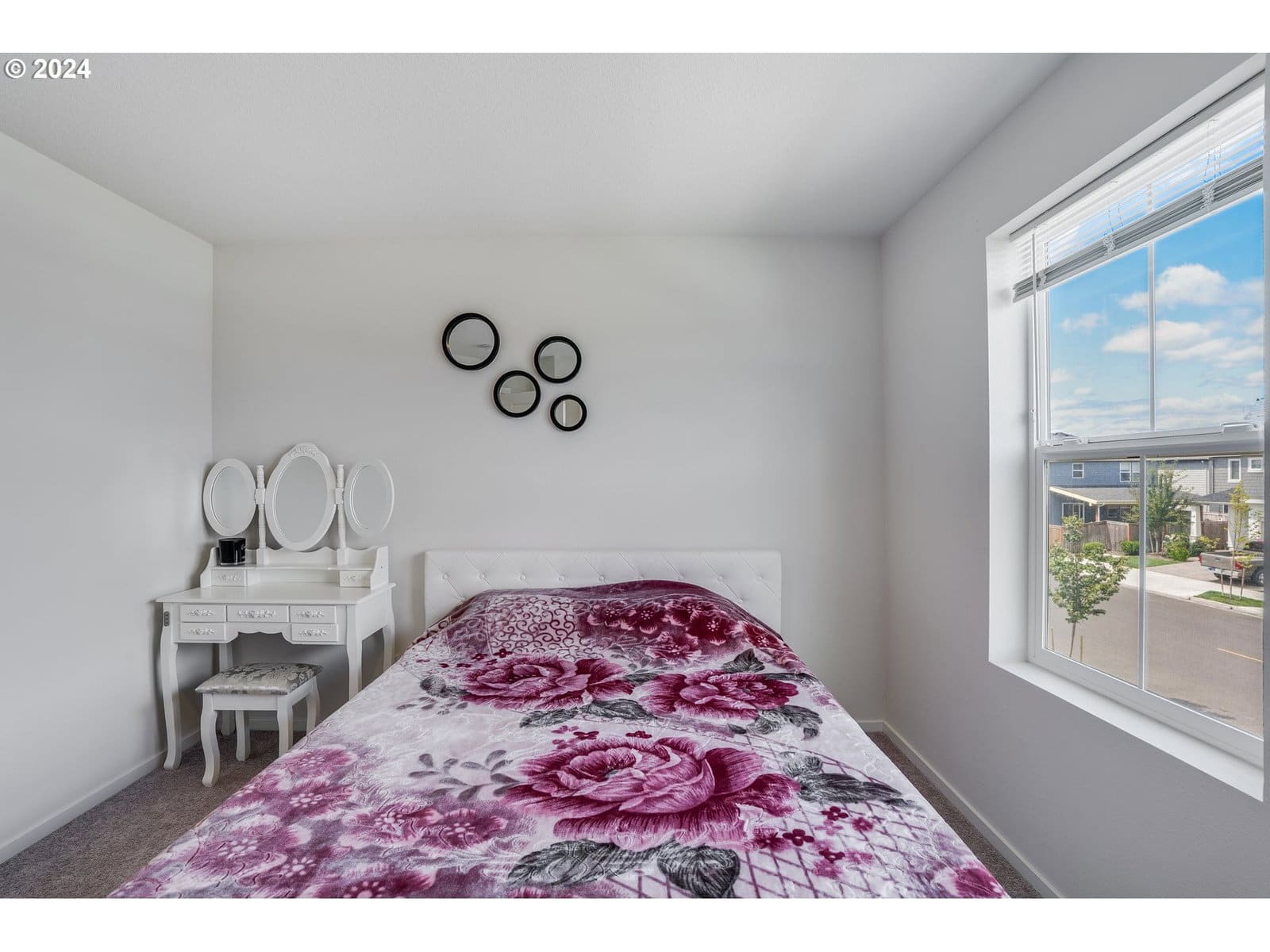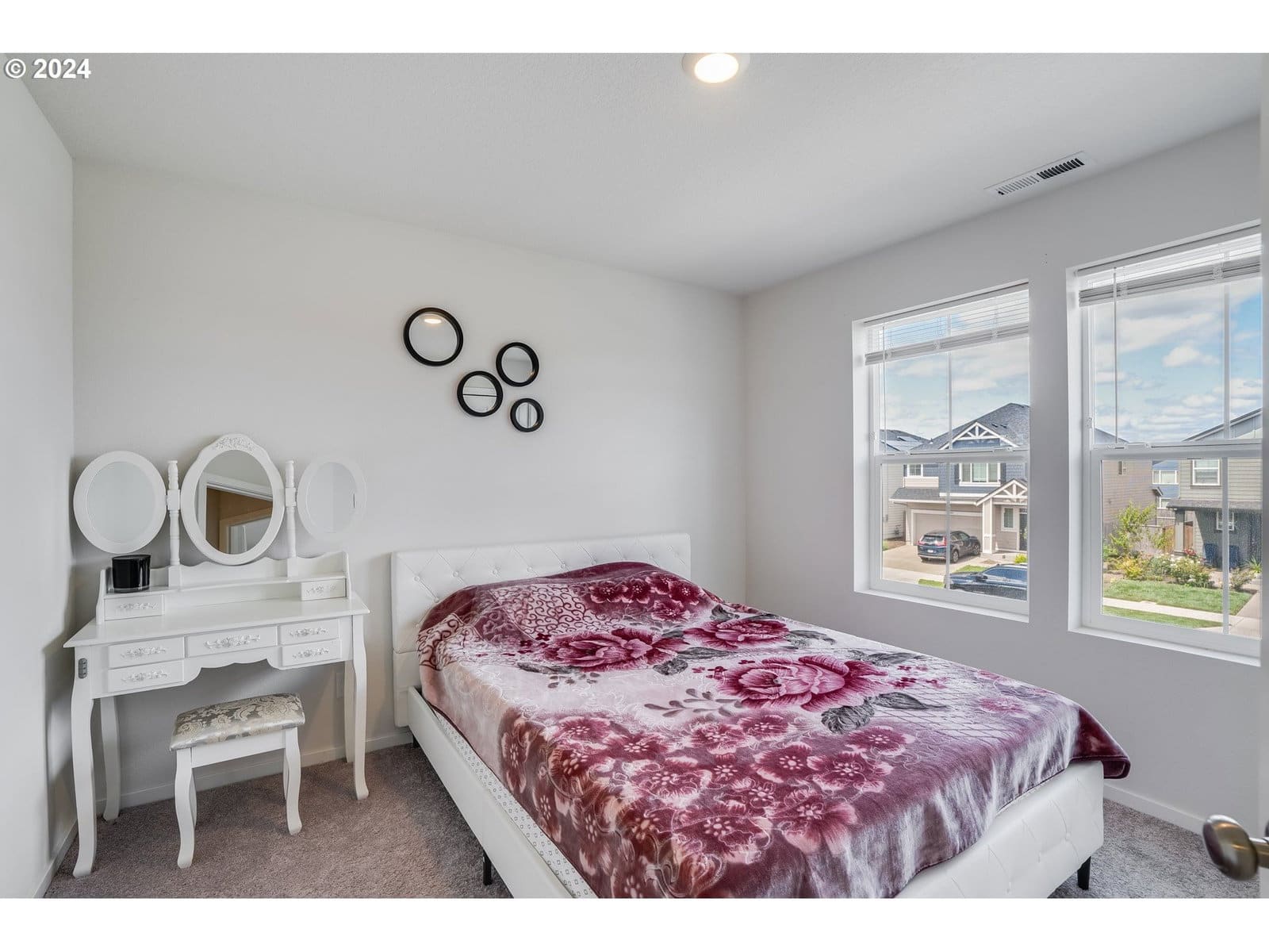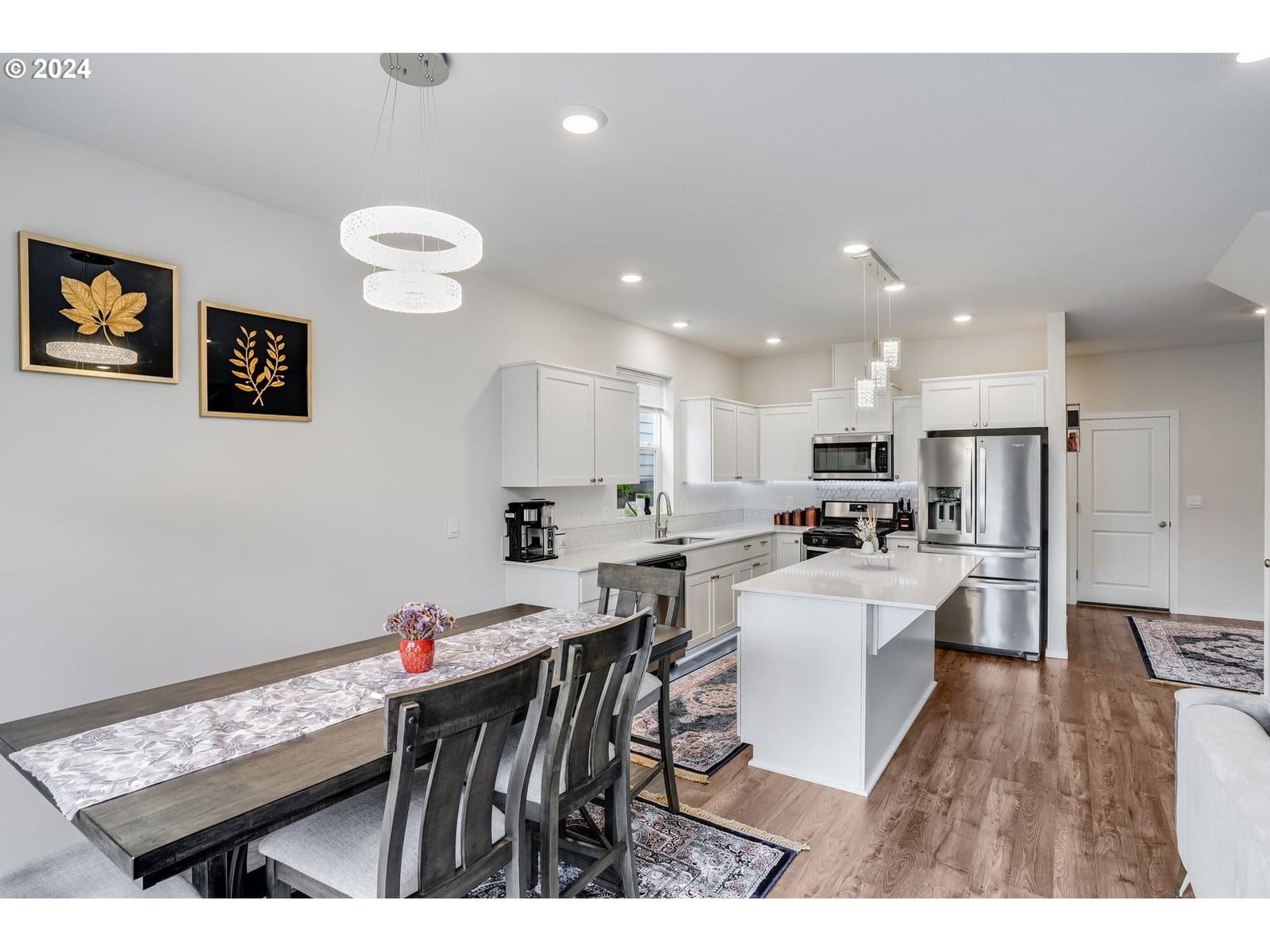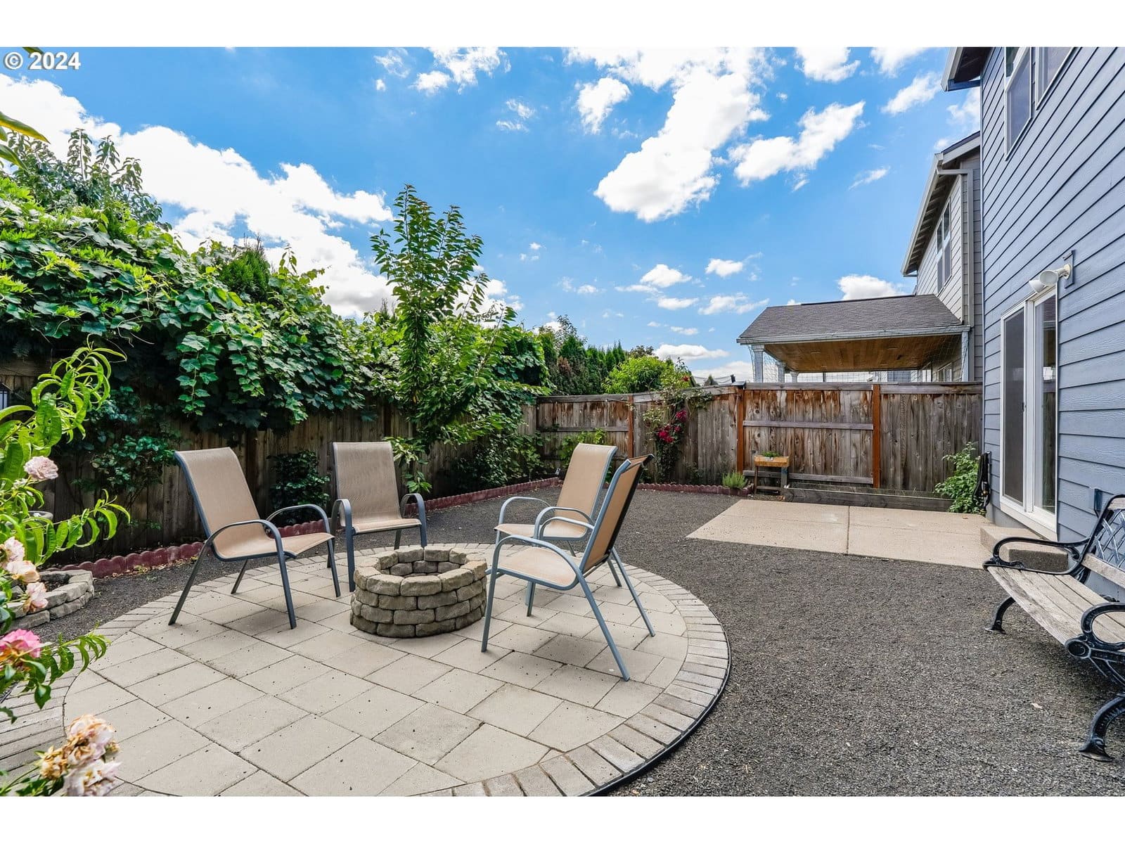 Discover your dream home, built in 2021, where modern elegance meets sustainable living. Featuring 9 solar panels for energy savings, this stunning residence offers an open floor plan with a striking accent wall. The gourmet kitchen showcases quartz countertops, stainless steel appliances, and a gas range. The primary bedroom includes a double vanity en-suite, with three additional bedrooms. Outside, enjoy a fully fenced backyard with a cozy fire pit. Located near Heritage Elementary and the Woodburn Outlet Mall, with easy access to I-5, this home is ready for you!