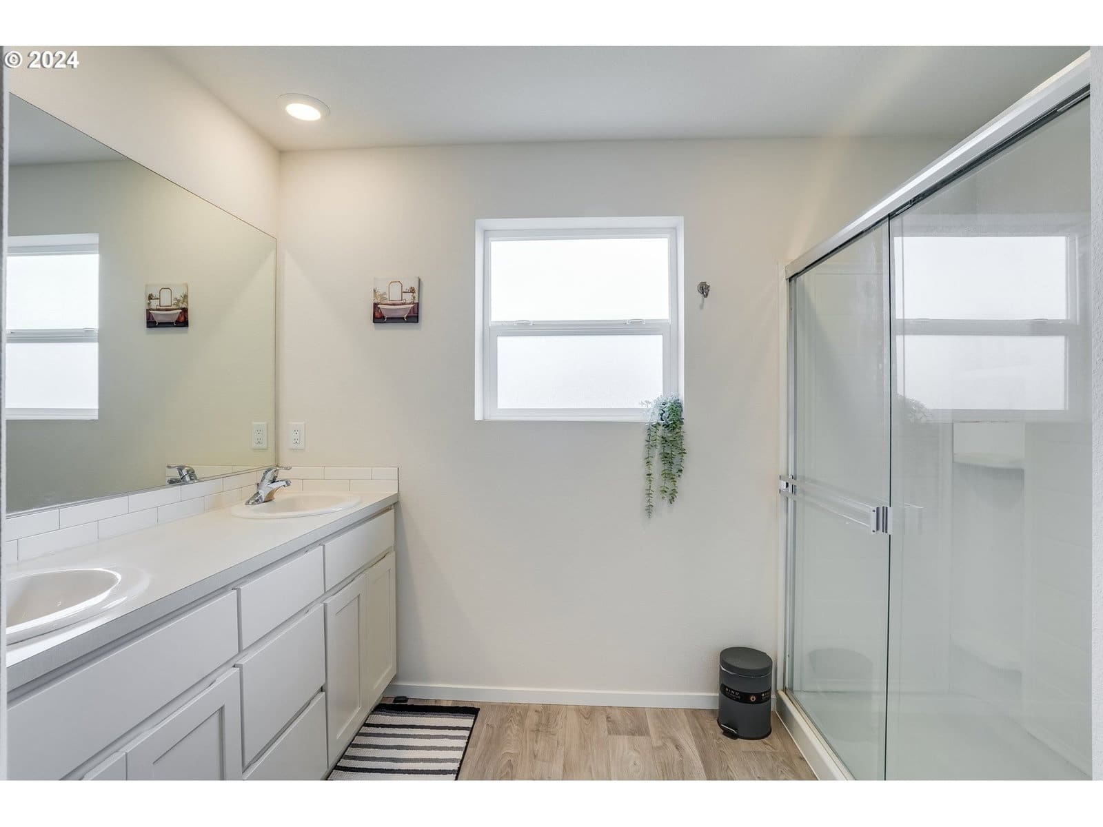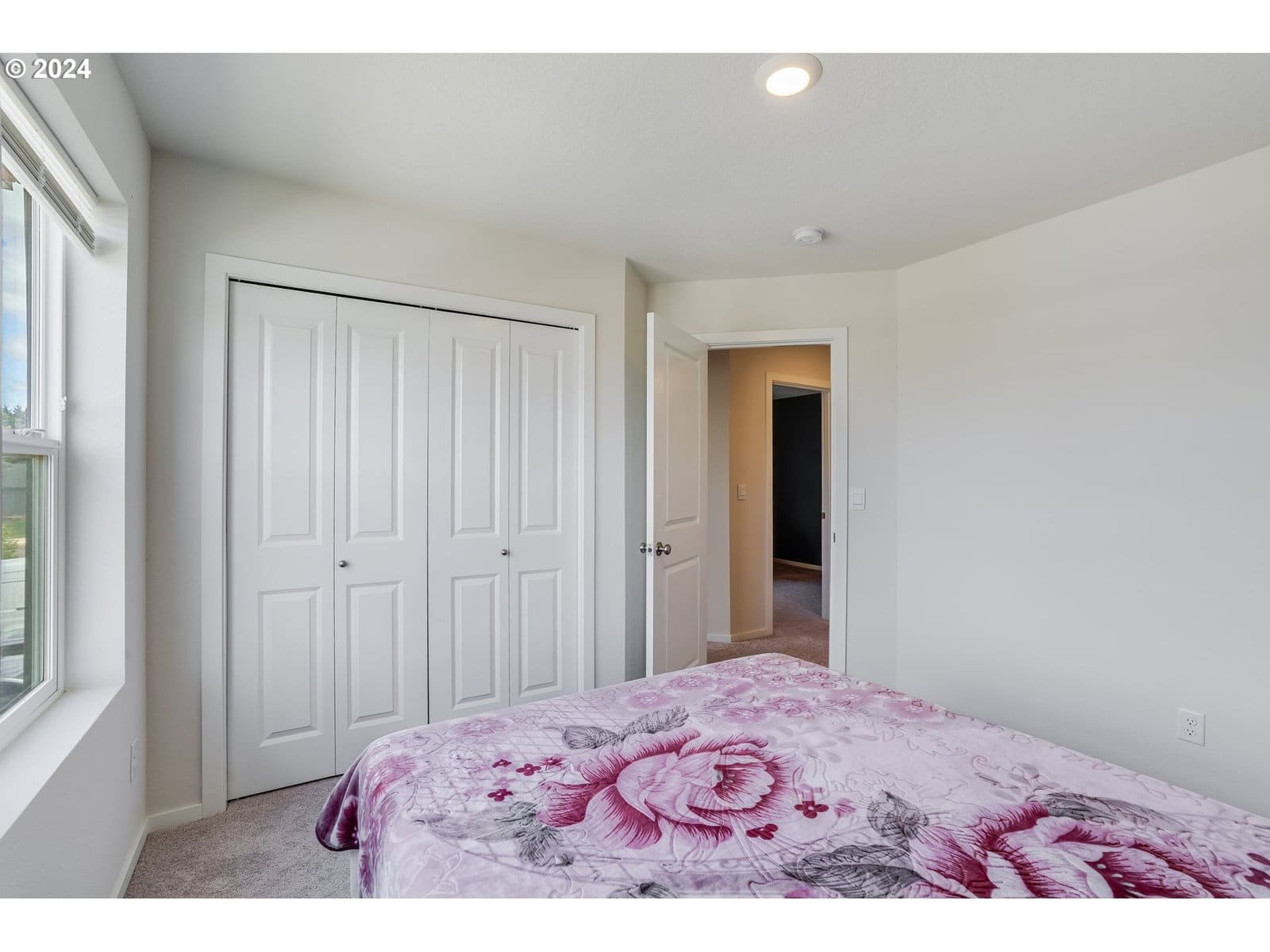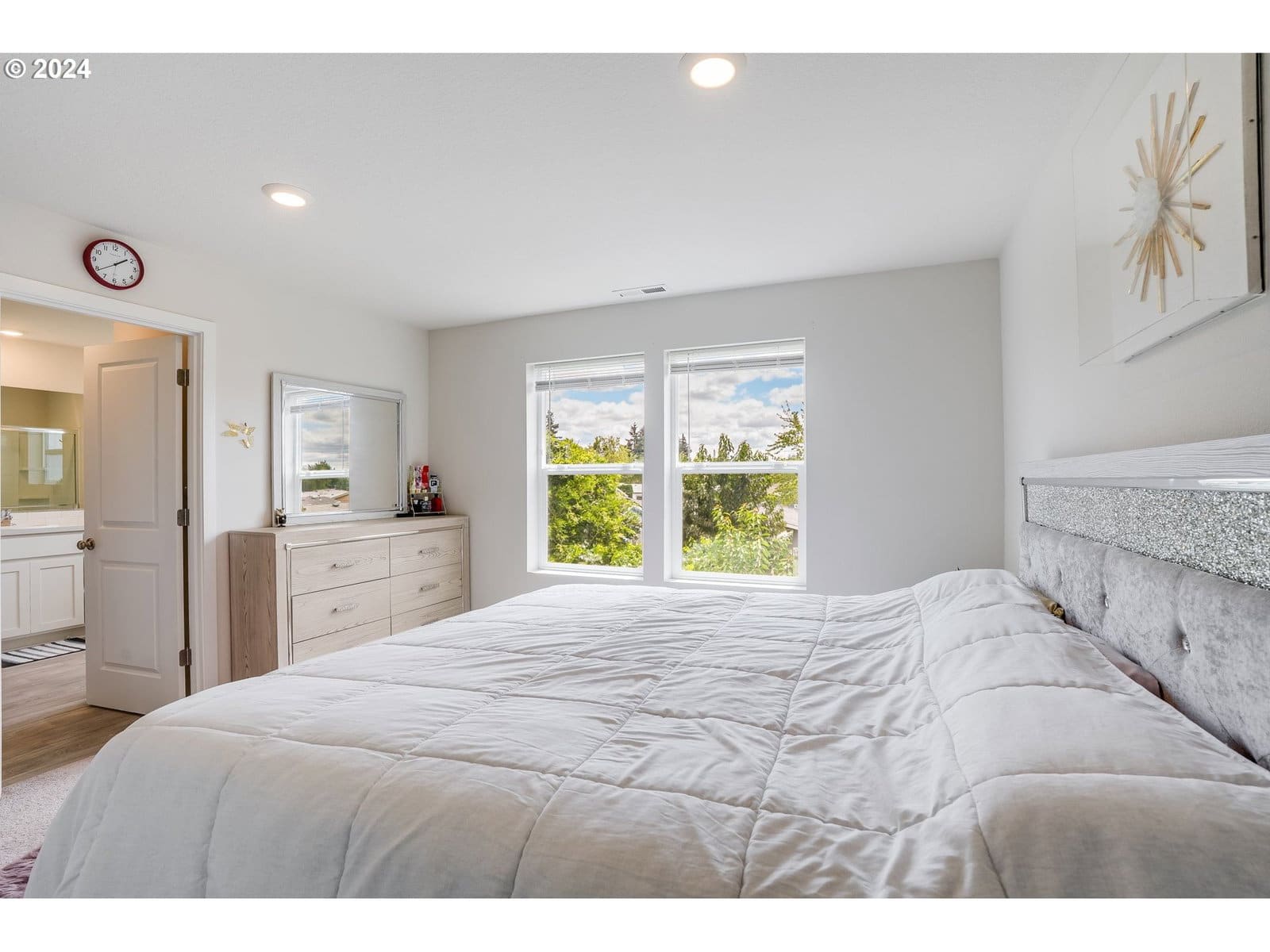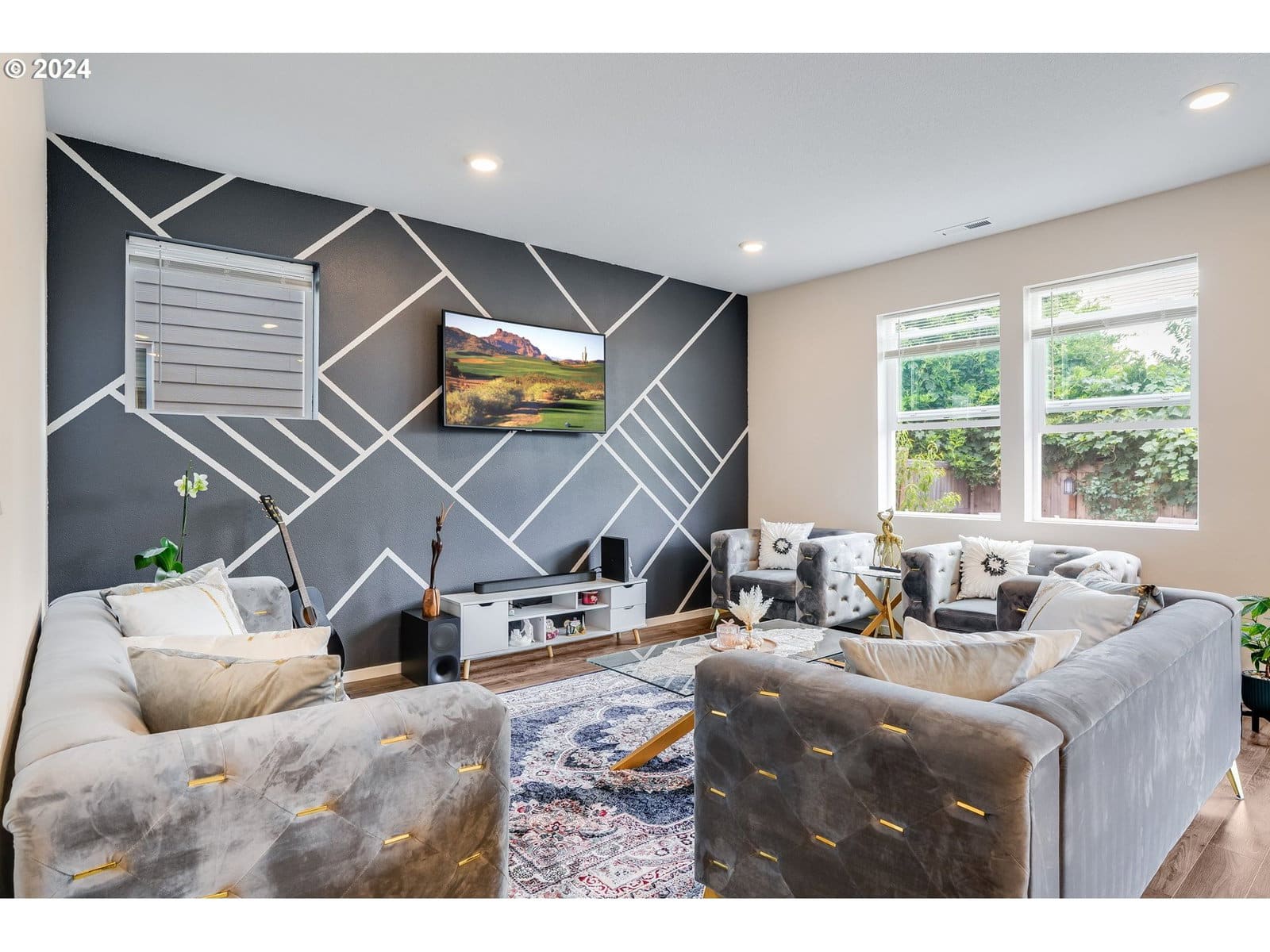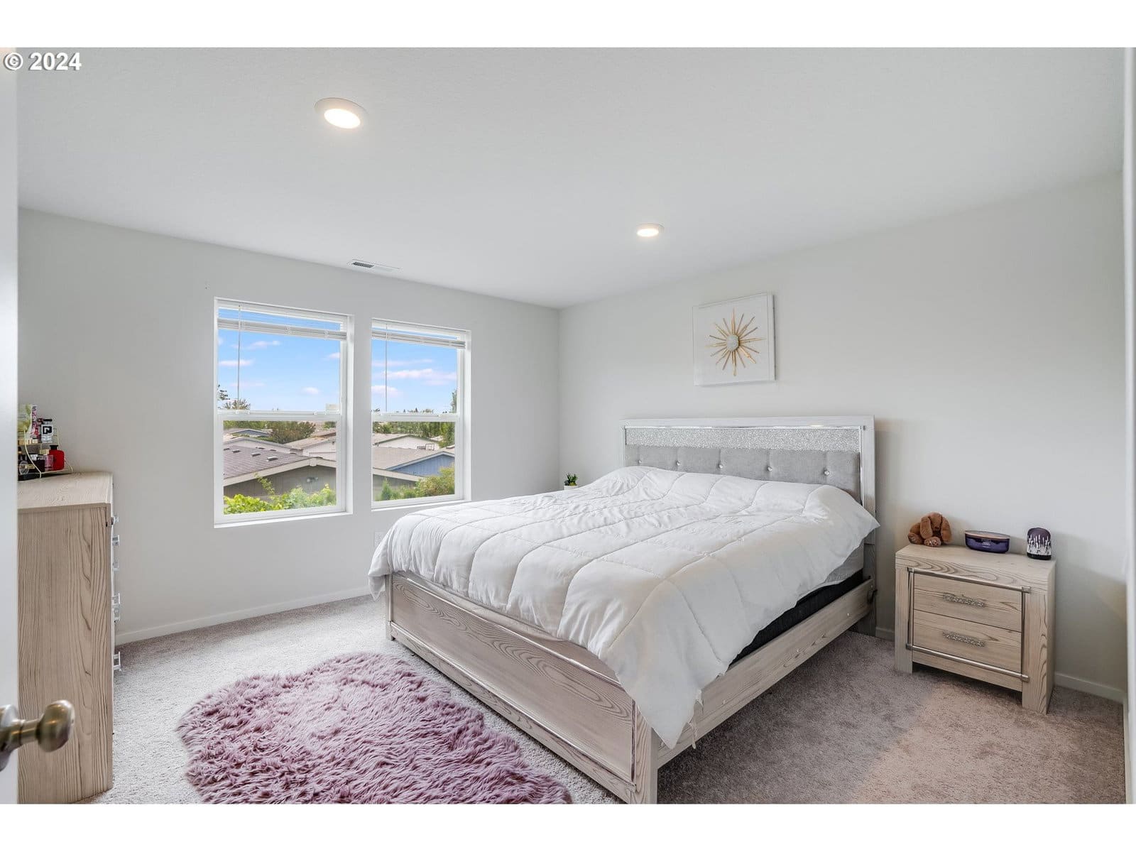 Discover your dream home, built in 2021, where modern elegance meets sustainable living. Featuring 9 solar panels for energy savings, this stunning residence offers an open floor plan with a striking accent wall. The gourmet kitchen showcases quartz countertops, stainless steel appliances, and a gas range. The primary bedroom includes a double vanity en-suite, with three additional bedrooms. Outside, enjoy a fully fenced backyard with a cozy fire pit. Located near Heritage Elementary and the Woodburn Outlet Mall, with easy access to I-5, this home is ready for you!