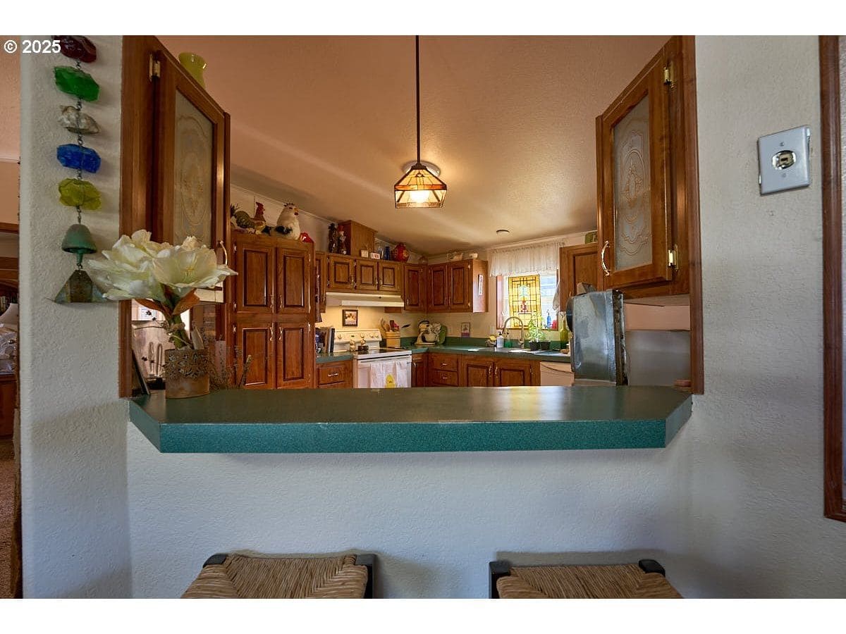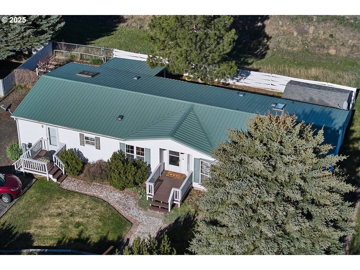 Great views especially to the West from the covered deck in the private back yard. Affordable home with 3 bedrooms and 2 bathrooms in 1782 SF. Enough space that there are 2 living room areas and both a dining room and breakfast nook. Low maintenance exterior with vinyl siding and a metal roof. Newer furnace,refrigerator and hot water heater. Washer and dryer included. Handy garden shed for storage and raised beds for your veggies. Back yard is fenced and has established perennial flowers. 1/2 circle drive at front door and straight in drive at side door. This is a nice quiet neighborhood and a comfortable home. It makes a great full time residence but also a great option for a summer place. CC&R's in this neighborhood but no HOA.
