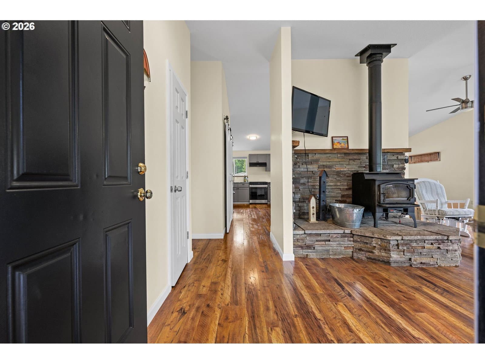 Enjoy the best of country living in this peaceful home set on more than an acre . This great home offers single-level living with a master suite and walk-in closet. The kitchen features newer granite countertops, a farmhouse sink and faucet, fresh interior paint and newer blinds. Other previous updates include newer bedroom carpeting, newer blinds throughout, a new water heater installed in January 2026 and engineered hardwood floors throughout. A wood stove keeps the house comfy and homey. Outside, you'll find a patio, raised garden beds, RV parking, a multi-use wood shed and plenty of space for entertaining! Tucked away from city life, yet close to town, schools, shopping & more!