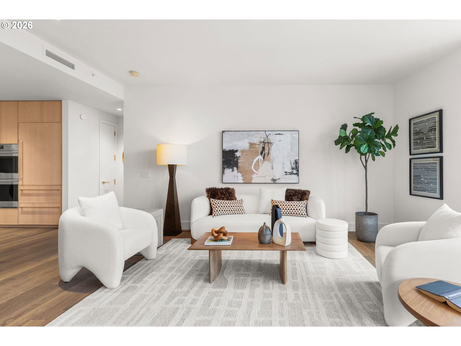 Welcome to The Ritz-Carlton Residences—where modern design meets legendary service, high above downtown Portland.Wrapped in floor to ceiling glass, this home offers a front row seat to the West Hills and the dynamic energy of the city below. The southwest facing two-bedroom, two-and-a-half bath residence offers convenience and luxury. Views stretch to the Willamette River and westward to the iconic St. John’s bridge. The open concept great room creates an inviting backdrop for both quiet evenings and effortless entertaining. The chef’s kitchen blends beauty and performance with custom Pedini cabinetry, quartz countertops, and a suite of Wolf, Miele, and Sub-Zero appliances— perfectly suited for both everyday living and eleThe southwest facing two-bedroom, two-and-a-half bath residence offers convenience and luxury. Views stretch to the Willamette River and westward to the iconic St. John’s bridge. The open concept great room creates an inviting backdrop for both quiet evenings and effortless entertaining. The chef’s kitchen blends beauty and performance with custom Pedini cabinetry, quartz countertops, and a suite of Wolf, Miele, and Sub-Zero appliances— perfectly suited for both everyday living and elevated entertaining.The primary bedroom suite offers a serene retreat with generous closet space and a spa inspired bath featuring marble finishes, a soaking tub, and a walk-in shower. A second bedroom suite provides opportunities for guests or a home office. A separate powder room and dedicated laundry room adds everyday convenience. A private terrace extends the living space outdoors, perfect for sunset views and outdoor connection.Residents enjoy the legendary service and amenities of The Ritz Carlton, including 24-hour concierge, state of the art fitness center, indoor pool, and owners only lounge, and dining experiences. A rare opportunity to own a home where luxury, service, and design converge in the heart of Portland’s Cultural District.