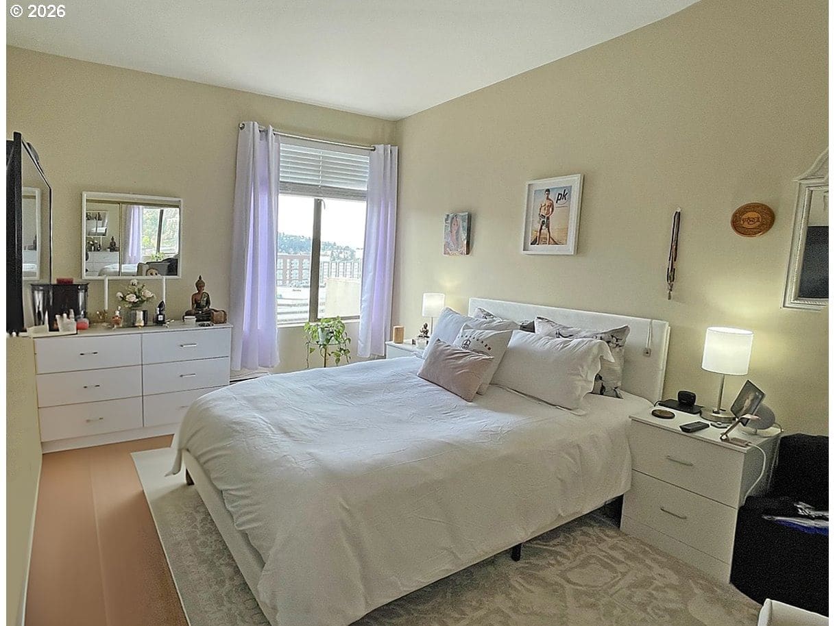 291days on marketWe have the views you’ve been looking for! Twenty-four flights up, yours is a commanding vista from the prow of your balcony, where to your right, the river sparkles and the mountain rises above it. Directly ahead, evening brings glorious rose sunsets over the west hills and then, later, a myriad of winking city lights. Inside, warm bamboo floors, granite counters, contemporary lighting, new remote-controlled fireplace and greatroom design come together for a sophisticated vibe. The addition of barn-door sliders has transformed the two-bed- two-bath floorplan into dual primary suites. In the kitchen, you are well-equipped with updated stainless appliances and glass-top range. Washer and dryer are full-size front loaders hidden away from view in the entryway. A/C? Of course! Just next door: Fully equipped gym, locker room, sauna, full-size swimming pool and patio, and an event venue you can reserve. More: Your own parking space, your own dedicated storage space, 24-hour security+concierge and 53 spaces for guest parking. Cable and internet included, HOA pays all utilities except electric.