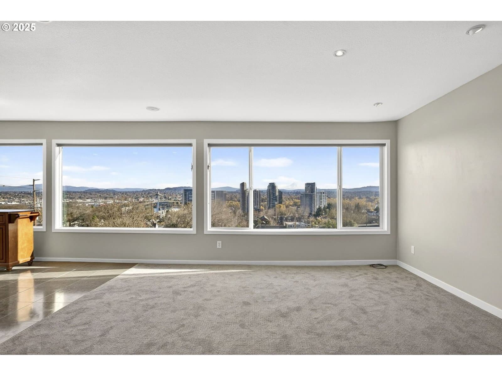 Live your best Portland life in this cozy condo nestled in a wooded hillside with breathtaking views of downtown, Southeast Portland, the Cascade mountain range, and the Willamette river! Watch the sunrise from your living room and then step outside your door to explore all of the outdoor amenities that the Homestead/Lair Hill area offers. Discover old growth forests and city views by hiking or biking the trails of the Terwilliger Parkway and Marquam Nature Park. Entertain friends and family on your private 384 square foot deck with one of the best views in the city. The open floor plan with lots of windows allows you to fully immerse yourself in this spectacular setting. This unit has fresh paint, new carpeting, and a stacking washer/dryer unit that provides much-needed convenience. The kitchen features slate flooring, a built-in Subzero refrigerator, a Miele dishwasher and a stainless-steel range. Play your favorite beats on the Bose speakers in the ceiling and an additional speaker on the deck. The complex has recently undergone a complete exterior renovation including new siding, exterior paint, vinyl windows and doors. The HOA is currently in the process of replacing the decks and awnings and this unit is on the replacement list. This condo includes an assigned parking spot and a storage unit. Fantastic location just minutes from OHSU, the South Waterfront, downtown, and quick access to I-5, 405, and highway 26. Walk score of 73 and bike score of 69.