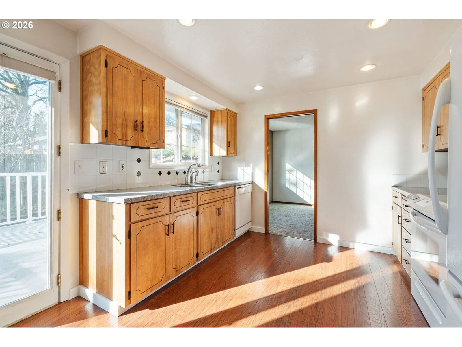 Move-in ready Gladstone home on a desirable corner lot featuring new carpet, fresh interior paint, newer roof 2021, and brand new furnace 2026. This spacious 4-bedroom, 2.1-bath home offers nearly 2,000 sq ft across three levels with a light-filled living room highlighted by a stone fireplace. The kitchen provides ample cabinetry and natural lighting, flowing into the dining area for easy everyday living. Upstairs includes generous bedrooms and a primary suite with private bath, while the lower level offers flexible space for guests, office, or bonus room. Enjoy the private backyard with deck, mature landscaping, RV/boat parking, attached 2-car garage, and convenient access to schools, parks, and shopping. Make your offer today!Offers in hand will respond 3/3/2026 12pm.