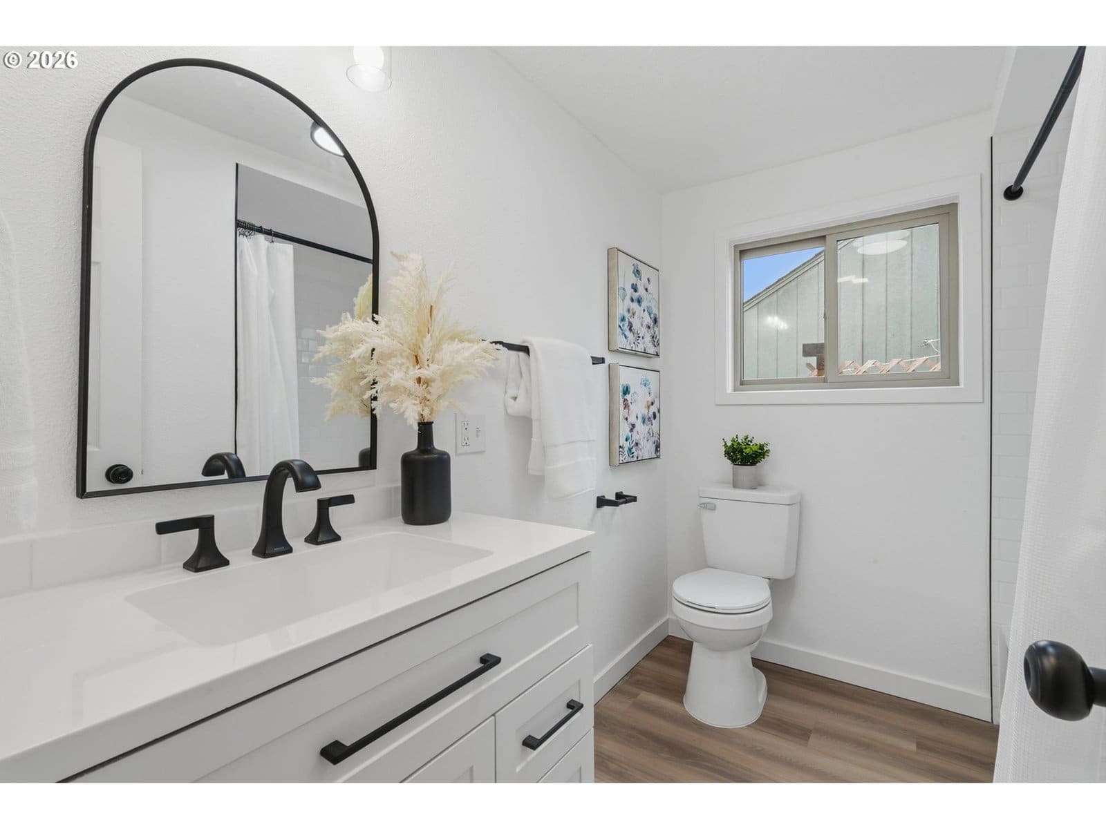 This light and airy 2-bed, 1-bath home was thoughtfully refreshed from top to bottom and is truly move-in ready. Inside, you’ll find fresh paint, new flooring, and beautiful arched entryways that give the home timeless character. The updated kitchen features sleek countertops, classic white subway tile, and stainless steel appliances. The bathroom has been fully updated with modern finishes for a clean, polished feel. Outside, enjoy a fully fenced backyard with privacy, space for gardening, and room to relax or entertain. A detached garage and .11-acre lot add extra functionality and storage. Built in 1949, this home blends classic charm with today’s modern updates beautifully.