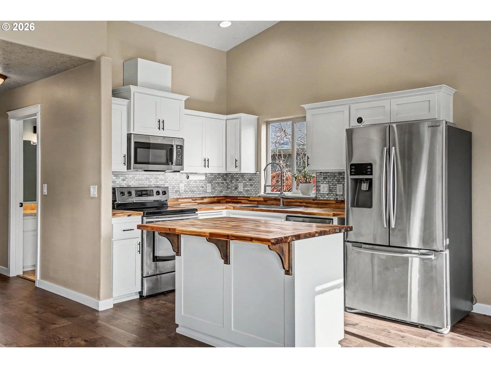Welcome to your home sweet home! Open floorplan, updated kitchen with butcher block counters, stainless steel appliances, new interior paint and new laminate flooring! This single level 3 bedroom, 2 bath cutie is light, bright and inviting with a gas fp in the great room and a patio door out to the large, fully-fenced backyard. A deck and a paver patio provide plenty of outdoor entertaining space and there's extra parking up front for a small RV or boat. Don't miss it!