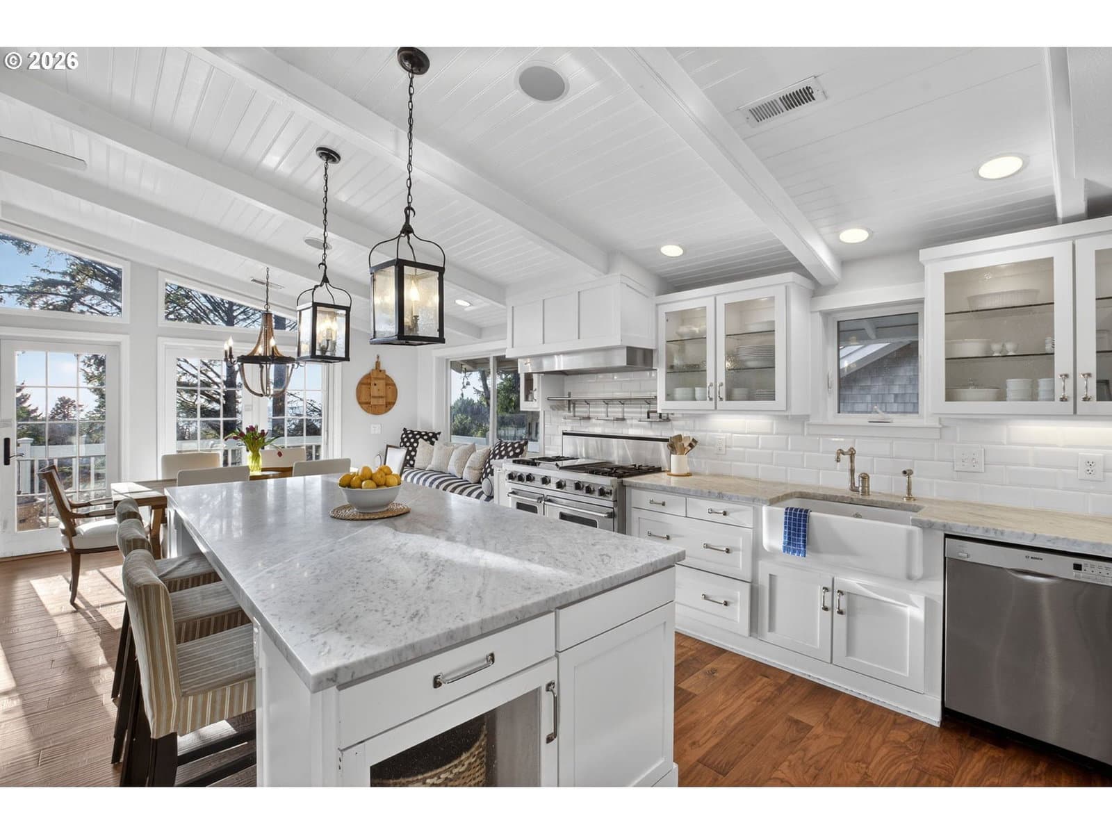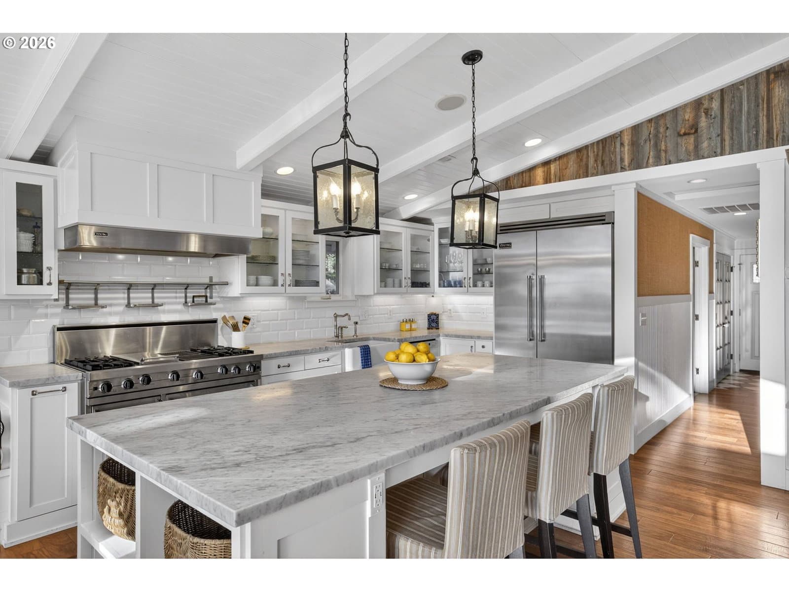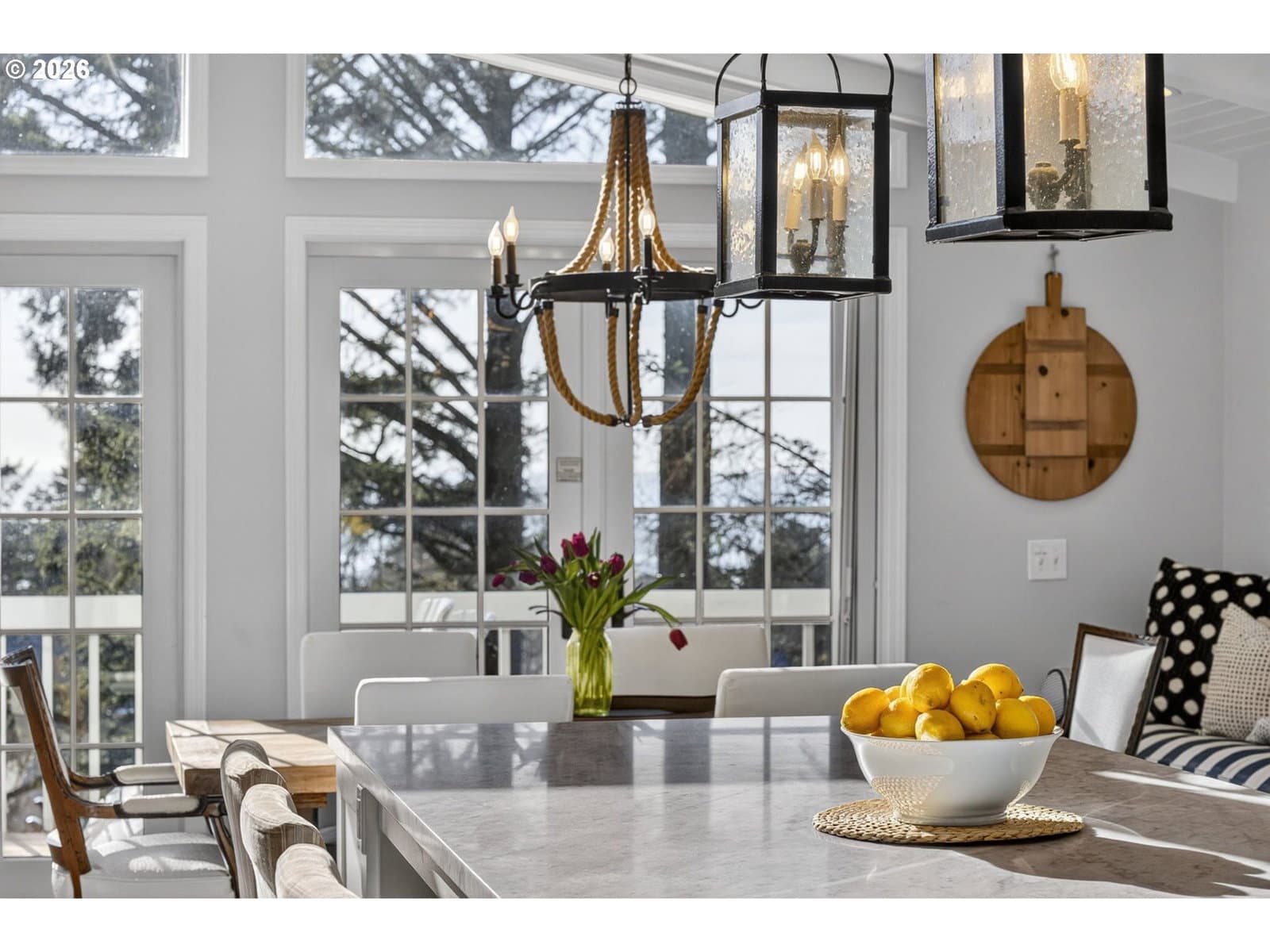 Fully furnished & thoughtfully curated, coastal retreat, blending East Coast elegance with Oregon Coast serenity in Tolovana Beach. Inspired by 'Something's Gotta Give', this 3 level home features vaulted ceilings & expansive west facing windows with distant ocean views. The great room offers a dramatic stone fireplace, custom built-ins, and triple French doors opening to a spacious deck. Gourmet kitchen with industrial gas range, griddle, grill, double ovens, wine cooler, Carrara marble, & custom cabinetry. Luxurious primary suite with fireplace, sitting area, private deck, steam shower, & soaking tub. Three additional bedrooms are thoughtfully designed with custom finishes. Multiple living spaces provide flexibility, including a lower-level game room. Located on a dead-end street, surrounded by forest, the home is approximately half a mile from beach access, minutes to downtown Cannon Beach & Ecola State Park, this property combines privacy, proximity, and lifestyle appeal. Contact your broker to schedule a private showing or to receive the full feature sheet.