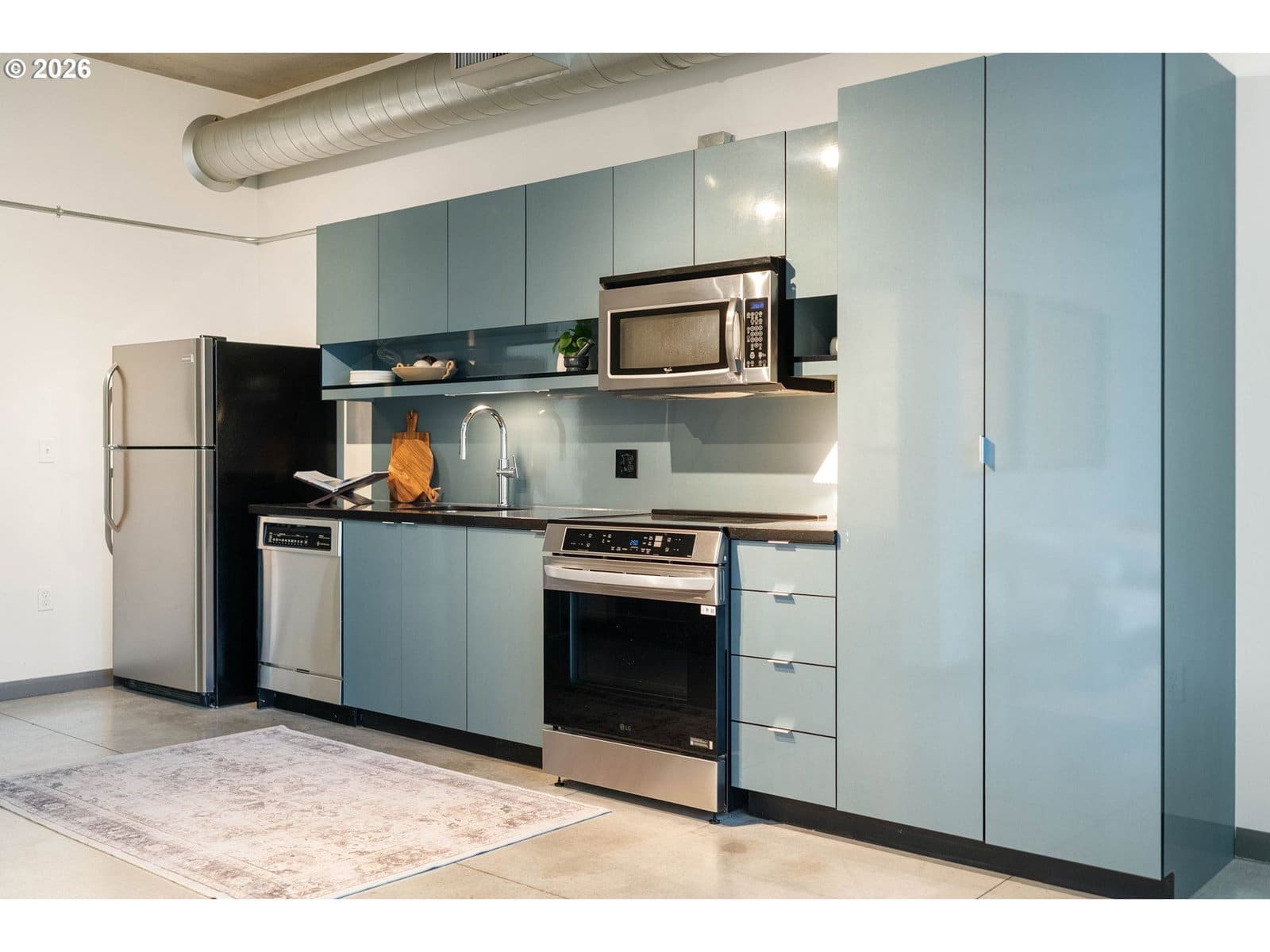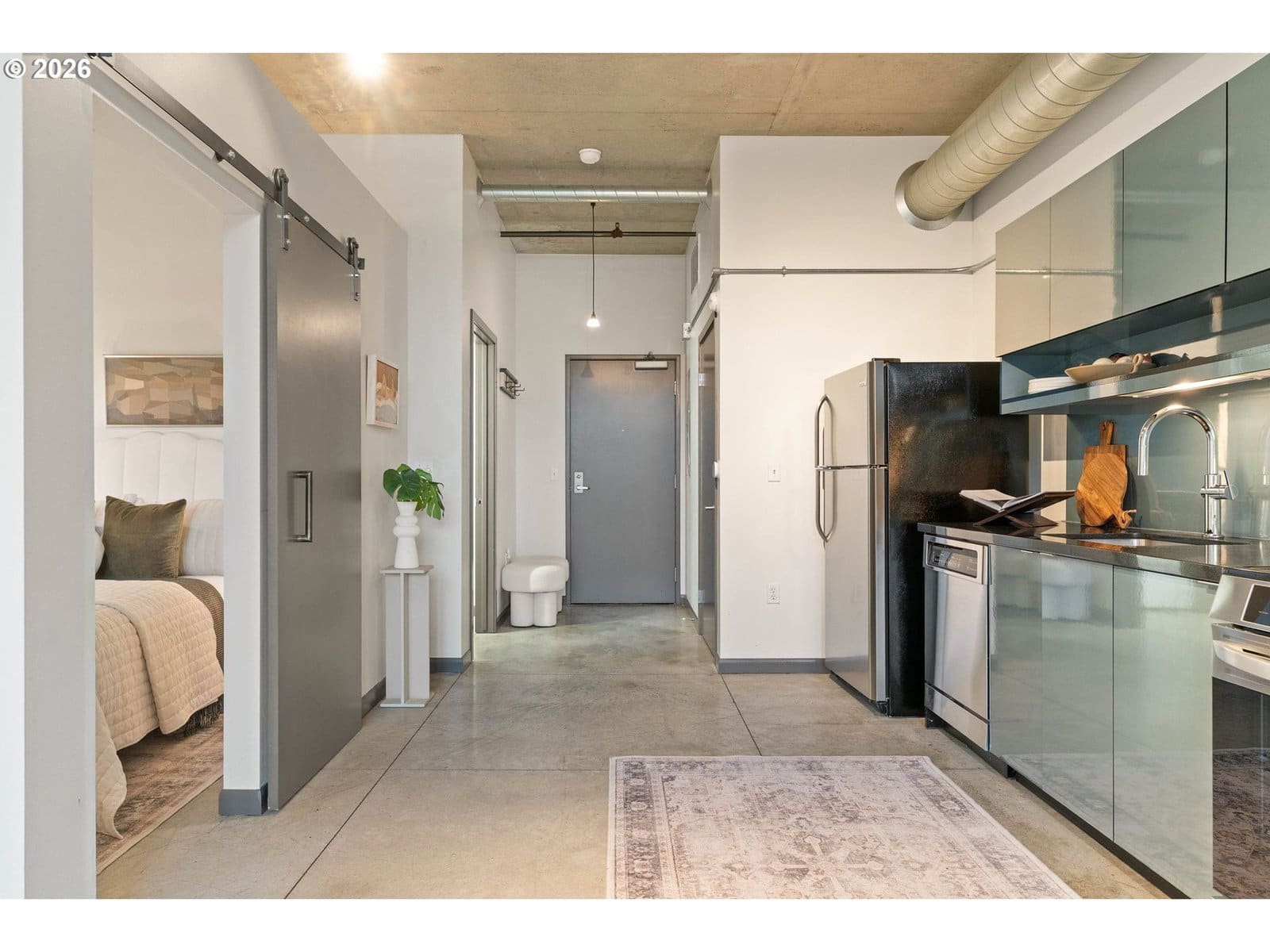 Live large by living simply. This beautifully styled 663 sq ft residence at Streetcar Lofts proves that less space can mean more life. Thoughtfully designed with soaring ceilings, expansive windows, and a bright, open layout, this home feels anything but small—inviting you to slow down, spread out, and truly enjoy where you live. A private balcony overlooking the landscaped courtyard offers the best of both worlds—lush greenery and city energy—while maintaining a sense of calm and privacy that’s rare in urban living.Set in the heart of Portland’s coveted Pearl District, you’re surrounded by the best of the city—morning coffee, gallery strolls, evening dinners, First Thursdays, and the streetcar just steps away. Industrial-chic architecture meets modern comfort, creating a space that feels both grounded and inspired.The building itself elevates everyday living, with a beautifully landscaped courtyard offering a peaceful, green escape, a well-appointed fitness center to keep your routine effortless, and inviting common spaces that are perfect for gathering, hosting, or simply enjoying a change of scenery.Inside, a newly updated kitchen features a sleek induction oven for precise, efficient cooking, while a spacious walk-in closet provides exceptional storage. A brand new HVAC system installed in 2026 adds comfort and peace of mind, rounding out the home’s thoughtful upgrades. With peaceful outlooks and the rare ease of deeded parking, this is effortless urban living at its finest. Whether you’re seeking an elegant flat or a stylish everyday retreat, this home delivers a lifestyle that feels expansive, connected, and undeniably cool.