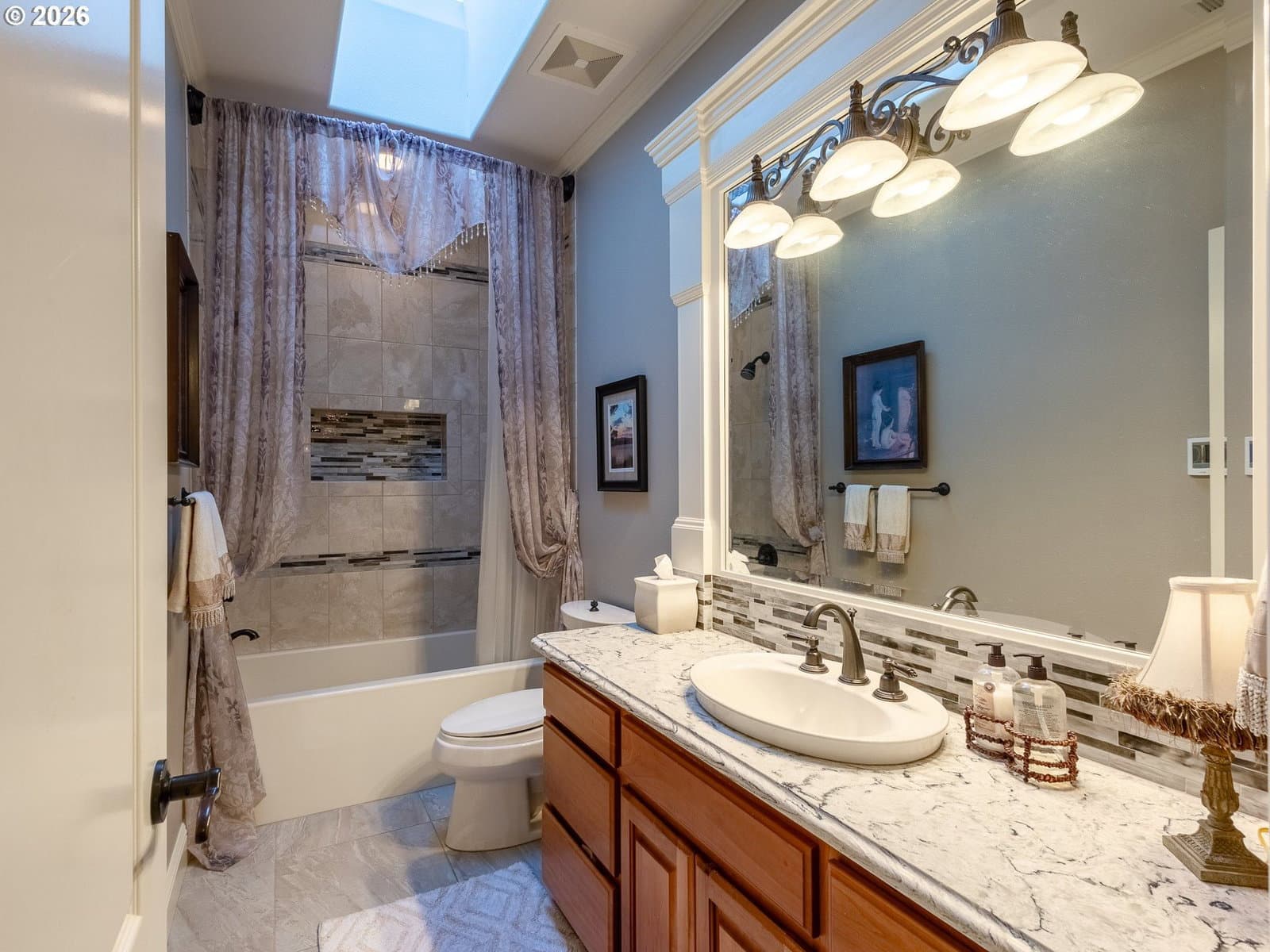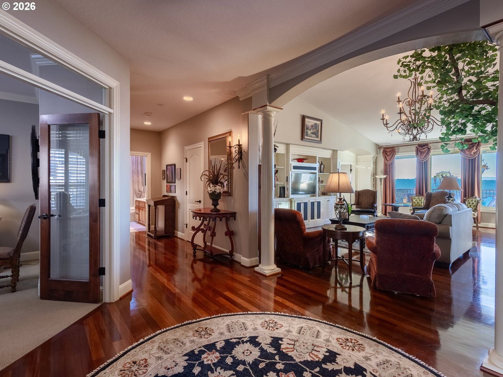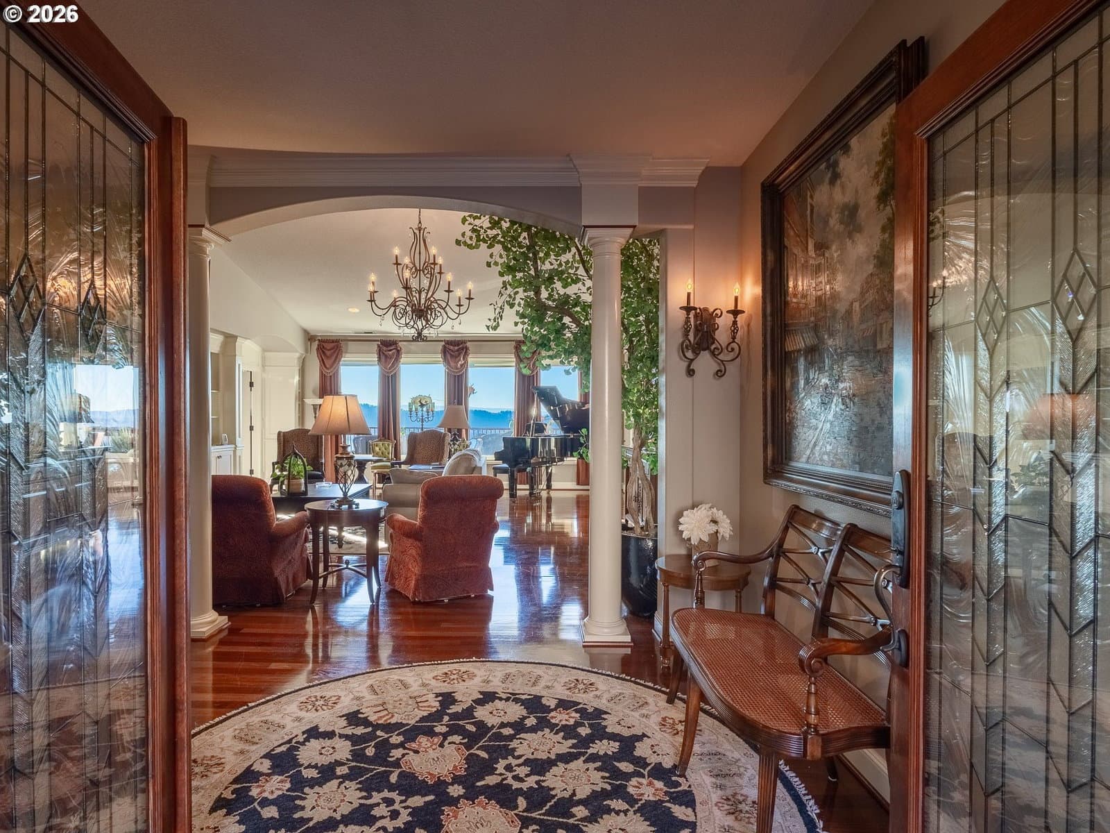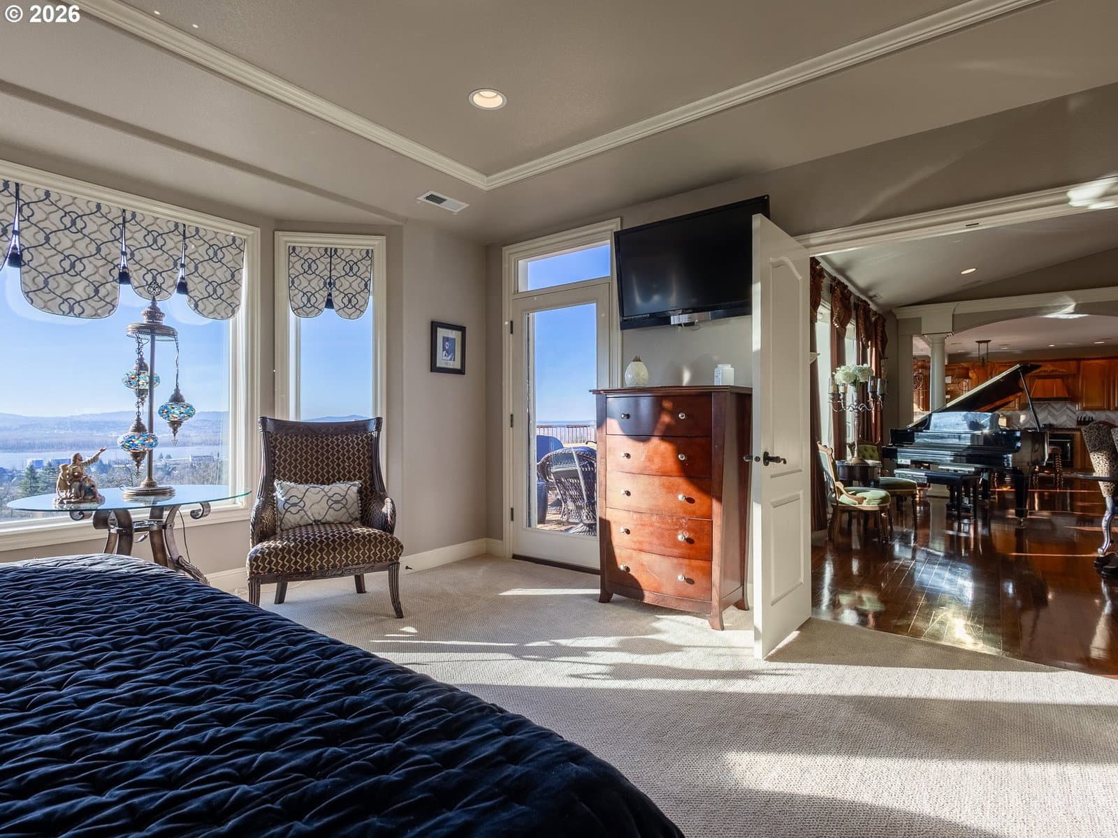 Breathtaking panoramic views of the Columbia River, Mt. Hood, and the Portland cityscape set the stage for this exceptional 2004 Parade of Homes residence. Offering 4,700+ sq ft, this 4-bedroom, 3-bath home blends luxury, comfort, and thoughtful design.The main level features 2,475 sq ft of single-level, open-concept living with a spacious great room, gourmet kitchen, and a professional office. Brazilian Teak Hardwood floors, south facing picture windows with river views and a gas fireplace make this level a cozy retreat. Also on the main floor are a beautifully refinished full bath with heated floors, a second bedroom, and a laundry room with sink and ample storage. The primary suite is a true retreat, showcasing a bay window with seating area and direct access to the 40+ foot upper level deck. The ensuite bath includes a jetted soaking tub, 8-ft walk-in shower, double vanities, heated floors, and a walk-in closet.The finished lower level offers an additional 2,230 sq ft, including a second primary bedroom with access to the 35' lower deck and hot tub. This level also features a gaming area with wet bar, theater room, wine room, kids’ playroom, fourth bedroom, updated third bath with heated floors, and a second laundry/craft room, plus access to 600+ sq ft of storage. Outdoor living is equally impressive with mature landscaping, a putting green, and a fenced raised garden area. The 3-car garage features epoxy flooring and a exterior hot- and cold-water spigot for car washing. Brand-new siding (2025) wraps the entire home.Appliances staying with home. With too many features to capture here, this home truly must be seen in person. See the Features Sheet for additional details.OPEN HOUSE Sat 1/31 11am - 1pm and Sun 2/1 12pm - 2pm.