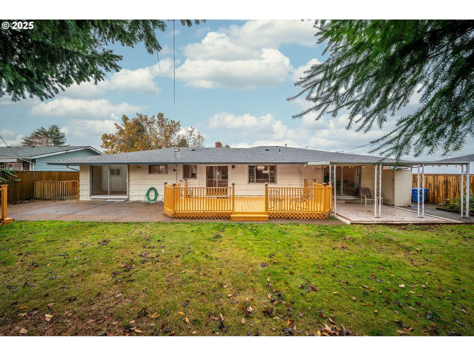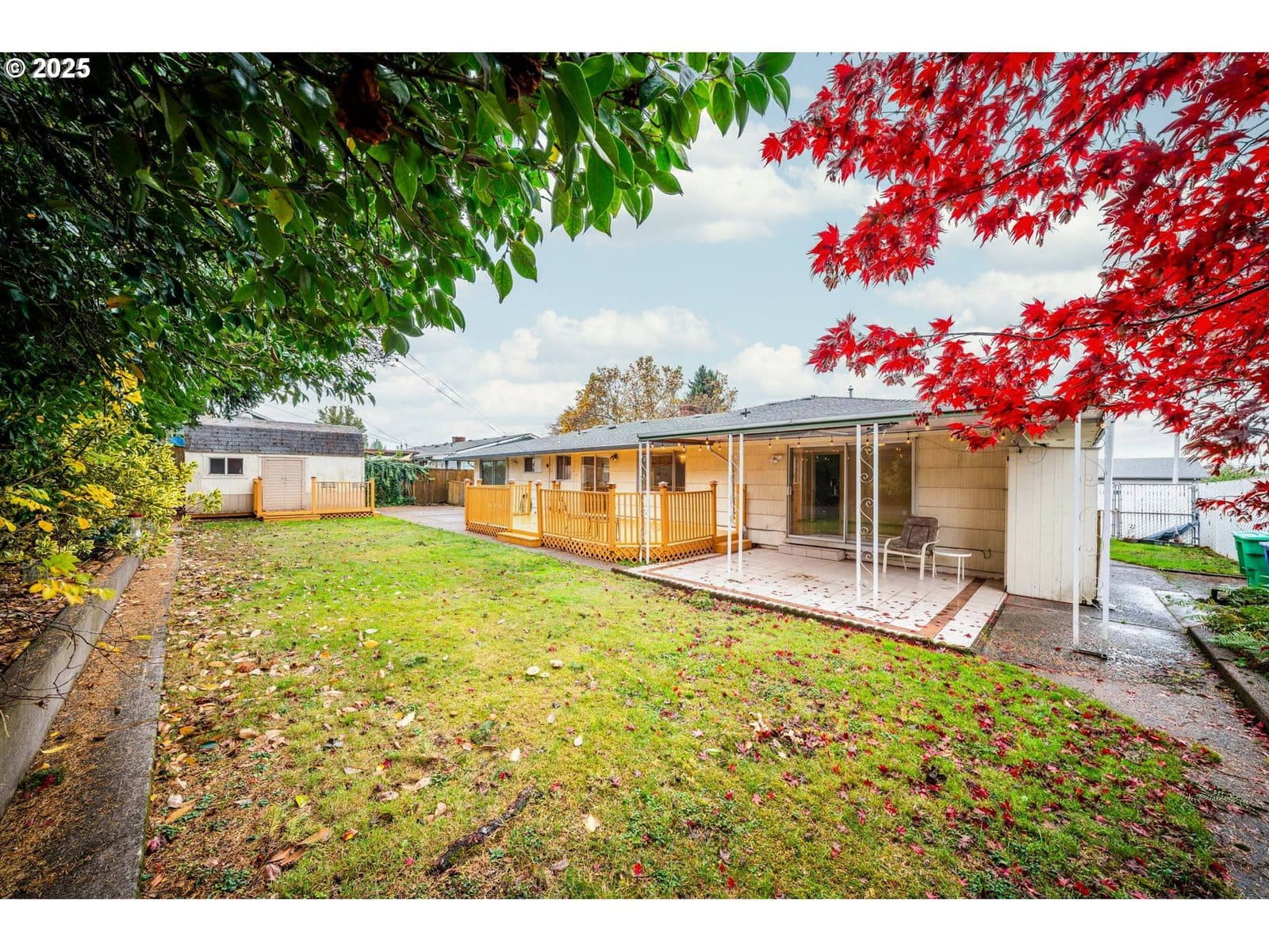 Charming One-Level Home in Fabulous Argay Terrace! Light and bright ranch-style home! Flowing one-level floorplan! Inviting living space with freshly painted interior, hardwood floors, and a stunning fireplace. Large windows and multiple sliding glass doors fill the home with natural light! The open kitchen features dishwasher, stainless steel refrigerator, built-in microwave and lots of storage! Eat bar connects seamlessly to the living room & dining area, perfect for entertaining! The primary suite offers a private bathroom and a sliding glass door leading to the backyard and patio. Desirable southern exposure. Relax on the spacious covered patio & backyard deck. Ideal for outdoor living year-round! The level backyard is fence and includes a storage shed, plenty of space for gardening & playing in the yard. Mature trees and landscaping create a sense of privacy. Ample storage throughout the home. This property is ready for your personal touch. Don’t miss this home in one of East Portland’s most desirable neighborhoods! Elementary school nearby. Close to two wonderful parks: Luuwit View Park with amphitheater, skate park, community gardens, playgrounds, soccer fields, BBQ areas, and more; and Argay Park with tennis courts, basketball, playgrounds, soccer fields, and a dog park.