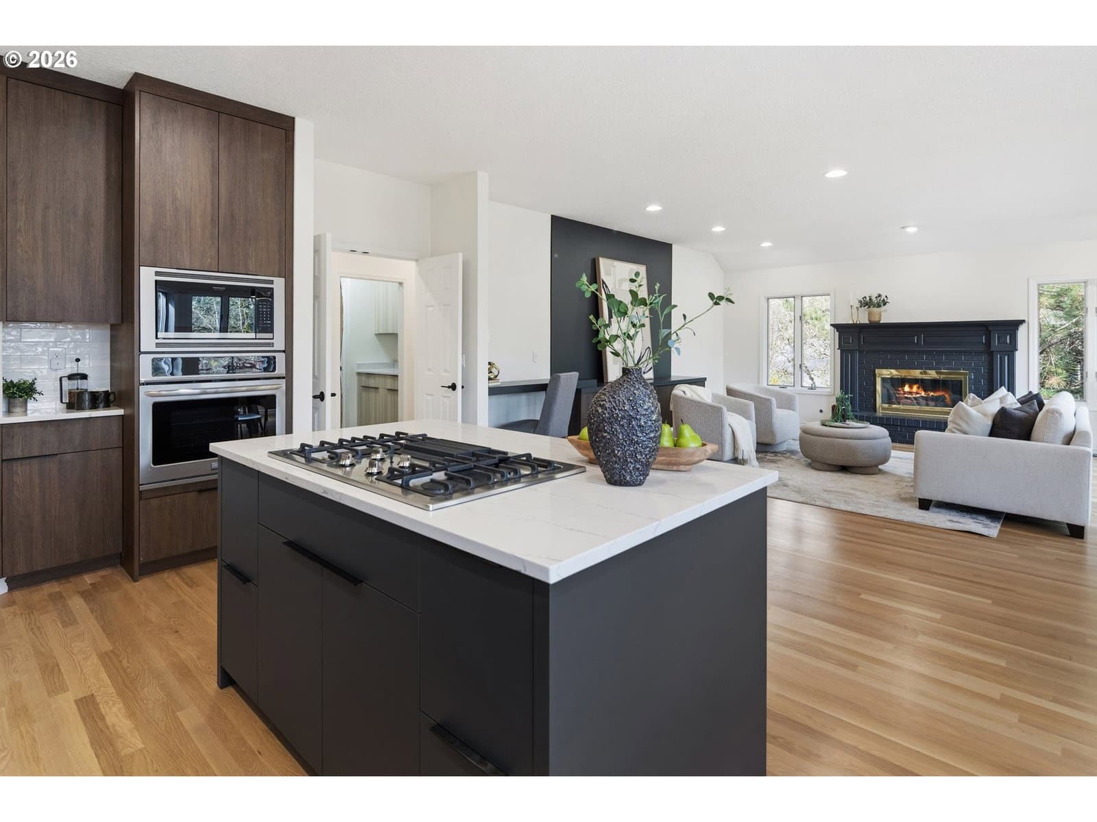 Tucked within the coveted gated enclave of Catlin Crest, this beautifully remodeled residence offers an exceptional blend of privacy, craftsmanship, and timeless Northwest elegance. Perfectly positioned on a 1/3-acre corner lot backing to tranquil greenbelt, the home captures the peaceful feeling of nature while remaining just minutes from the city’s best amenities. Inside, refined interiors unfold with rich hardwood floors, substantial custom woodwork, and thoughtfully curated finishes that reflect a commitment to quality and detail. Gracious formal living and dining spaces create an elegant setting for entertaining. The heart of the home—a beautifully appointed island kitchen—flows seamlessly into the expansive family room with a fireplace and access to the expansive deck, where serene views of the surrounding greenery create the perfect backdrop for everyday living. Designed with comfort and convenience in mind, the home features a luxurious main-level primary suite, offering a peaceful retreat with generous proportions and quiet sophistication. The lower level expands the living experience, featuring a spacious bonus room ideal for recreation or media, along with two additional bedrooms and a full bath. With direct access to the backyard and lower patio, the space offers excellent flexibility for guests, multigenerational living, or extended entertaining. Additional highlights include a 3-car garage with epoxy floors, impeccable attention to detail throughout, and the sense of privacy that comes from a home surrounded by nature. Step outside and discover trails just beyond your door that connect you to the natural beauty of the area, while top-rated schools, shopping, and dining remain just minutes away. Ideally located between downtown Portland and the tech corridor, the home also benefits from lower Washington County taxes. A rare offering that perfectly balances luxury, tranquility, and convenience in one of the area’s most sought-after communities