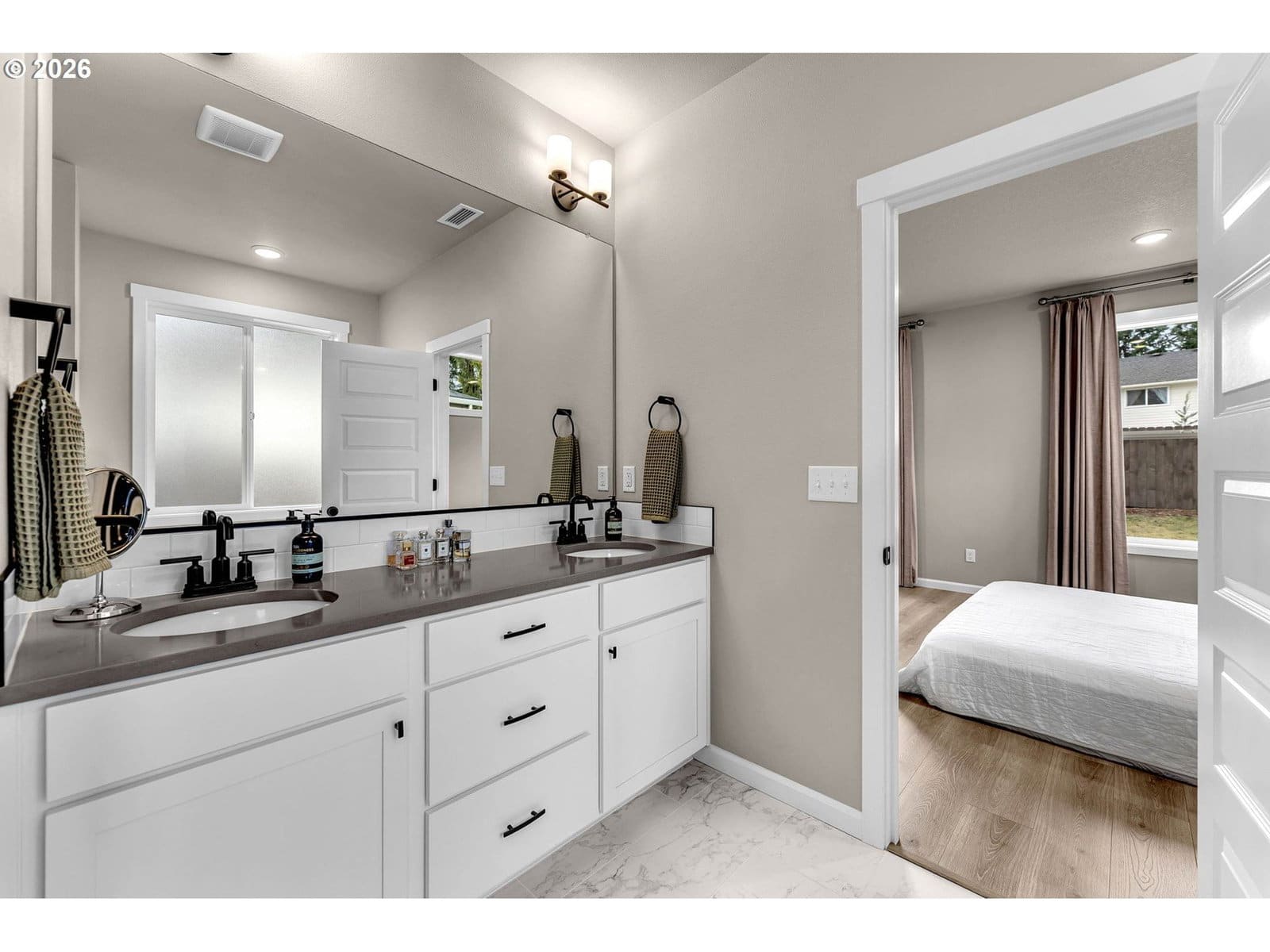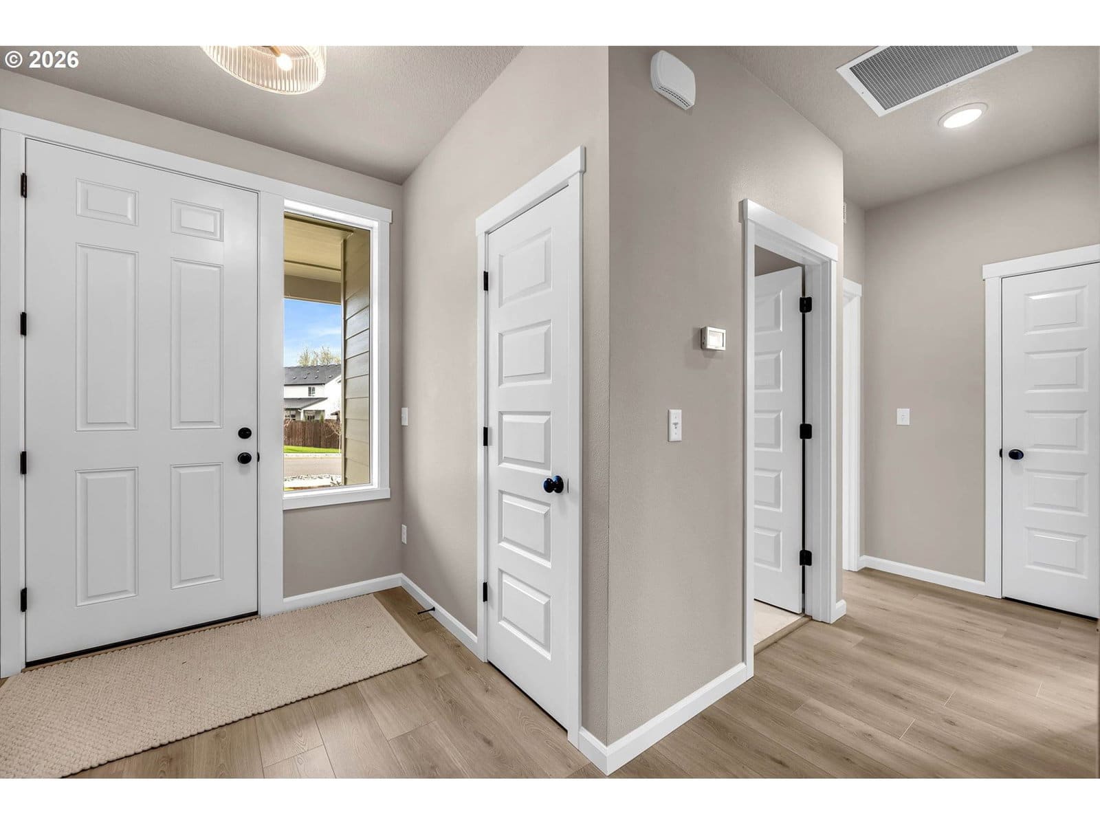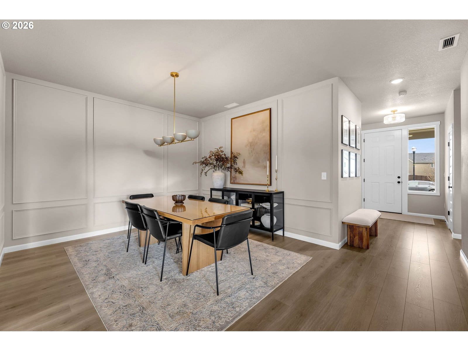 Extra-large 10,468 sqft lot. Single Level with Over-Sized Kitchen Island. Custom Added Wall Paneling in the Dining Room and Living Room. Custom Limestone Plaster Fireplace Surround and Mantel. Added Garage Cabinets for Storage. Amenities include a Covered Patio (with gas hook-up), 9ft Ceilings, Painted White Cabinets, Quartz Slab Countertops in Kitchen and Bathrooms/Laundry, Stainless Gas Appliances, Full Height 4 by 16-Inch Subway Style Backsplash, Under Cabinet and Pendant Lighting, Linear Style fireplace in the Great Room, Laundry Cabinets with Sink, Laminate Plank Flooring throughout. Tile Bathroom Floors and Master Shower. Upgraded flooring in the primary bedroom and closet. Full landscaping, Yard sprinkler system, fencing, garage door opener, and an electric car charger plug. Schedule a showing today! 3D Scan and Tour available. All installed appliances stay! Aho Construction
