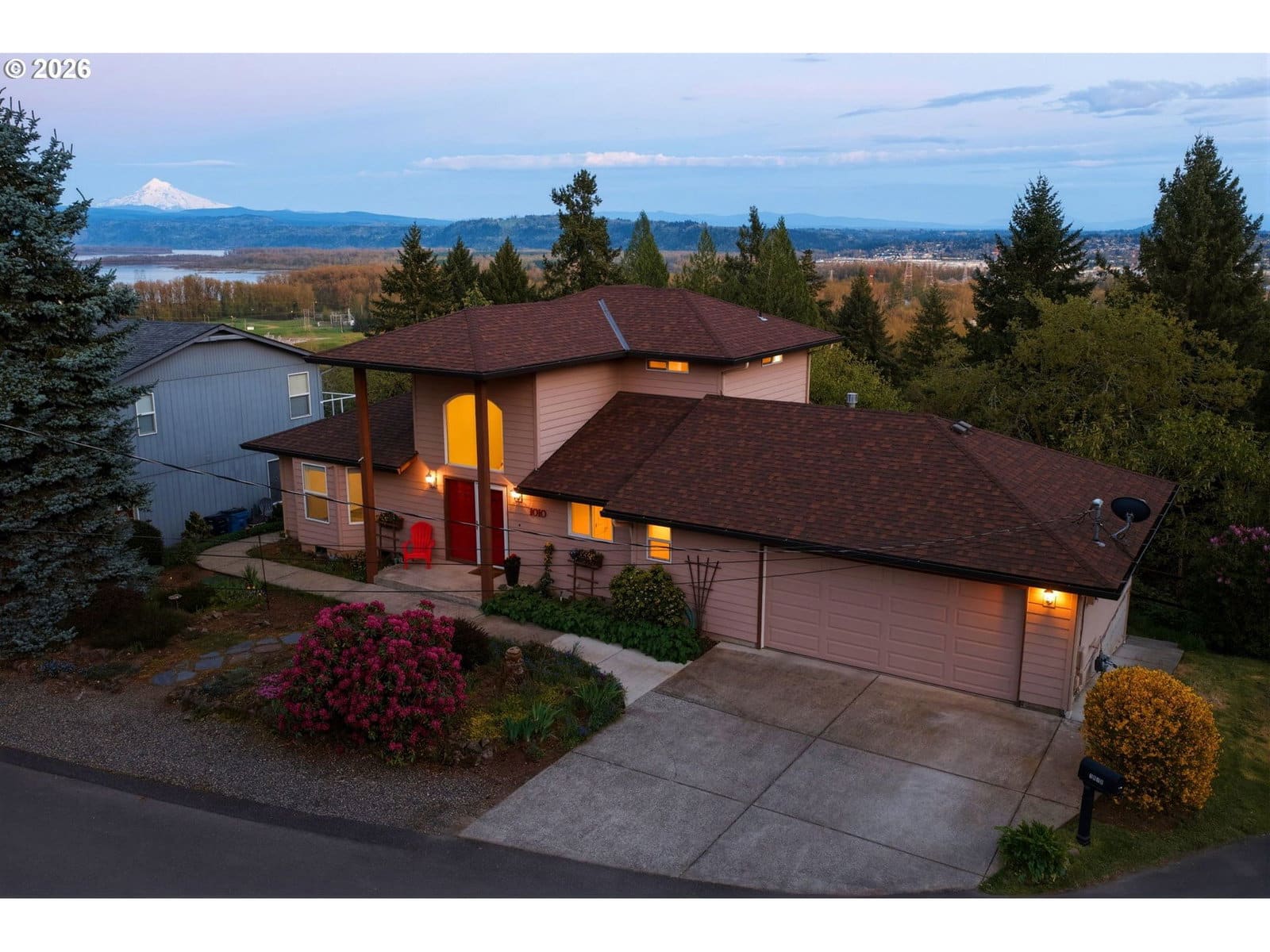 Perched at the end of a peaceful cul-de-sac in sought-after Camas, this home captures stunning panoramic views of Mt. Hood and the Columbia River. Inside, an open-concept design flows seamlessly, complemented by spacious bedrooms, a large laundry and mudroom, and a primary suite featuring a walk-in closet and private deck access. Step outside to two expansive back decks—perfect for morning coffee or sunset views. With a complete list of updates including a newer roof, furnace and AC, refreshed kitchen finishes, and more, this home offers the ideal blend of comfort, functionality, and breathtaking scenery. Walking distance to downtown Camas and just 15 minutes to the Portland Airport!