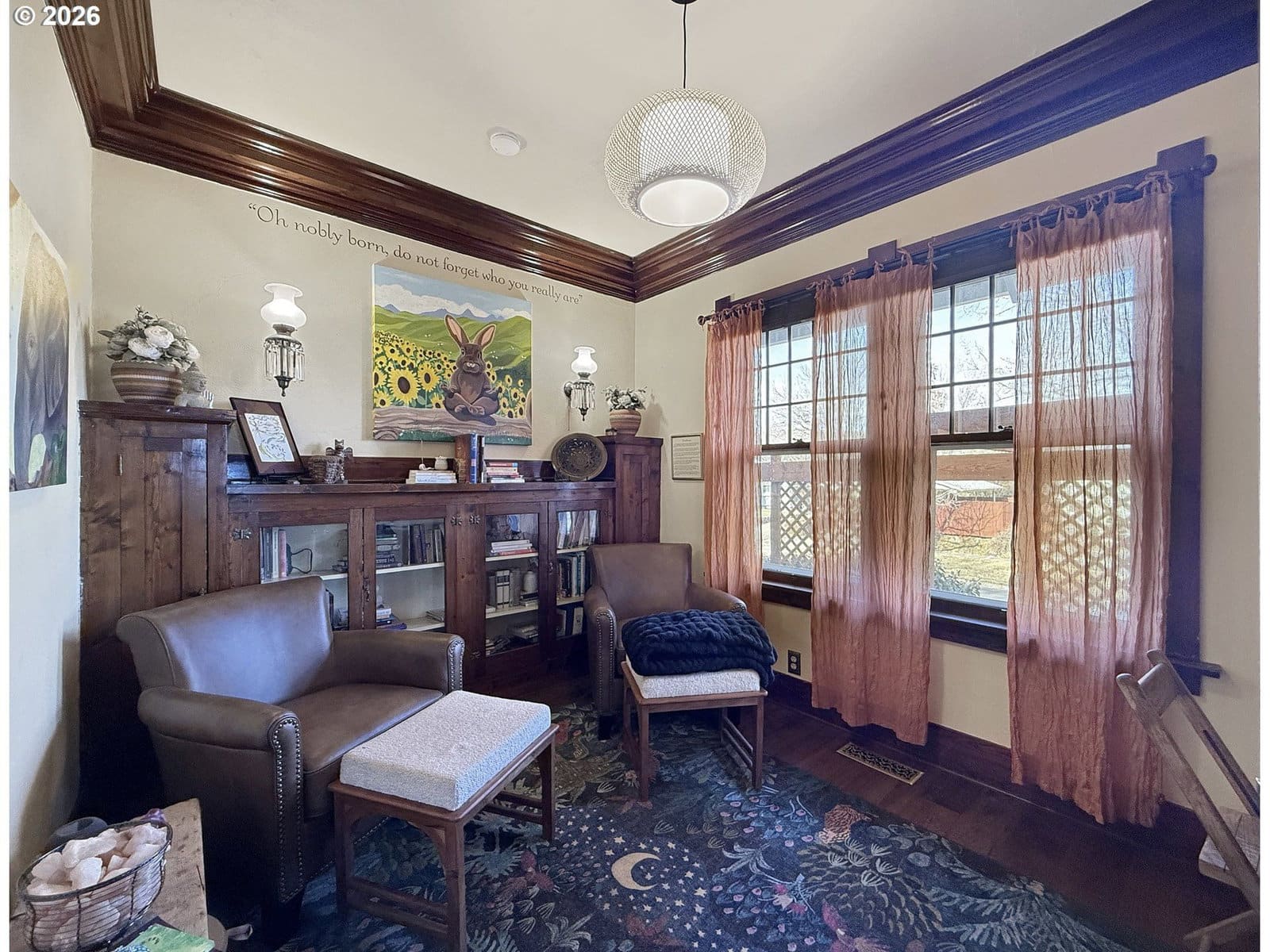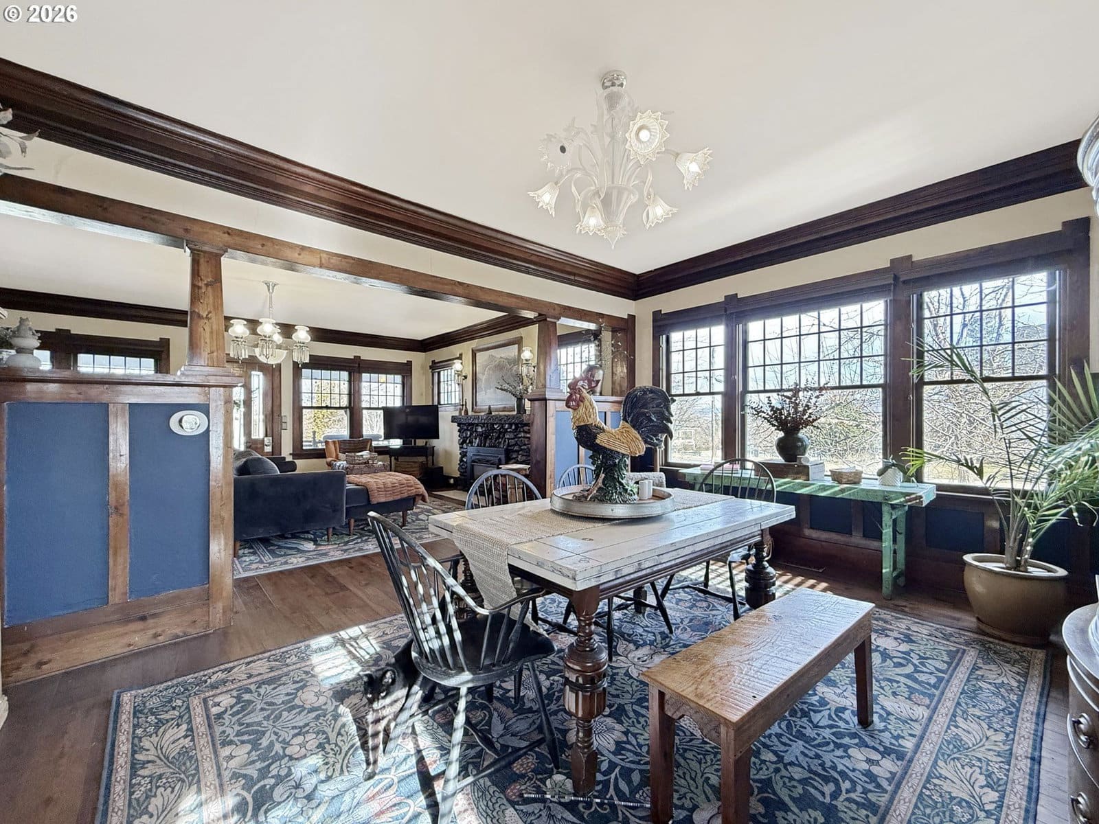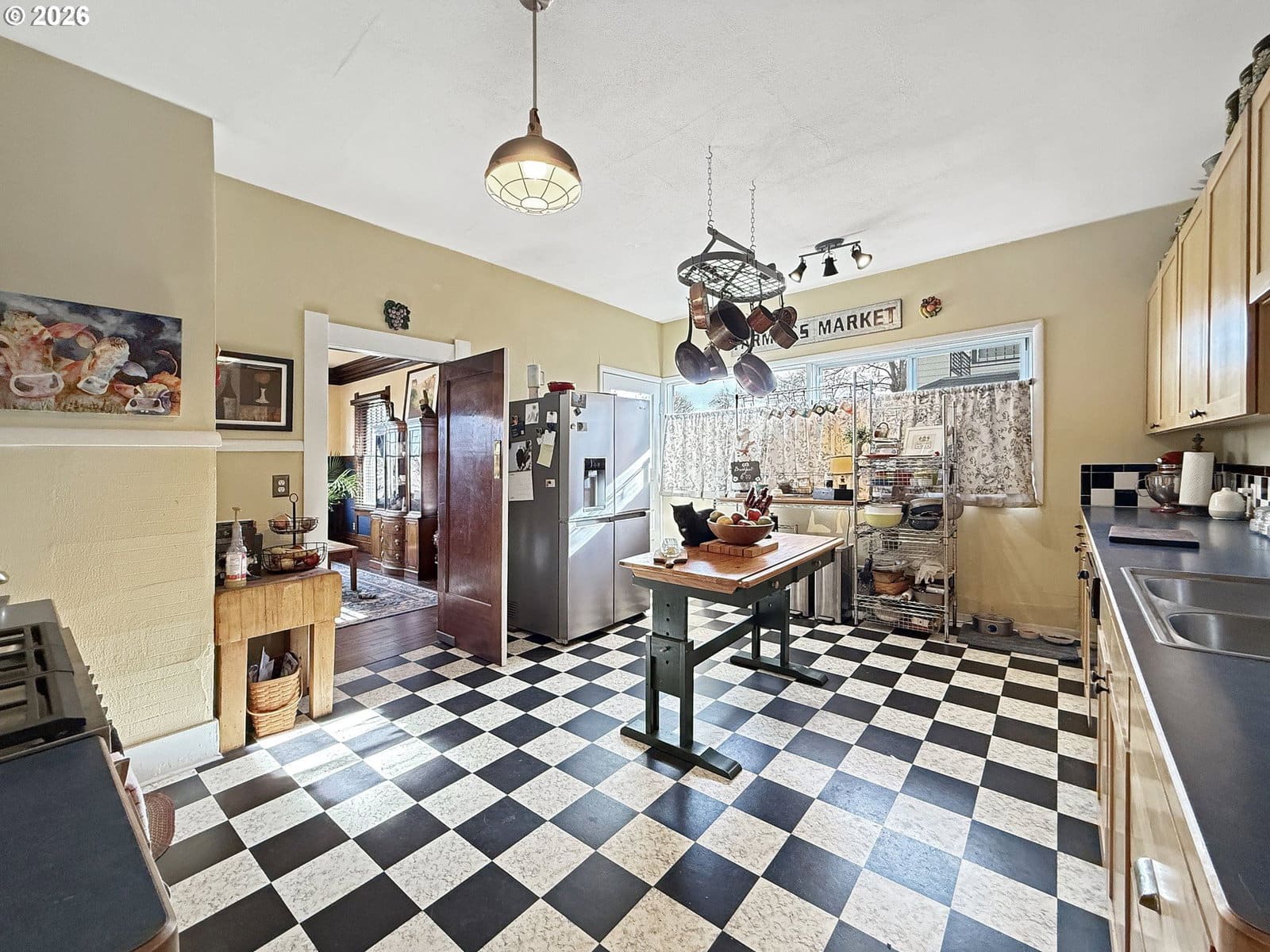 Welcome to 1508 1st St, where timeless elegance meets modern comfort in this beautifully maintained four-bedroom, two-bathroom craftsman home. Nestled on a picturesque terraced corner lot, this residence showcases the architectural character and attention to detail that makes craftsman homes so beloved. Step inside and discover original woodwork that tells the story of expert craftsmanship from a bygone era. The dining room features a stunning custom light fixture created by renowned local artist Tom Dimond, serving as a captivating centerpiece for memorable gatherings with family and friends. The upgraded kitchen boasts premium appliances, including a Bosch dishwasher and Smeg Italian gas range, perfect for culinary enthusiasts who appreciate quality and performance. Enjoy the convenience of flexible laundry options with hookups available on both the main floor and in the basement. The full unfinished basement offers tremendous potential with separate outside access, ideal for storage or a workshop. Outside, a detached garage with excellent natural light doubles as a workshop for hobbyists and DIY projects alike. Recent improvements provide peace of mind for years to come, including fresh exterior paint, a new water heater, new sewer line with cleanout, and new gutters—just a few highlights from an extensive list of updates. Located in the welcoming community of La Grande, this home combines small-town charm with easy access to outdoor recreation and local amenities. Don't miss this rare opportunity to own a piece of craftsman history with modern conveniences throughout. Schedule your private showing today!