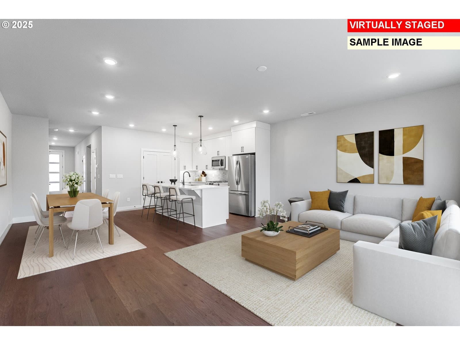 This new construction townhome is located in Scholls Heights, a community near greenspaces, shopping, schools, and dining. The Harper plan offers an open main floor with a modern kitchen, dining area, and great room leading to a covered patio with xeriscape landscaping. Upstairs, three bedrooms are located near a versatile loft, including the primary suite with a spa-inspired bathroom and walk-in closet. Interior highlights include quartz countertops, upgraded slab-style cabinets with under cabinet lighting, and luxury vinyl plank flooring. Other upgraded premium features include a picket-style backsplash and matte black hardware. This home also includes central air conditioning, a refrigerator, washer and dryer, and blinds—all at no extra cost! Rendering is artist conception only. Photos are of a similar home, features and finishes will vary. Below-market rate incentives available when financing with preferred lender! Harper Plan, Homesite # 104, Move-In-Ready!