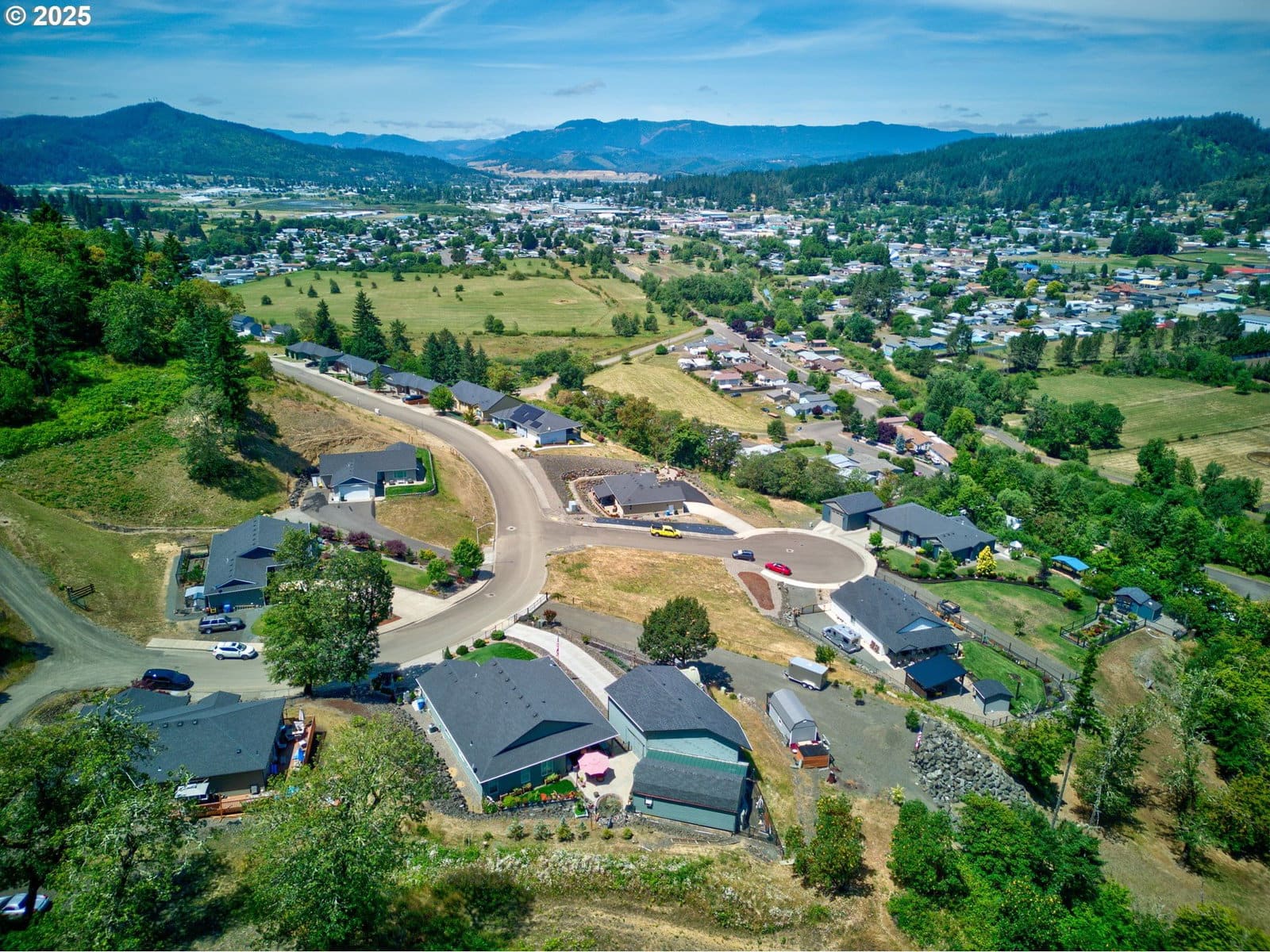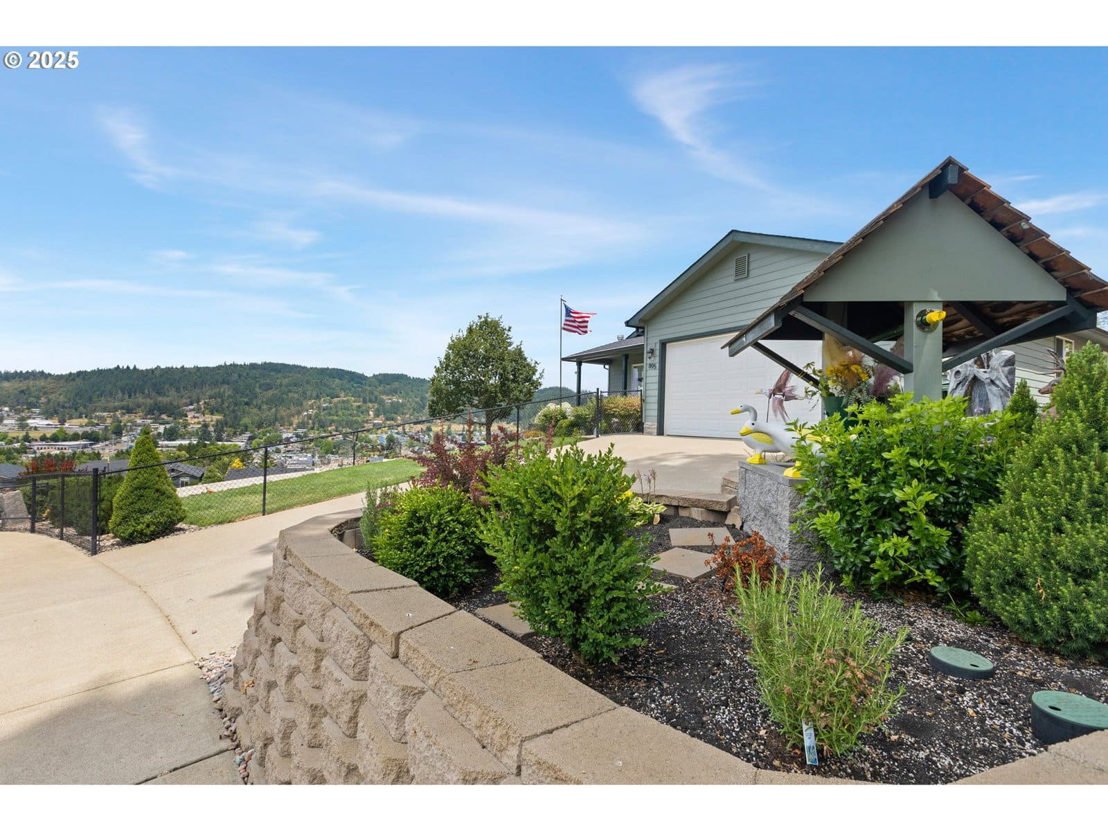 Shop, RV Garage, One Level Home, Double Lot, Views, Greenhouse & Incredible Outdoor Living. Welcome to 895 Valley Vista Street—an exceptional one-level home for sale in Sutherlin, OR that blends comfortable living with unmatched functionality and panoramic views of the city, valley, and surrounding mountains. This property offers features rarely found in one package—perfect for the hobbyist, gardener, traveler, or anyone who values space and privacy.Step inside to an open-concept living area with soaring ceilings, a cozy gas fireplace in the great room, and oversized windows that flood the space with natural light and capture the breathtaking scenery. The kitchen is beautifully appointed with granite countertops, stainless steel appliances, and an L-shaped island with eating bar—ideal for gatherings and everyday living. The spacious dining area flows easily into the main living space, all with clear views of the outdoors.The backyard is a private retreat featuring a covered patio with a built-in firepit, a tranquil water feature, and tiered landscaping. Automatic sprinklers keep the front yard lush and manicured. The front yard is fully fenced, adding privacy and security.For the gardener, this property is a dream: a fenced garden area with a greenhouse—complete with power and water—and a separately enclosed strawberry patch ready for harvest.The 12x30 finished workshop is insulated, heated with a gas heater, cooled with a window A/C unit, and ready for projects year-round. Need storage for your toys or travel rig? The attached shop/RV garage features a concrete floor, high ceilings, and accommodates a 30–35 foot RV or boat with ease. Additional graveled parking with hookups, a powered tool shed, and hot water access provide the ultimate setup for washing and maintaining your vehicles. Other thoughtful upgrades include LeafGuard gutter covers, an insulated attached garage, and ample storage throughout the property.