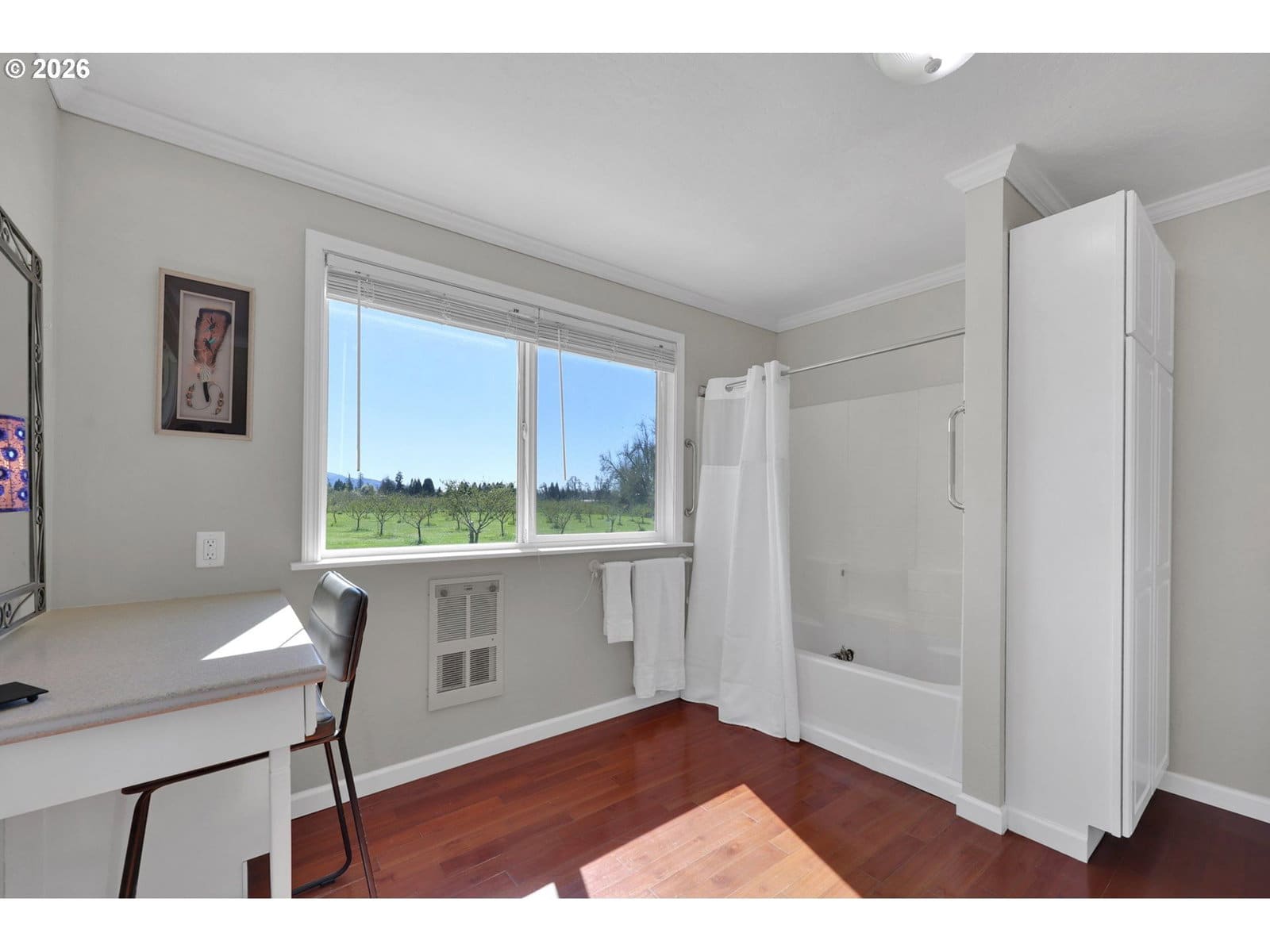 Nestled in a peaceful, park-like setting, this unique property offers the perfect blend of rural charm and functional living. Enjoy stunning mountain views from this fully fenced and gated property, designed for both comfort and versatility. The 2+ bedroom, 1 bath home features teak wood floors, propane fireplace, vinyl windows, spacious family room with wood stove, large covered deck and a long-lasting all-metal roof. An additional bathroom located in the spacious 34x50 shop with 14ft double door, 200Amp and its own meter adds convenience and flexibility for projects or workspace needs & Attached 20x50 carport. Outdoor enthusiasts and hobby farmers will appreciate the impressive amenities, including a chicken coop, dog run, tranquil seasonal pond, and hazelnut orchard. Whether you're looking to homestead, entertain, or simply relax in a serene environment, this property delivers. With wide-open space, scenic surroundings, and practical improvements already in place, this is a rare opportunity to own a truly versatile country retreat. Tax deferral.