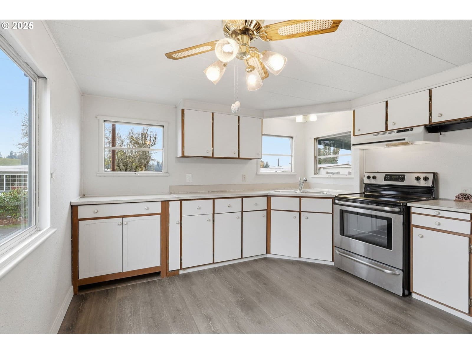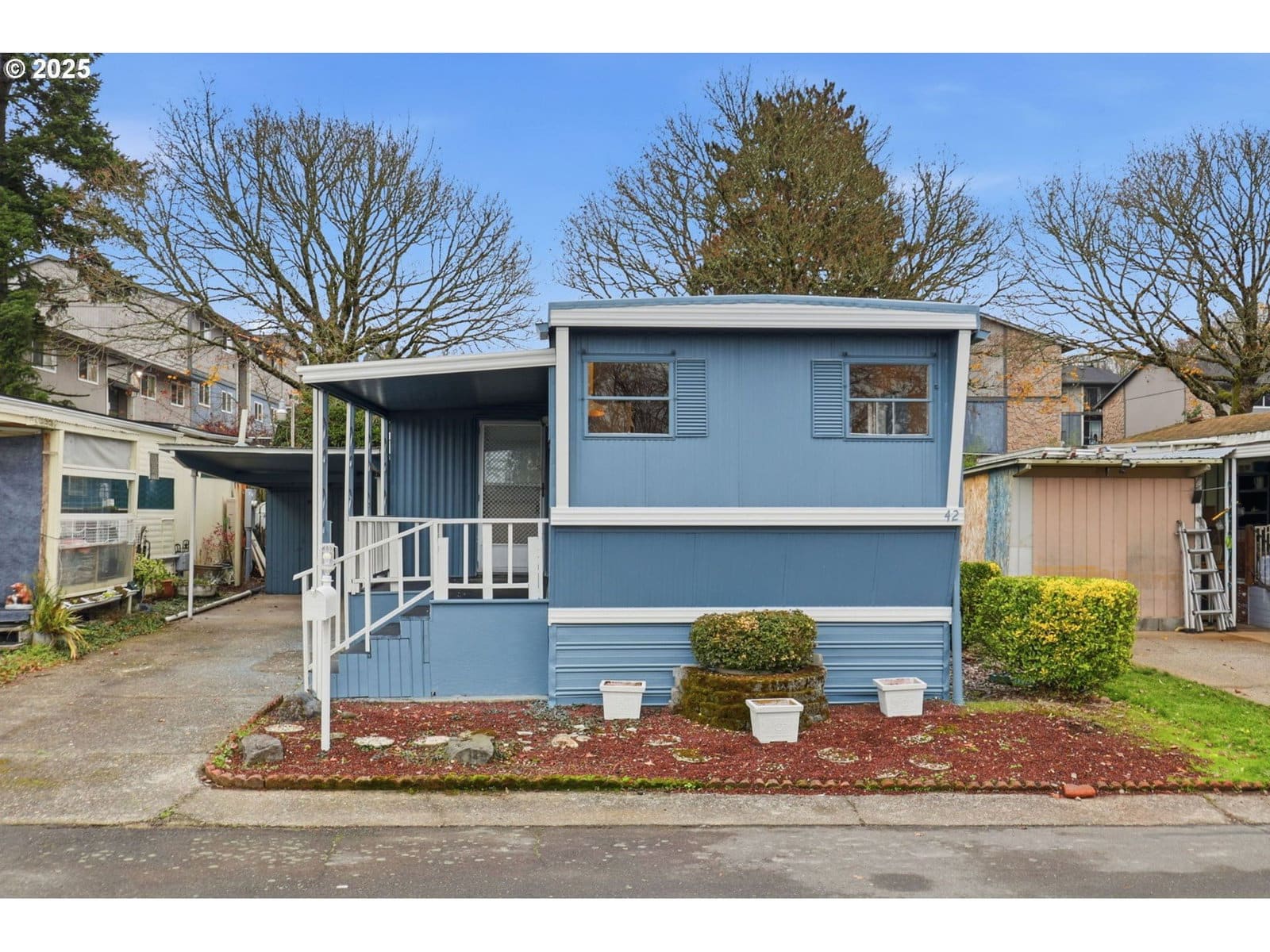 Move-in ready single-wide home featuring 2 bedrooms and 1 bathroom. This solid, manufactured home offers fresh updates including all new flooring, trim boards, and updated interior/exterior paint. Spacious living room provides a comfortable and inviting layout. Enjoy the covered deck perfect for relaxing year-round. Located in a friendly 55 and over manufactured home park close to shopping, dining, and other amenities. Space rent is $755/month and includes water, sewer, and garbage. A great opportunity for an affordable, clean, and easy-to-care-for home in a convenient location.