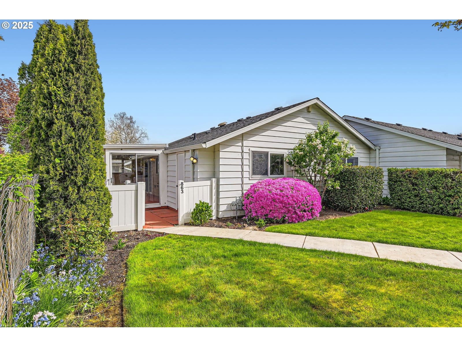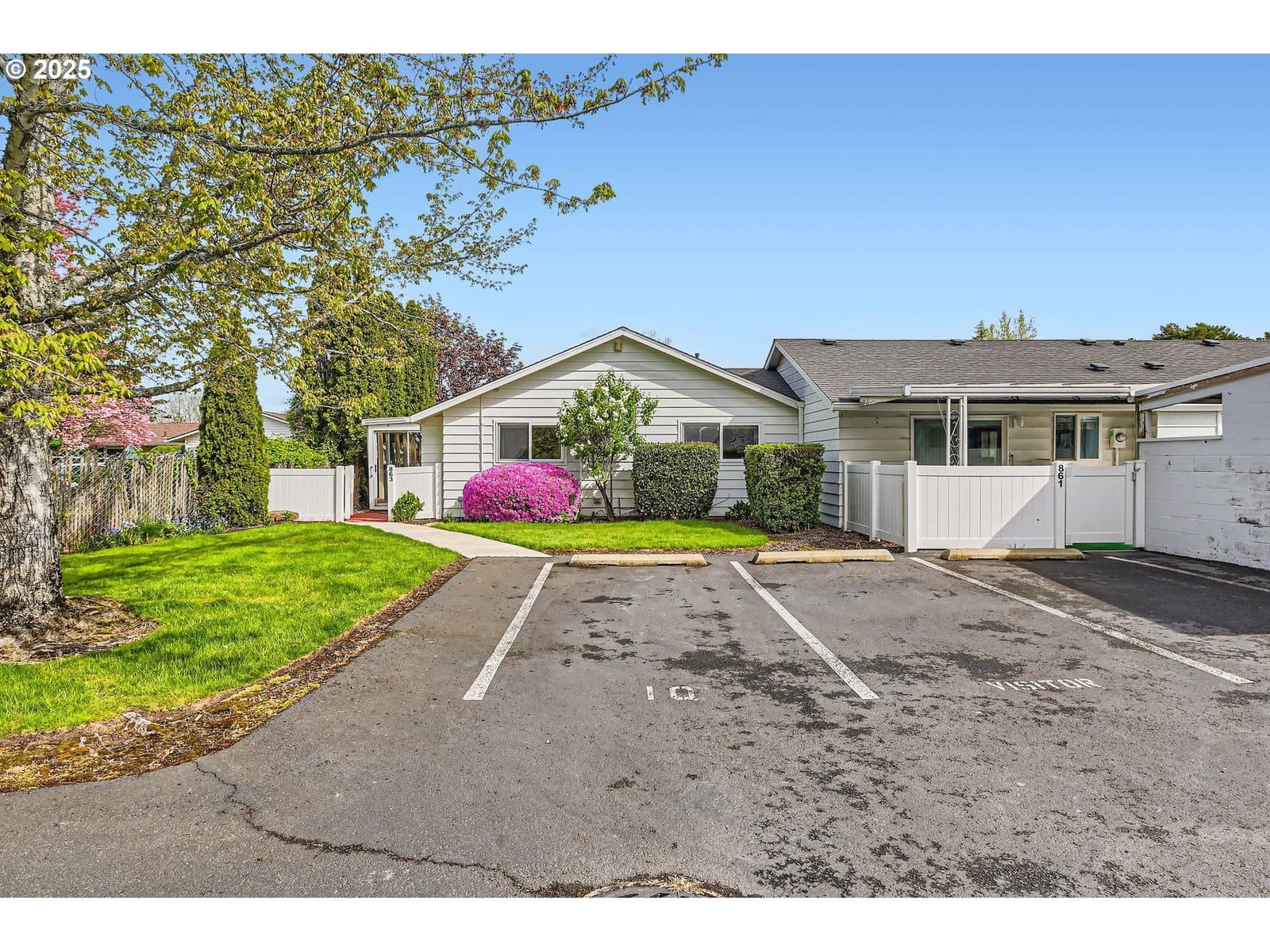 Thoughtfully Updated & Exceptionally Private 55+ Condo in Eagle Estates. Enjoy low-maintenance, one-level living in this beautifully updated 2-bedroom, 1-bath home nestled in the highly desirable Eagle Estates—a vibrant 55+ community known for its peaceful setting and well-kept amenities. This end-unit offers added privacy with just one shared wall and a tranquil outlook. Step inside to find warm, laminate floors, fresh interior paint, and a cozy gas fireplace that sets the tone in the inviting living room. The updated kitchen features modern finishes and opens to dining area with direct access to a covered deck—perfect for morning coffee or relaxing in any weather. The remodeled bathroom boasts new tile, a sleek shower surround, and a contemporary vanity. Additional perks include a fully enclosed sunroom-style deck for year-round enjoyment, a covered carport, and an assigned second parking space. All appliances—including the refrigerator and in-unit washer/dryer—are included for move-in-ready convenience. Residents of Eagle Estates enjoy access to a beautiful clubhouse, a seasonal pool, and meticulously maintained grounds. Whether you're looking to downsize or simplify, this home offers the perfect blend of comfort, community, and convenience.