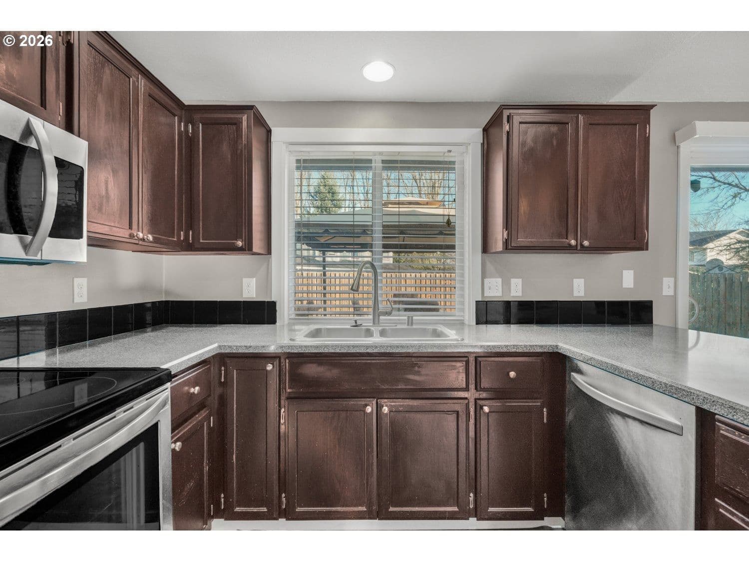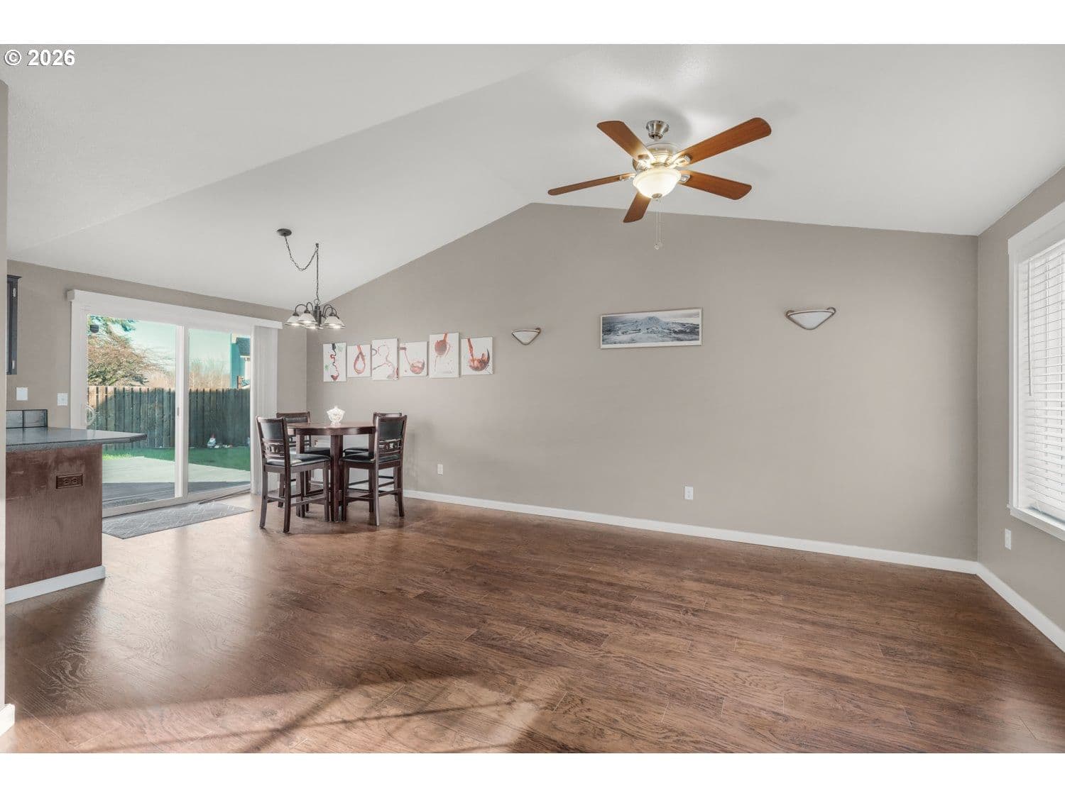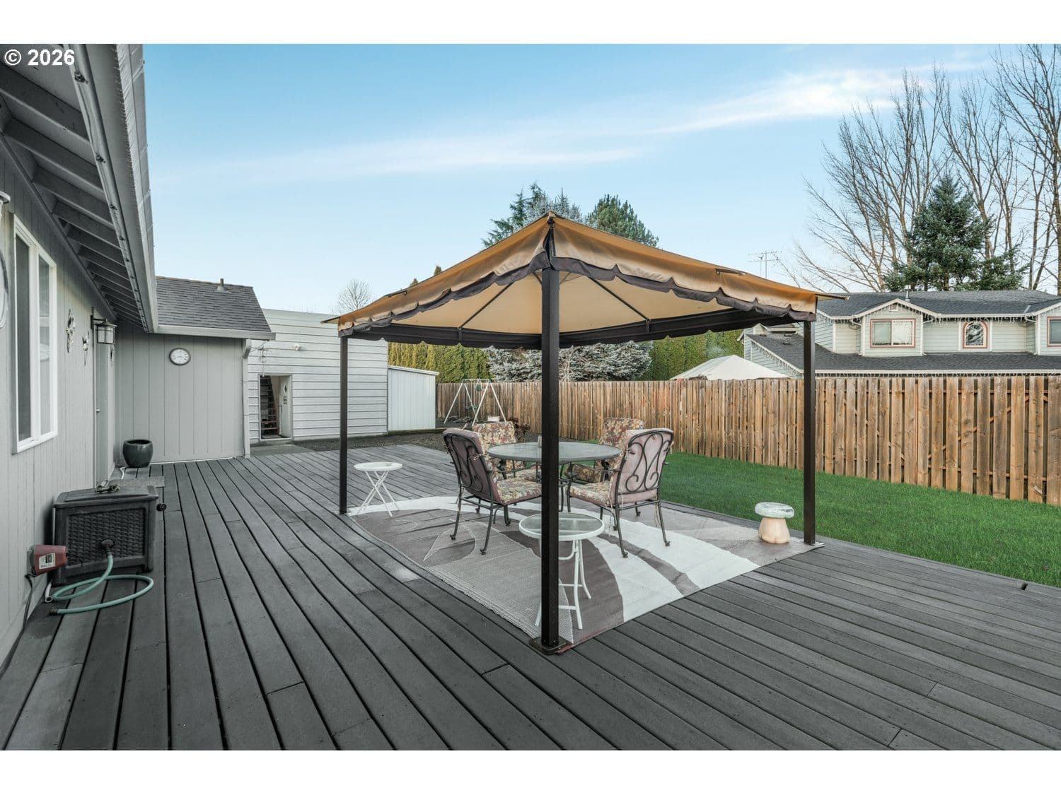 Beautifully maintained and truly move-in ready, this 3-bedroom, 2-bath ranch-style home sits on a spacious .23-acre cul-de-sac lot in the Wallingford Park neighborhood and offers the perfect blend of comfort, functionality, and exceptional shop space! The standout feature is the large detached 19x30 workshop complete with a 13x7 office, storage, room for toys, and generous parking, including space for an RV, trailer, or equipment. Ideal for hobbyists, business owners, or anyone needing serious workspace! Inside, enjoy gorgeous laminate flooring throughout. A bright living room has high ceilings and a cozy propane fireplace and an open-concept family room, dining, and kitchen with vaulted ceilings is perfect for entertaining. The dining area features sliders to the deck, while the kitchen offers beautiful cabinetry and countertops, stainless steel appliances, a walk-in pantry, and an eat bar. Retreat to the spacious primary suite featuring French doors to the deck for morning coffee, a walk-in closet, and a private bath with dual vanities and a walk-in shower. Two additional bedrooms, a full guest bath, and a laundry room with exterior entry that's ideal as a mudroom after working in the shop complete the interior.Outside, enjoy an easy-to-maintain fenced backyard with the large deck and patio that make it perfect for relaxing or hosting gatherings. Conveniently located near shopping, dining, schools, neighborhood parks, and PeaceHealth Medical Center.