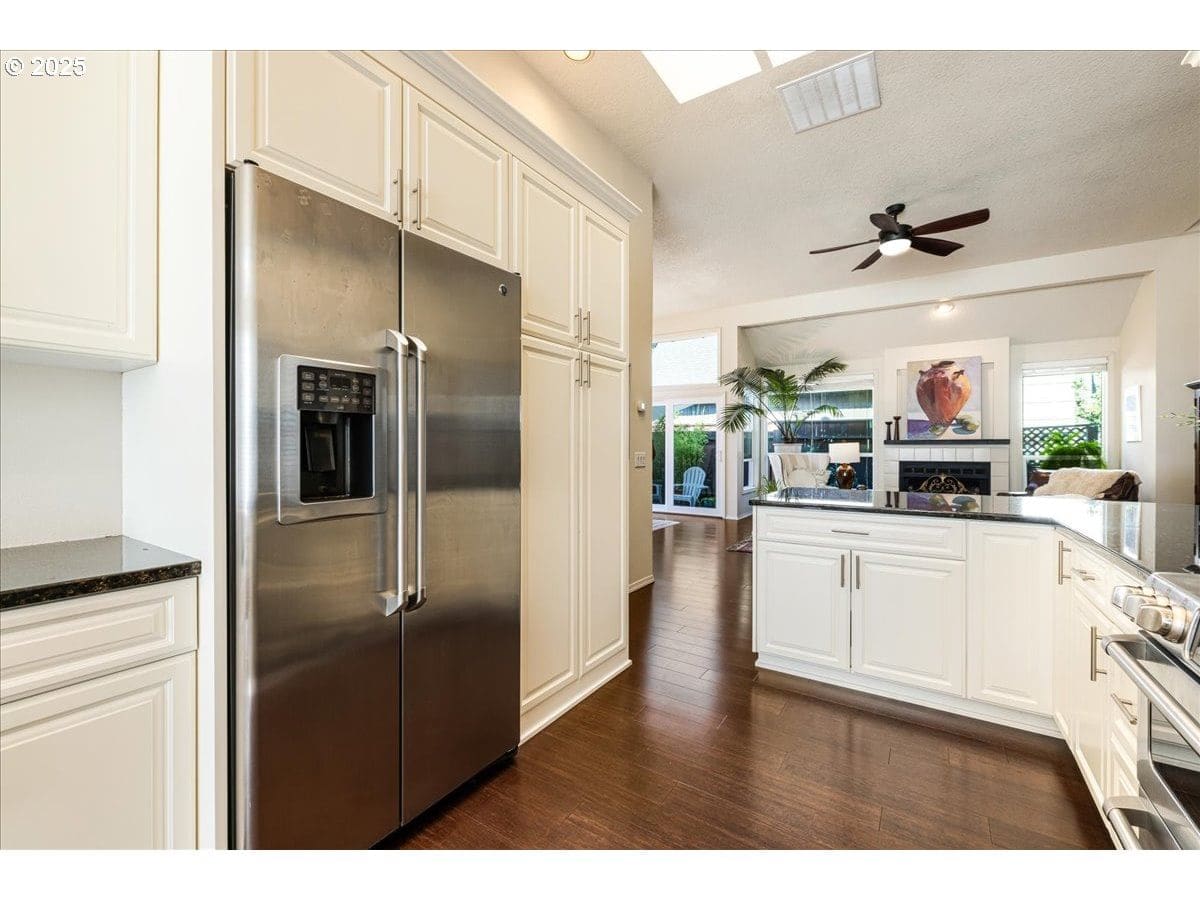Welcome to this beautifully updated 1,615 sqft, 1988-built single-level home located on a coveted corner lot in the friendly Windfield community. This residence combines modern upgrades with fantastic natural light and functionality, offering the perfect blend of comfort, style, and convenience. The home features an open floor plan filled with an abundance of sunlight, thanks to large custom oversized windows and skylights that allow light throughout the year. The kitchen provides high-end stainless steel appliances, a gas range, granite countertops, and a large eat-at peninsula, making it ideal for both everyday living and entertaining. The great room is a bright, airy space with oversized windows and skylights, complemented by a cozy gas fireplace—perfect for relaxing evenings. The primary suite offers a walk-in closet and a relaxing soaking tub, providing an ideal space for unwinding. The third bedroom includes elegant French doors, making it versatile as a bedroom, office, or guest space. Updates throughout the home include bamboo floors, utility sink, attic and crawl space insulation, new siding in 2024, and brand new water heater. The home’s energy-efficient features provide comfort year-round. Step outside to enjoy the professionally landscaped yard, which features a fenced backyard for the 4-legged fam with beautiful perennial gardens. Spacious flagstone courtyard—perfect for outdoor enjoyment. The attached garage offers secure parking and easy access. Located within walking distance to Trader Joe’s, Zupans, and Mercato Grove, with quick access to I-5, 217, and 205, this neighborhood combines convenience with community charm. The home’s corner lot offers additional privacy and outdoor space, making it a perfect place to enjoy the vibrant local scene, outdoor recreation, and a welcoming neighborhood vibe. Don’t miss this exceptional opportunity to own a home in one of Lake Oswego’s most sought-after neighborhoods, offering ample space with all the amenities