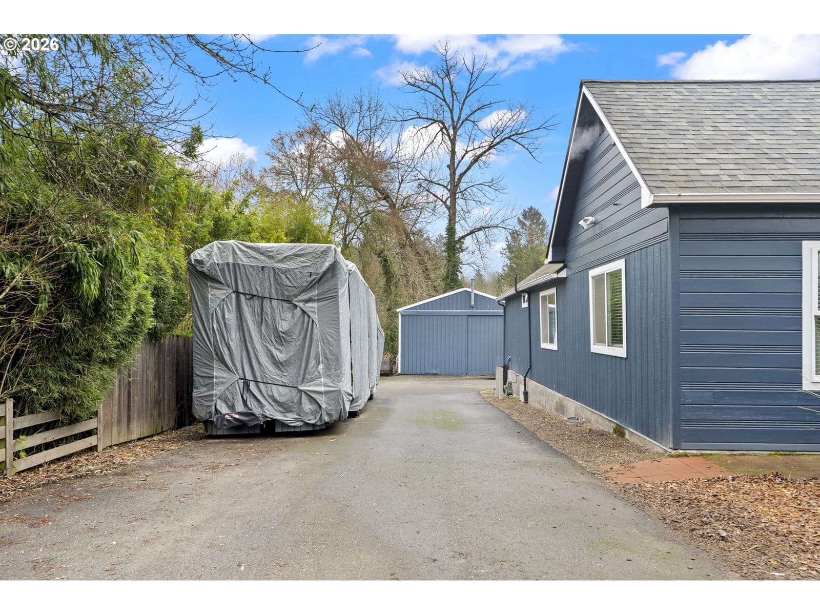 Need a shop with room to spare on a .41-acre lot? This property checks all the boxes. The 24x36 heated shop features an 11x11 door—perfect for boats, RVs, or multiple vehicles—plus concrete floors and a spacious 24x12 loft that works great as an office or storage area. A 20x24 carport extends off the back of the shop, and a separately metered 220-amp electrical service makes this space as functional as it is versatile. Wide open floor plan with 10 foot ceilings. Huge living room open to dining area and kitchen. Updated kitchen with nice cabinets, new frig and portable island. The main level of the home features two bedrooms and a full bathroom, while the upper floor offers an oversized bedroom or office/bonus room with a half bath. Engineered hardwood floors, a dedicated laundry room, and gas forced-air heating. A spacious driveway provides ample parking for multiple vehicles or recreational toys. This charming farmhouse is privately tucked away yet just minutes from Multnomah Village. The roof was replaced in 2017, and the exterior was freshly painted in 2024. An added bonus: Washington County taxes instead of Multnomah County. Also Beaverton schools!