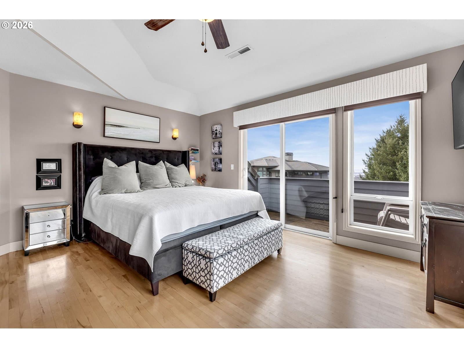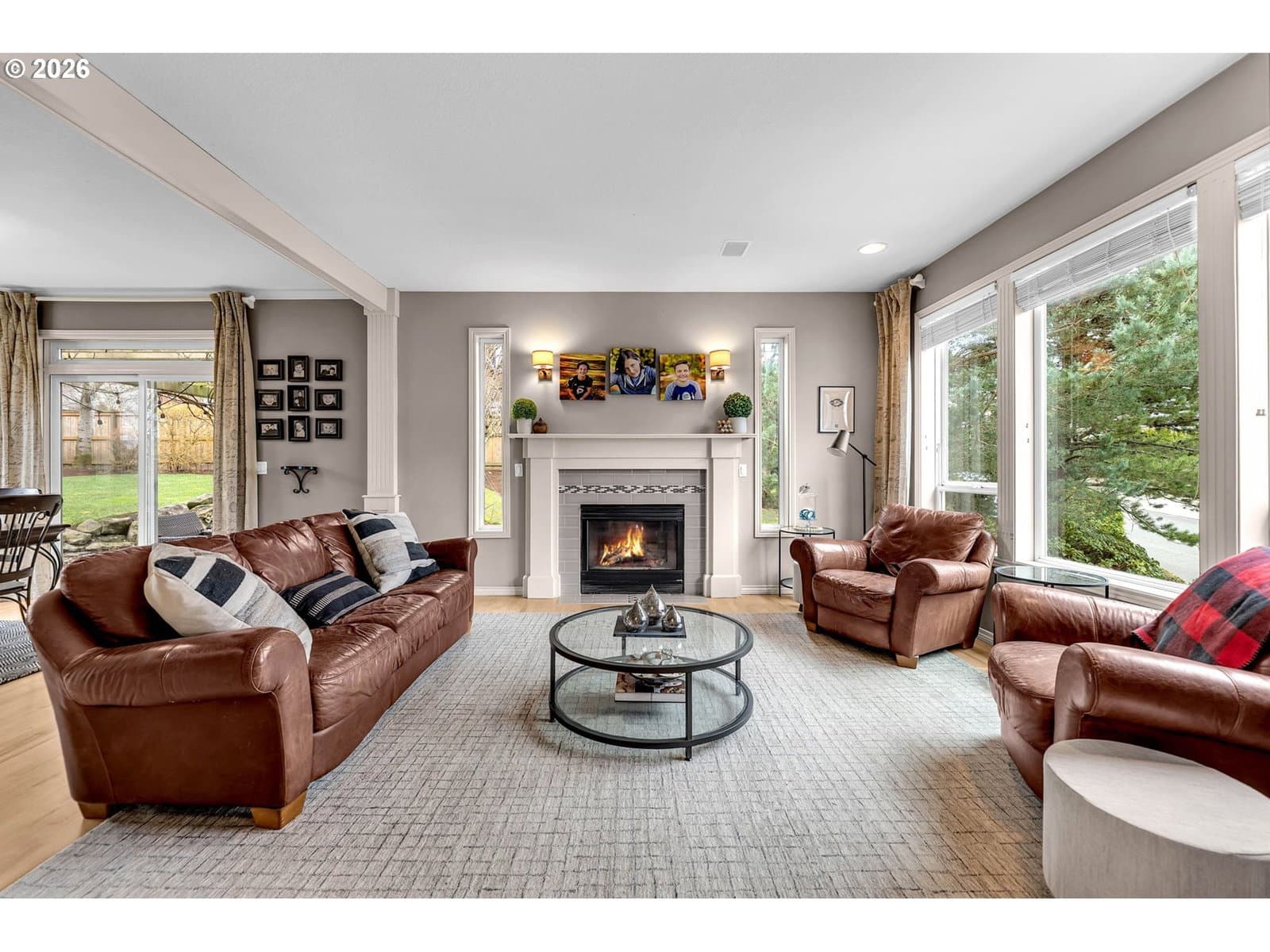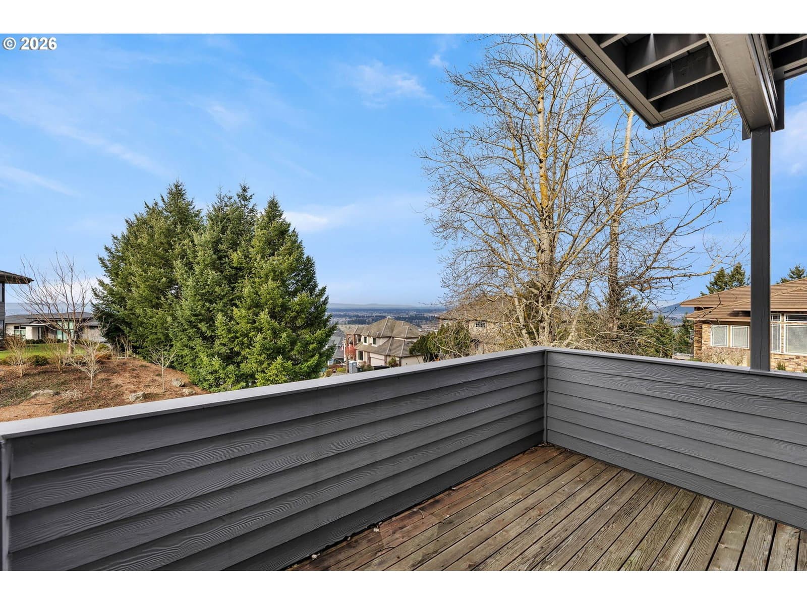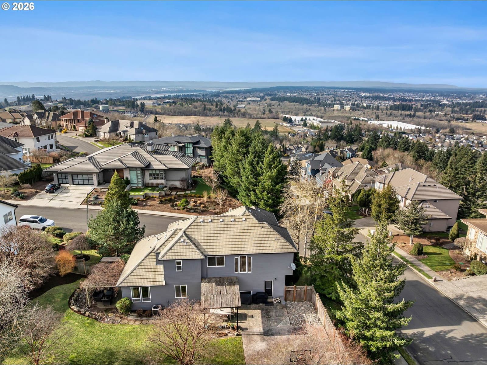 Experience elevated living in this beautifully updated 4-bedroom, 3.1-bath home offering sweeping territorial, city, and river views—all within the highly sought-after Camas School District. With 3,513 square feet of refined living space, this residence blends modern style with exceptional livability. Step inside to find hardwood floors throughout, an updated kitchen with stylish finishes, and refreshed bathrooms that bring a contemporary touch to every level. The main floor features a dedicated office with deck access—perfect for working from home while taking in the expansive views. A spacious media room provides the ideal space for movie nights, gaming, or casual gatherings. The luxurious primary suite is a true retreat, featuring its own private view deck and a stunning picture window framing Mt. St. Helens—an unforgettable backdrop to start and end your day. Three additional bedrooms offer ample space for guests or family. Situated on a generous corner lot, the outdoor living spaces truly shine. Enjoy two large patios, a sprawling yard, and your very own backyard basketball court—ideal for play, entertaining, or simply relaxing in the sunshine. A 3-car garage provides abundant parking and storage. With its blend of modern upgrades, versatile living spaces, premier school district, and breathtaking vistas, this home offers a truly exceptional lifestyle.