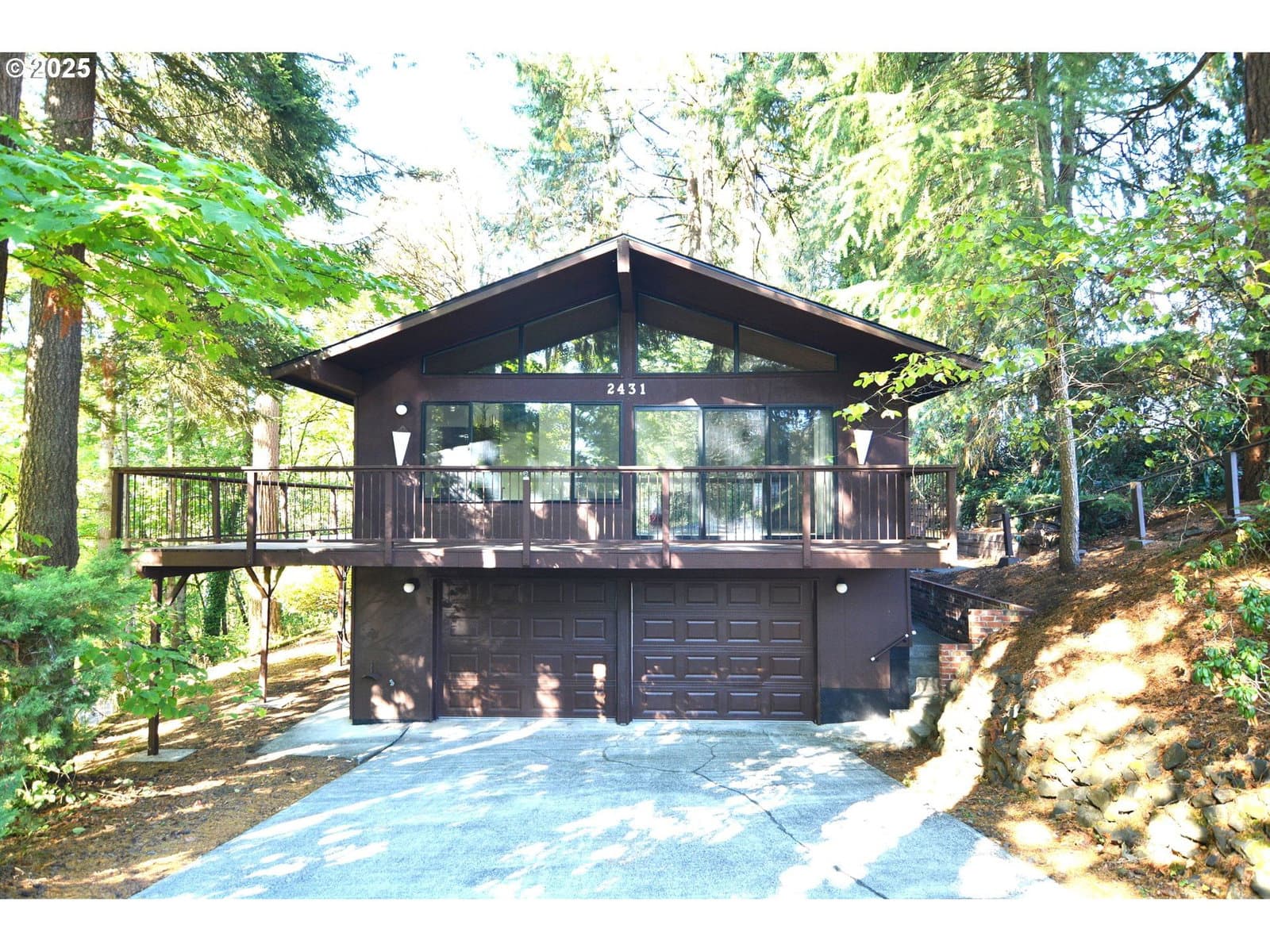 Pristine Northwest Contemporary Home in a Magical Wooded Setting! Beautiful home boasting 2,106 SF, 3 bedrooms, 3 bathrooms, Great Room w/cedar tongue and groove vaulted ceilings-wall of light filled windows, formal living room w/wood FP & sliders to wrap around viewing deck, dining room w/large windows to take in the serene wooded views, kitchen w/vaulted ceiling-LVP flooring-all appliances-slider to side viewing deck, spiral staircase to large lower level family room w/wet bar-wood FP w/insert-slider to lower covered patio & a private wooded sanctuary, spacious laundry room & oversized 594 SF garage. The wooded grounds offer flower beds, ornamental shrubs and an incredible "Sea of Trees" view! The home is located minutes to Longview & Kelso.