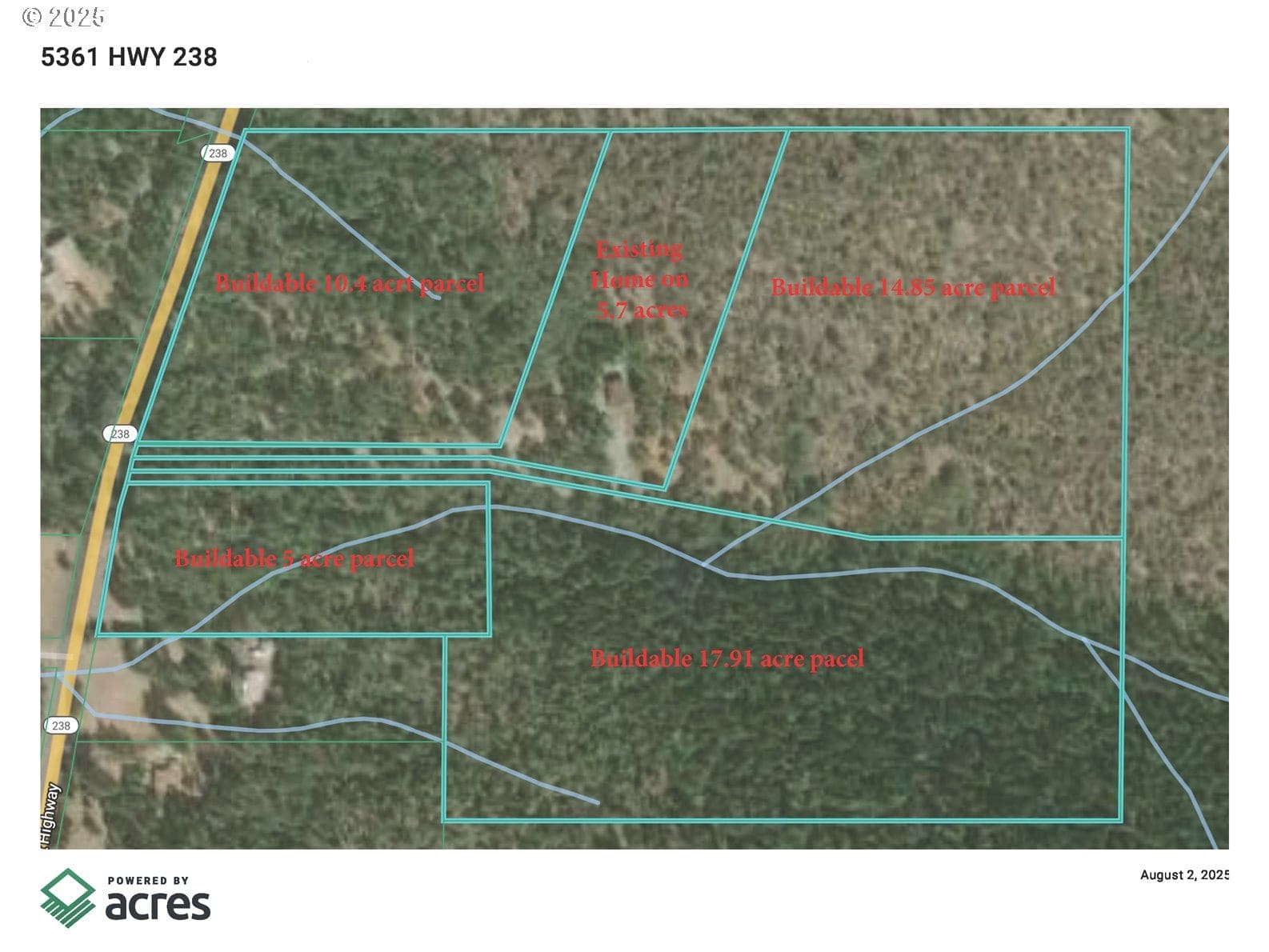 Logtown Option is proud to present a unique and expansive offering: 38.54 acres of pristine, gently sloped land, thoughtfully subdivided into two distinct buildable parcels. (17.91 & 14.85 Acres) each parcel boasts its own deeded access, ensuring privacy and exclusivity. This remarkable property provides an unparalleled opportunity to develop a luxury gated community, all within a short, convenient drive from the charming and historic town of Jacksonville. The main dwelling spans three well-defined levels, offering a generous 2,584 square feet of comfortable and inviting living space. Below the main living areas, a substantial 680-square-foot basement provides ample storage solutions or presents an exciting opportunity for further customization, allowing for an expansion of the home's functional footprint to suit your specific needs. Inside, the layout of the home masterfully strikes a perfect balance between intimacy and spaciousness. 54 Acres option available, see listing 566298699
