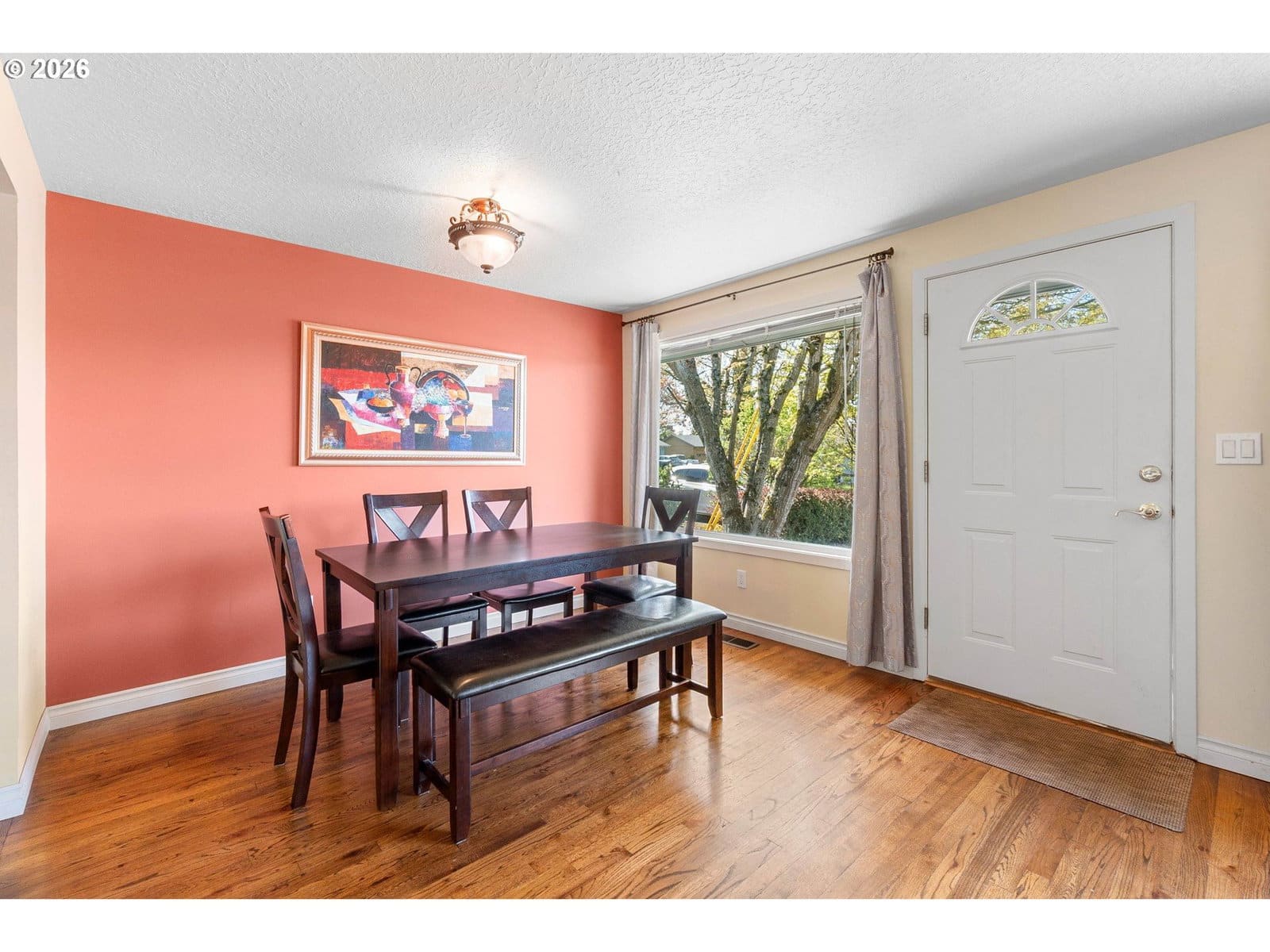 Beautifully updated home located in Woodburn Senior Estates & Country Club, a vibrant 55+ community. The remodeled kitchen features newer cabinetry, quartz countertops, tile backsplash, and stainless steel appliances. A light-filled, spacious living and dining area creates a warm and inviting atmosphere, complemented by hardwood floors throughout.The home offers a primary ensuite along with an additional bedroom. The newly remodeled hallway bathroom includes a new tub with tile surround, updated vanity, and a new window. Additional features include forced air heating and air conditioning for year-round comfort. Enjoy outdoor living on the covered patio, perfect for BBQs and entertaining. Community amenities include an indoor pool, hot tub, fitness center, and an 18-hole golf course. HOA transfer fee of 1.5%.