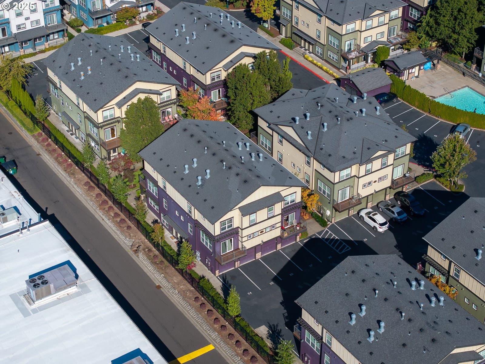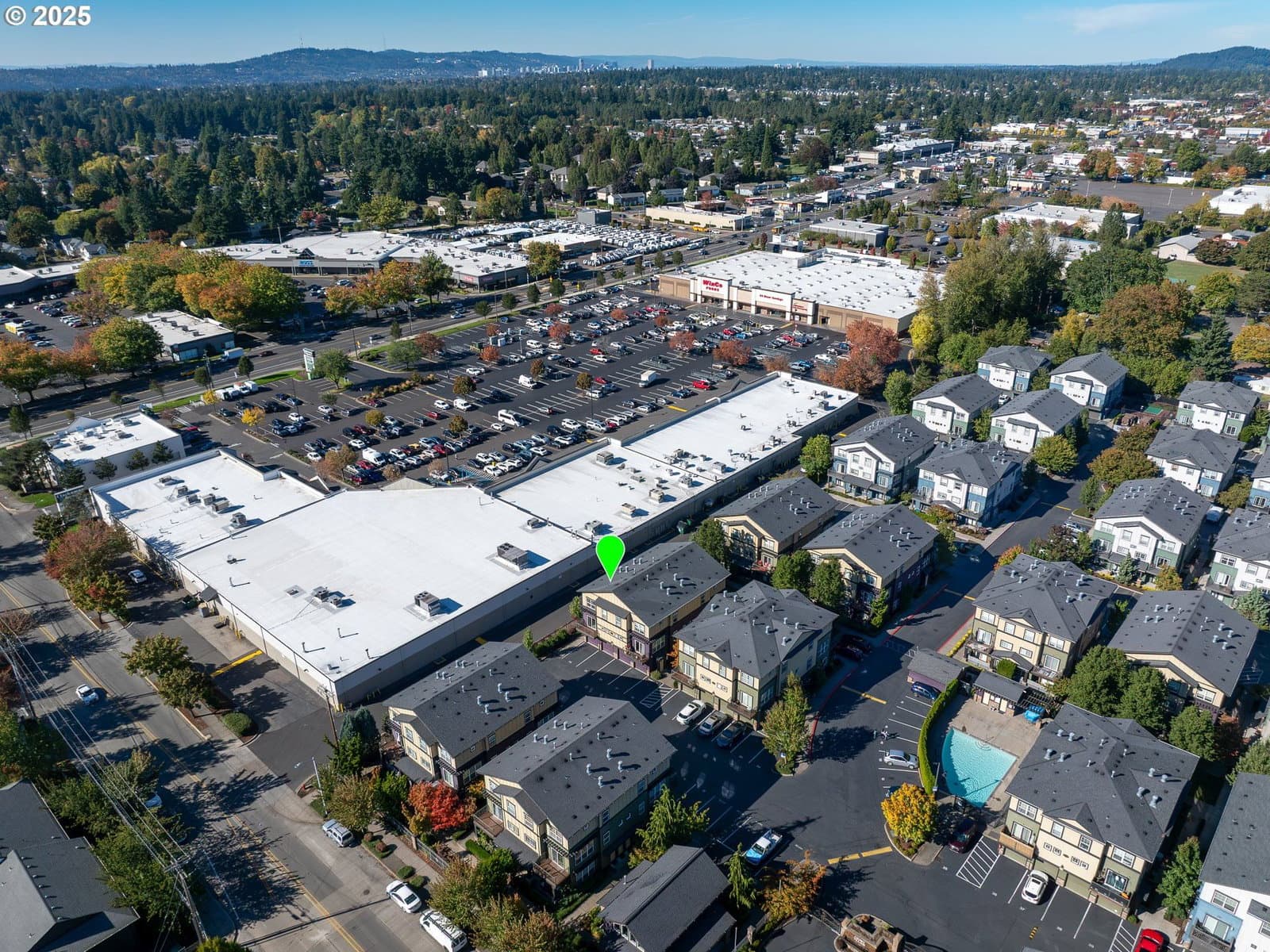 Exceptional corner townhome in the Causey Village Condominiums community with secured gated entry, clubhouse and pool. New interior paint and carpet. Fabulous floor plan with high ceilings and wall of windows. Spacious great room with gas fireplace, light & bright. Dining area with sliding door to the balcony. Kitchen with tile counter-top, built-in microwave and pantry. Dual bedroom suites with vaulted ceilings. Attached garage plus parking space #24. Includes refrigerator and washer/dryer. Convenient to shopping, dining, bus line, light rail, and the Clackamas Town Center. Perfect for homeowners or investors. An affordable and stylish Happy Valley home!