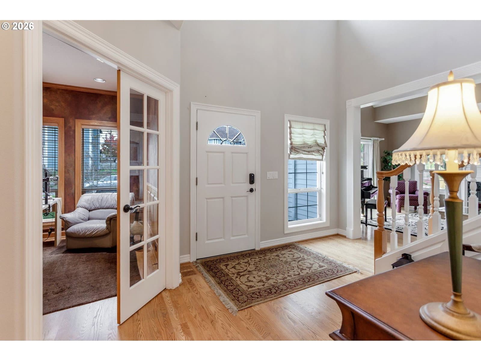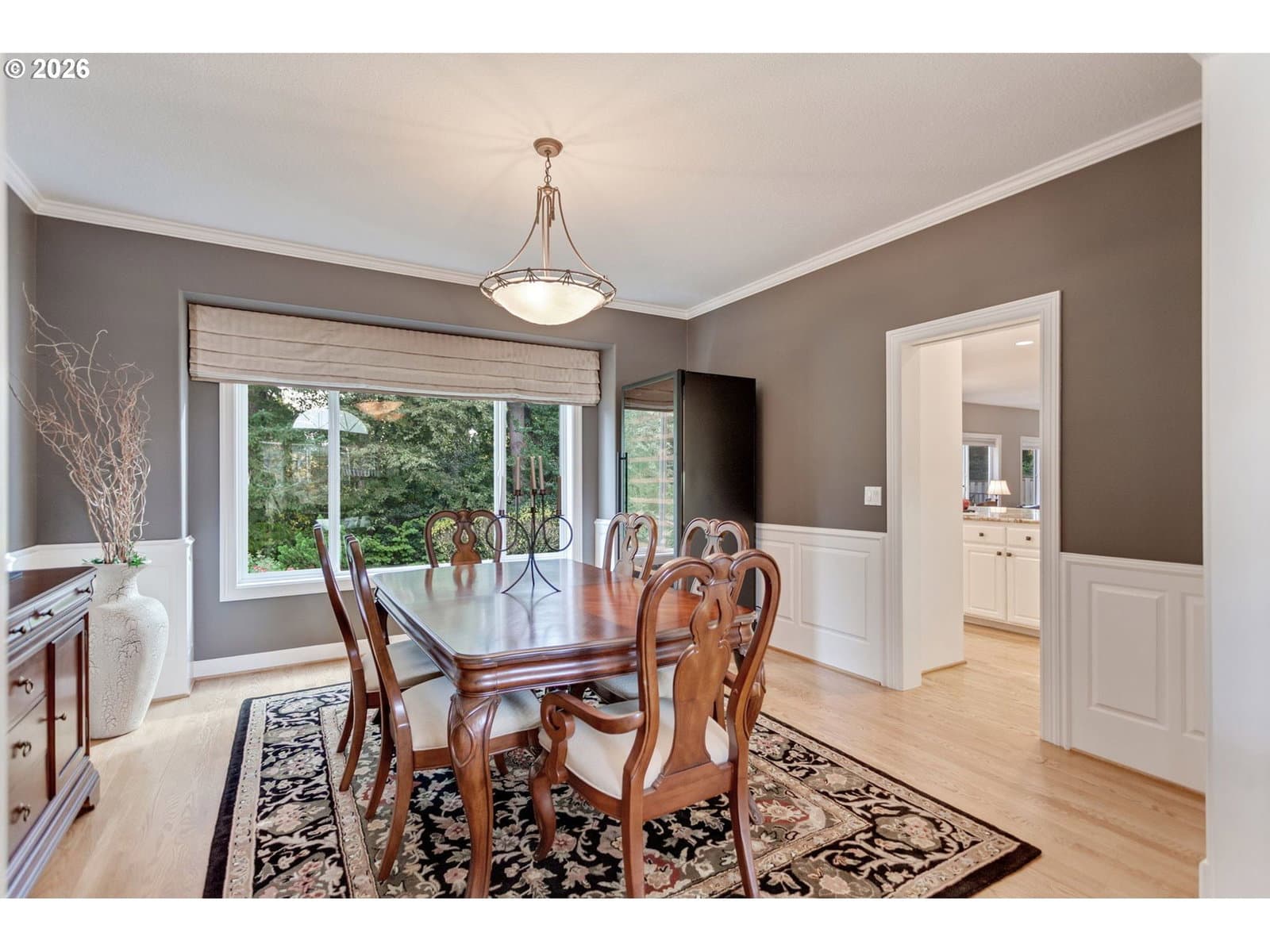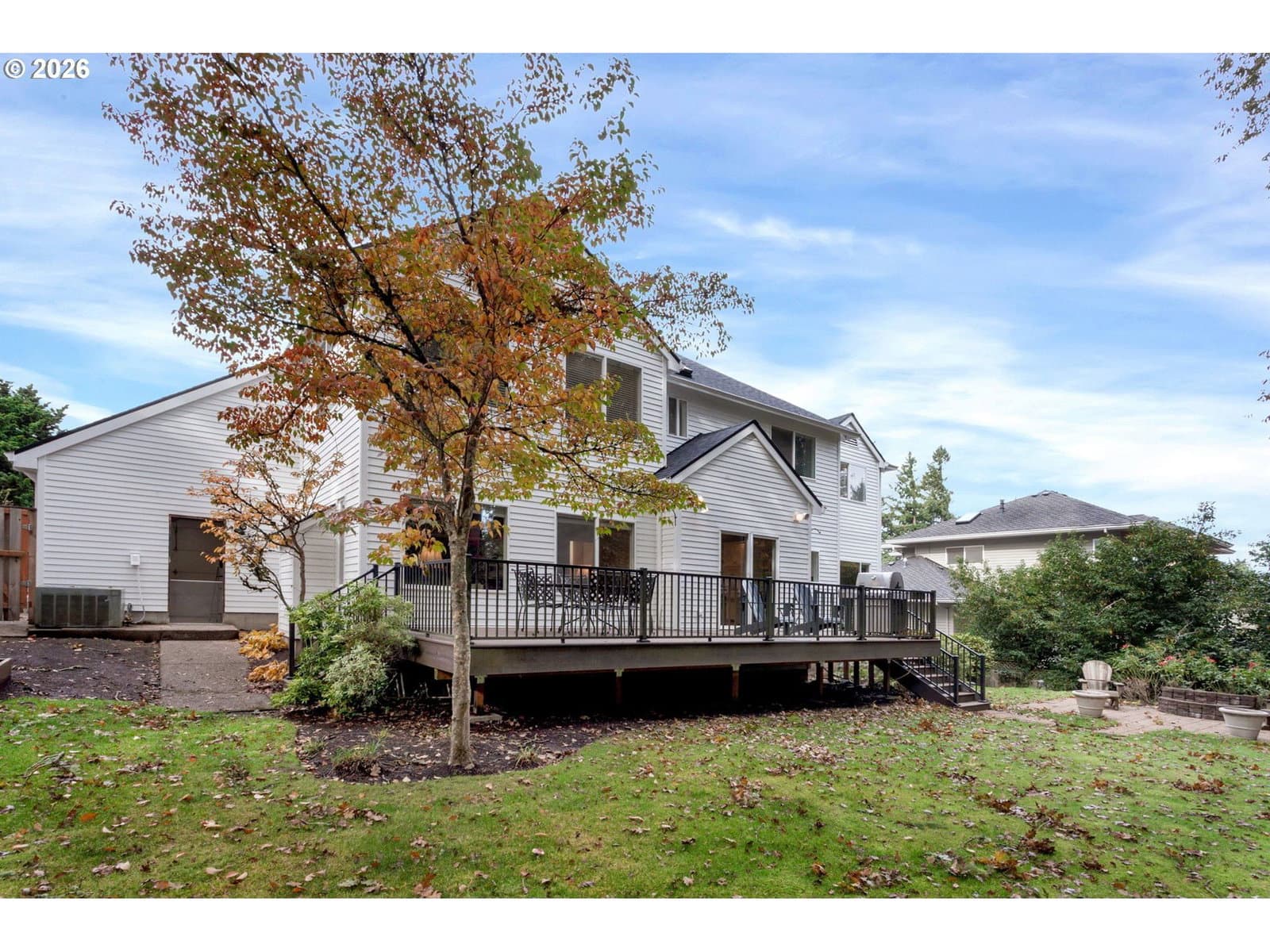 This beautifully maintained home blends refined sophistication with everyday comfort in a highly desirable neighborhood. Hardwood floors extend throughout the main level, complemented by detailed moldings, substantial baseboards, and elegant wainscoting that create a custom-home feel. A gracious entry and spacious formal living and dining rooms provide ideal spaces for entertaining and everyday living, enhanced by quality craftsmanship and built-ins. The kitchen features Décor appliances, gas cooking, under-cabinet lighting, a generous pantry, and convenient desk space. Two upper-level bedrooms also include built-in desks, offering flexible work or study areas. The spacious primary suite serves as a private retreat with an updated ensuite bath featuring heated floors, dual sinks, free standing soaking tub, walk in shower and a skylight, creating a bright, spa-like setting. The upper hall bath offers ensuite access and dual sinks, ideal for family or guests. Recent updates include a new roof, fresh exterior paint, and an updated electrical panel. The oversized three-car garage offers a 240-volt electric car charger. Outdoor living is highlighted by a private, fully fenced backyard featuring a newer Trex deck with dual stair access, gas hookup, firepit, and ample space for entertaining, play, or pets. Excellent curb appeal, privacy, and thoughtful upgrades complete this exceptional home.