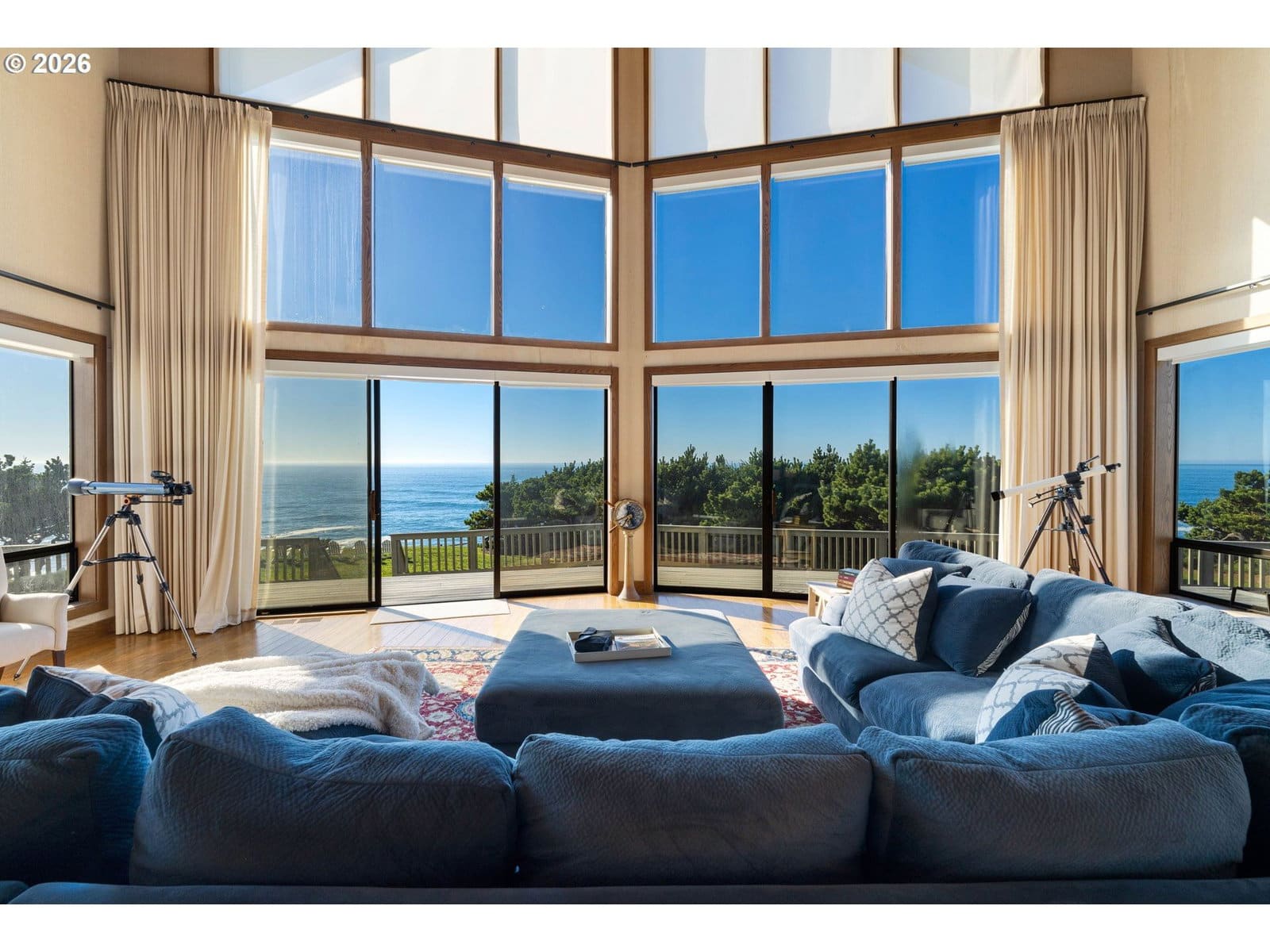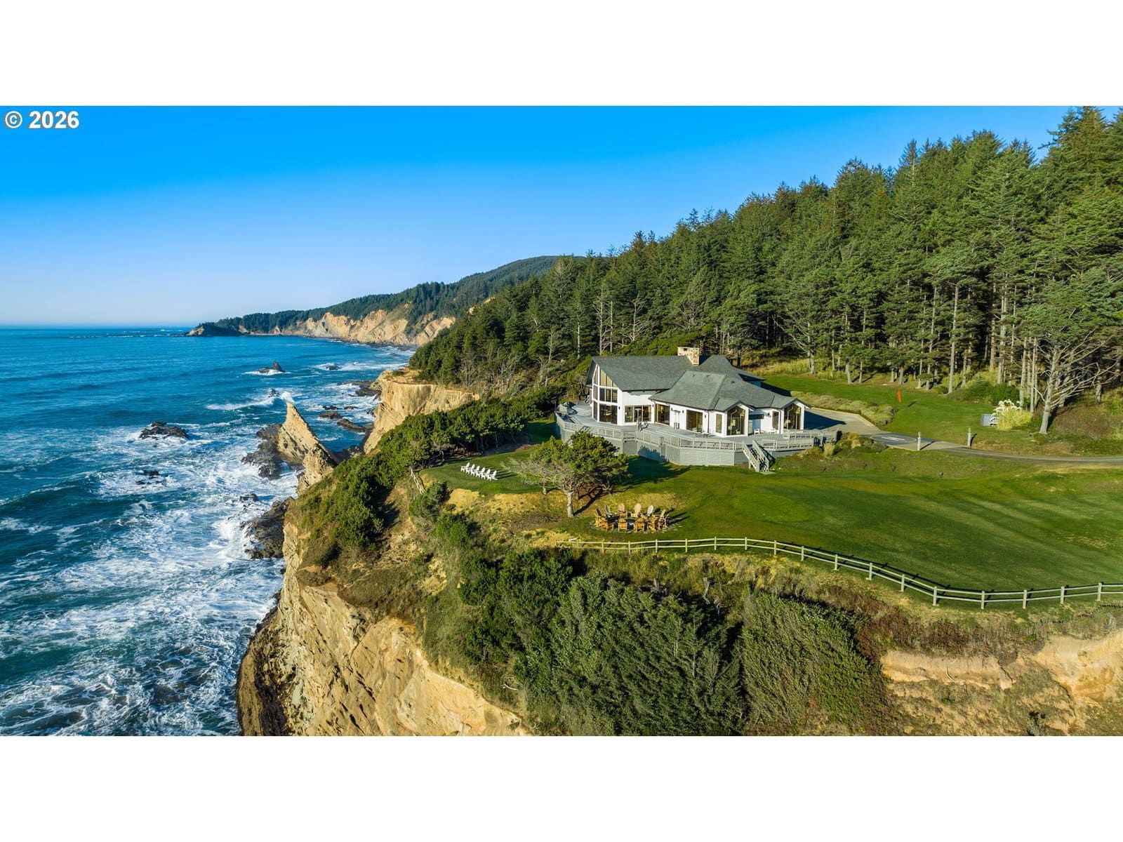 Along the rugged and breathtaking Southern Oregon Coast lies a place few will ever experience—73 acres of private oceanfront where land, sky, and sea converge in extraordinary harmony. SeaWinds Estate offers more than a mile of Pacific Ocean frontage, with dramatic 200-foot cliffs, hidden tide pools, and private access to Sacchi Beach. Here, the rhythm of the ocean and the whisper of coastal forests create an environment that feels both timeless and untouched. Beyond a gated entrance, a winding drive passes through towering pines, lush ferns, and vibrant wildflowers, revealing a stunning custom residence perfectly positioned to embrace the surrounding landscape. Spanning 5,600 square feet, the home is designed to capture light, warmth, and breathtaking ocean views. Four elegant ensuite bedrooms provide comfort and privacy, each offering a front-row seat to the ever-changing Pacific horizon. The heart of the home is a spectacular great room with soaring 30-foot open-beam ceilings and expansive walls of glass, creating a seamless connection between the indoors and the dramatic coastline beyond. Gather with friends and family in the spacious kitchen and dining areas, relax beside the outdoor fire pit overlooking the sea, or explore your own forest trails with the included Gator utility vehicle. Though it feels worlds away, SeaWinds Estate is conveniently located 15 minutes from the iconic Bandon Dunes Golf Resort and 30 minutes from a regional airport with commercial and private FBO service. An on-site helipad ensures seamless access to this remarkable coastal retreat. SeaWinds Estate is a rare legacy opportunity to experience one of the Pacific Northwest’s most extraordinary landscapes from the comfort of your own home.