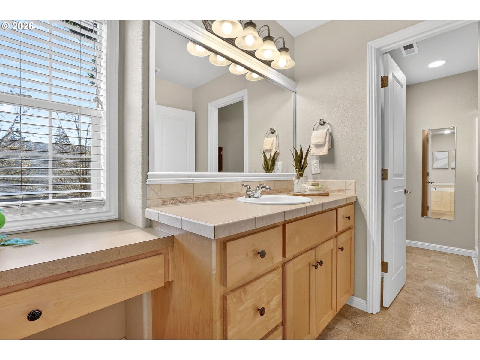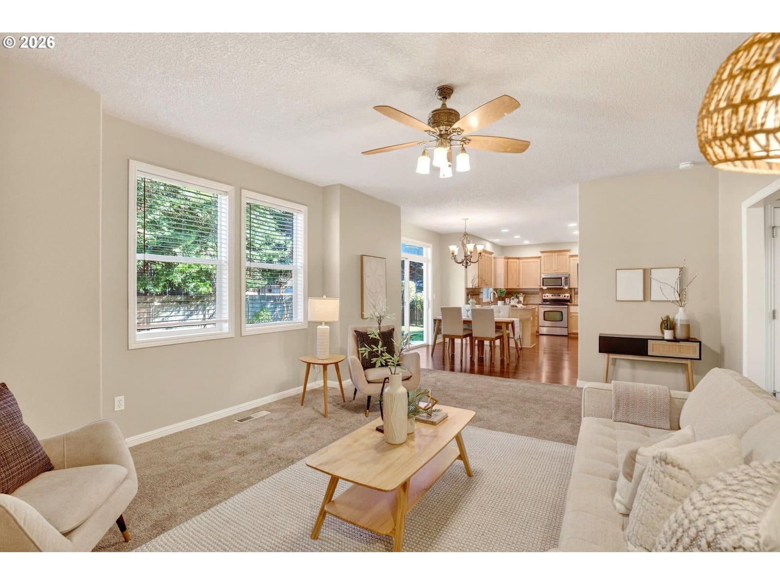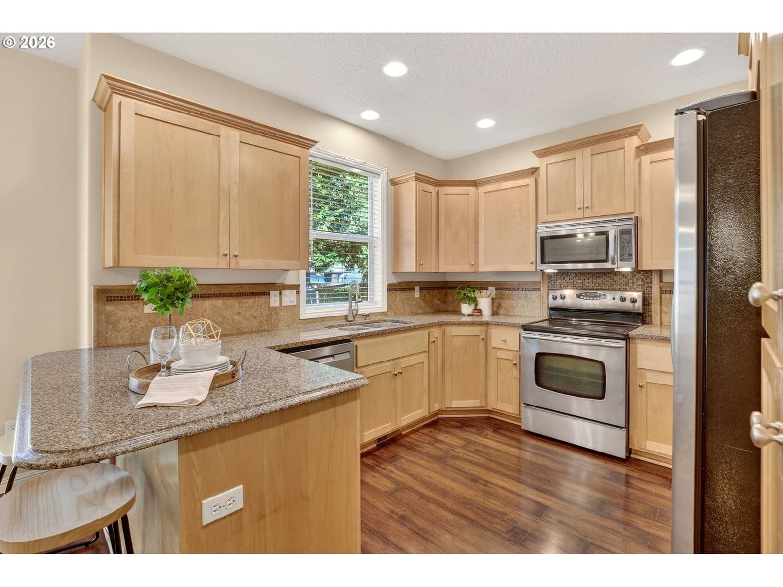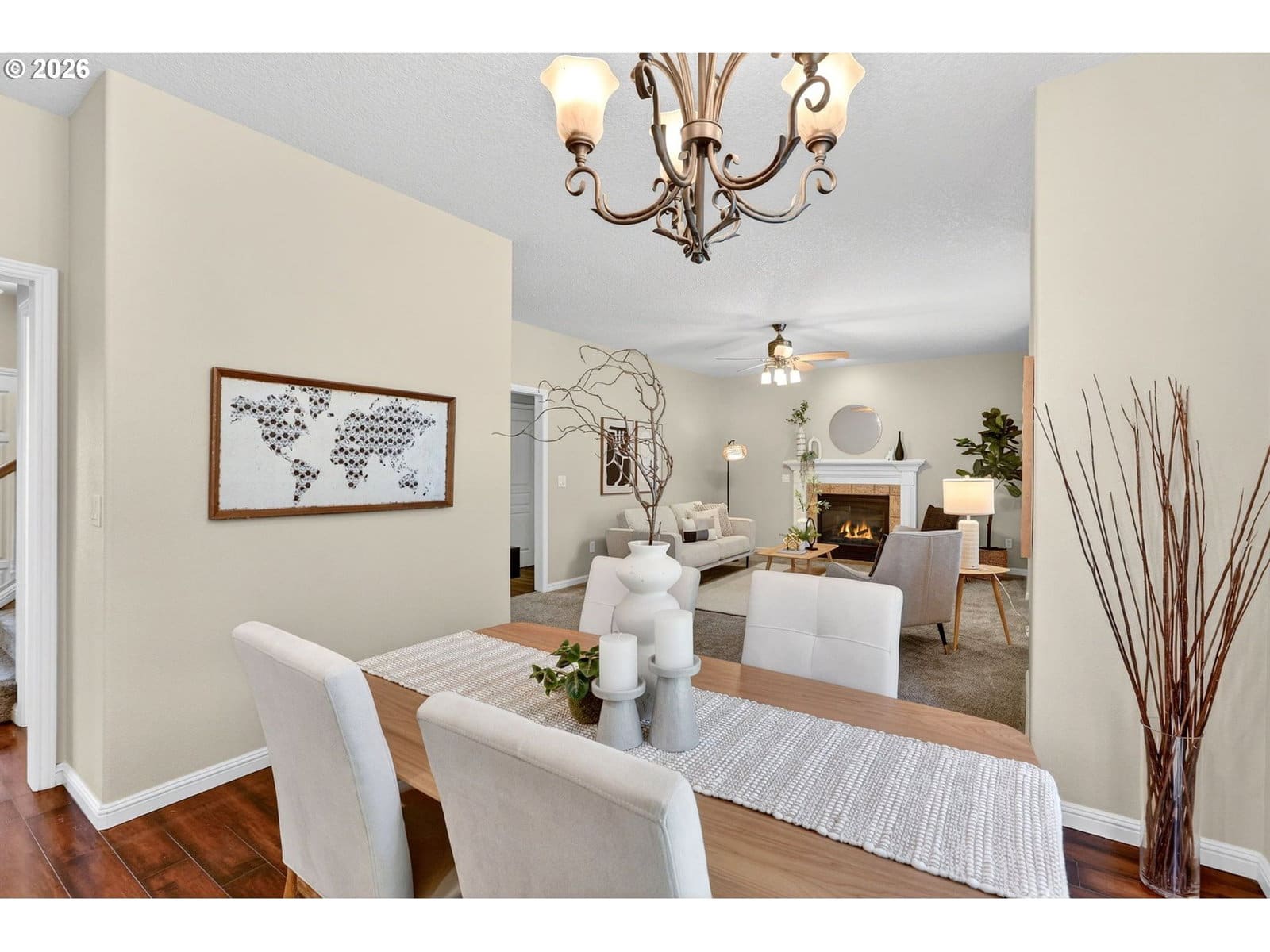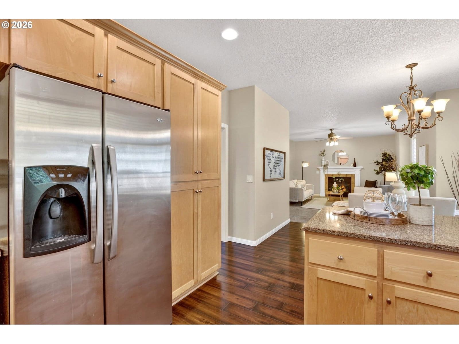 This well-designed 2-story home offers comfortable everyday living with a spacious kitchen featuring granite countertops, stainless steel appliances, and an eating bar that opens seamlessly to the family room and dining area. A cozy fireplace anchors the space, while a sliding door leads to the fully fenced backyard for easy indoor-outdoor living. The generous primary suite includes a private bath with dual vanities, a jetted tub, and a large walk-in closet. Additional highlights include a main-level office, laundry room with utility sink and storage, oversized two-car garage, and ample parking with space for an RV or trailer, plus a side-yard shed. Interior paint and carpet were updated in 2020. Located within Union High School and the new Emerald Elementary boundaries.