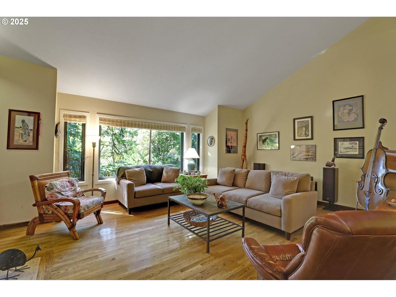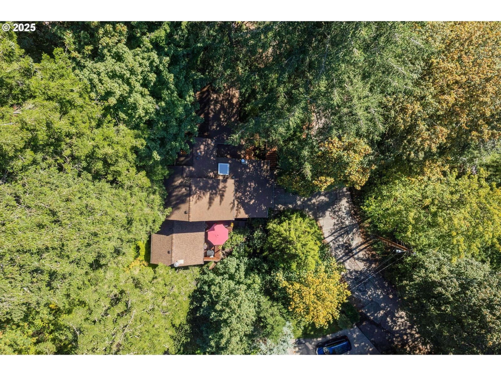 Architect designed NW Contemporary in the heart of the West Hills, perfectly situated between the Hillsdale shopping area, the Farmer's Market, a public library, transit, a short walk to the village, OHSU and the SW Trails. Filled with warm wood accents and soaring ceilings, and with walls of windows that bring the outside in, this home represents everything that the Pacific NW has to offer. The airy and open living and dining space is the heart of the home and has stunning vaulted ceilings, a gas fireplace, and sliding doors out to a sunny deck with forest views. Built to accommodate both elegant and casual entertaining, the kitchen features a Great Room, complete with vaulted ceilings, a wall of glass doors and a wood burning fireplace. The kitchen is a host's delight, with granite countertops, thoughtful storage, copious bamboo cabinets, double ovens, 5 burner gas cooktop and a breakfast bar. The primary suite features stunning South facing views of the forest with 2 walk-in closets, skylights and a special "port window" in the bath. There is a separate entrance to the guest suite, which features vintage cedar paneling in both the bedroom and bathroom. The two-car garage has plenty of space for vehicles and additional storage. [Home Energy Score = 1. HES Report at https://rpt.greenbuildingregistry.com/hes/OR10242008]
