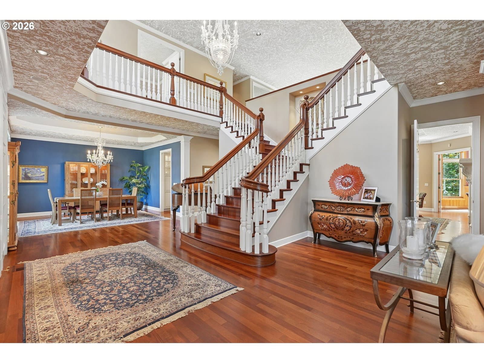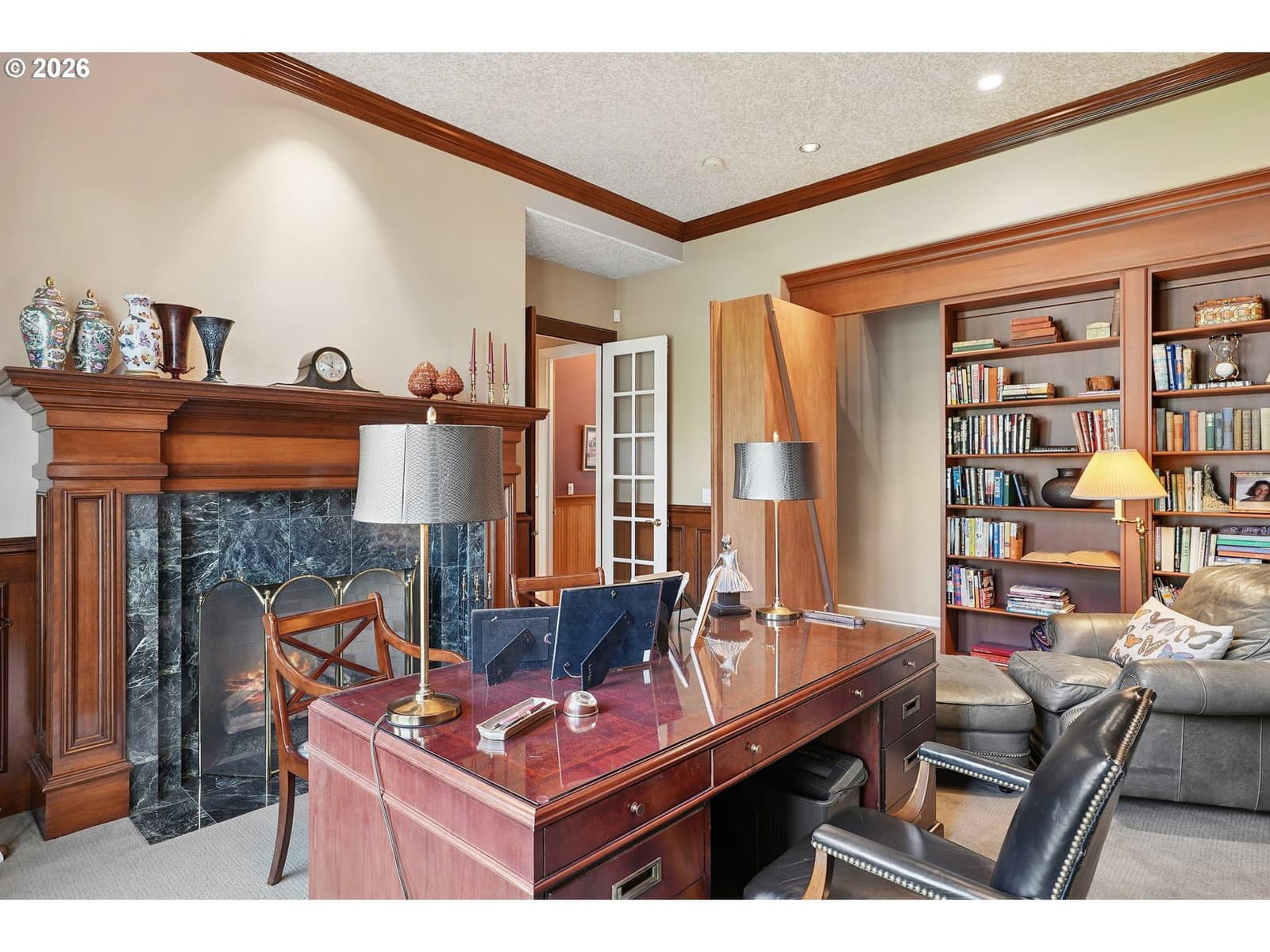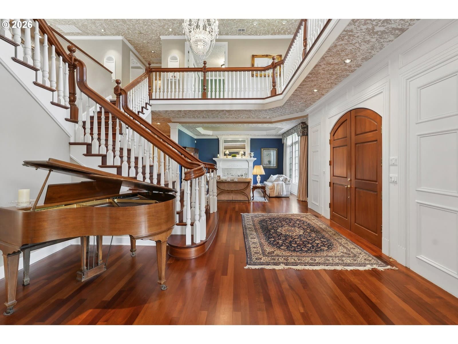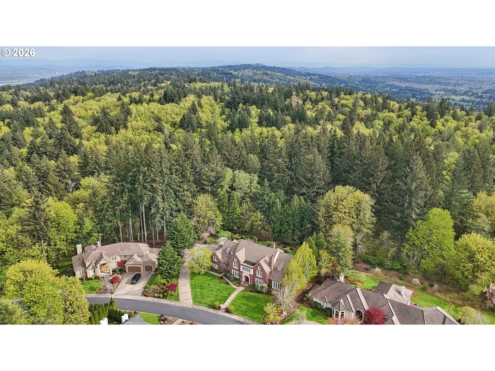 Stately Georgian Estate on a Rare Level Acre in the West HillsNestled on a quiet dead-end street, this extraordinary 7,040-square-foot home was custom built as a featured home in the 1998 Street of Dreams—an unmistakable testament to its craftsmanship and design. Just 20 minutes from the dining and shops of NW 23rd, it offers a rare combination of privacy, prestige, and convenience.From the moment you arrive, the home’s stately presence and timeless symmetry make a lasting impression. Inside, a breathtaking double staircase foyer welcomes you with soaring ceilings, rich woodwork, and impeccable custom millwork that carries throughout the home. Expansive Brazilian cherry hardwood floors, slab stone finishes, and walls of windows flood the interiors with natural light while showcasing serene views of formal gardens and Forest Park. Designed for both grand entertaining and everyday living, the home's upper level features four spacious bedroom suites, each offering comfort and privacy. The primary has a gas fireplace, walk in closet, and large bathroom with a shower and tub. The main level includes a sophisticated office library wrapped in warm wood paneling and built-in shelving, fireplace and a private veranda—plus a hidden staircase that leads directly to the primary suite, adding a unique/functional touch of intrigue.The home is an entertainer’s dream, featuring a temperature-controlled 1,100-bottle wine cellar, a large billiards room w/ wet bar, and a media room with surround sound. Other flexible spaces include a generous bonus room currently used as a sewing studio and a dedicated potting/planting room for gardening enthusiasts.Outdoors, the property truly shines with expansive patio spaces designed for living, all surrounded by a lush, private garden setting that feels worlds away. A massive four-car garage and an abundance of thoughtfully designed storage throughout the home ensure both practicality and ease of living.This is a rare opportunity to [Home Energy Score = 3. HES Report at https://rpt.greenbuildingregistry.com/hes/OR10071625] The HOA's cover maintenance of the post and rail fence on Skyline, power washing of sidewalks, resurfacing of the road when needed, back flow testing on sprinklers, etc.