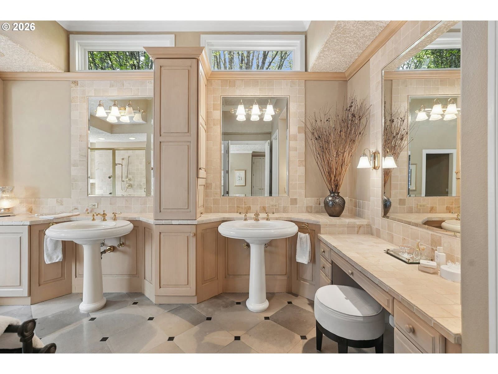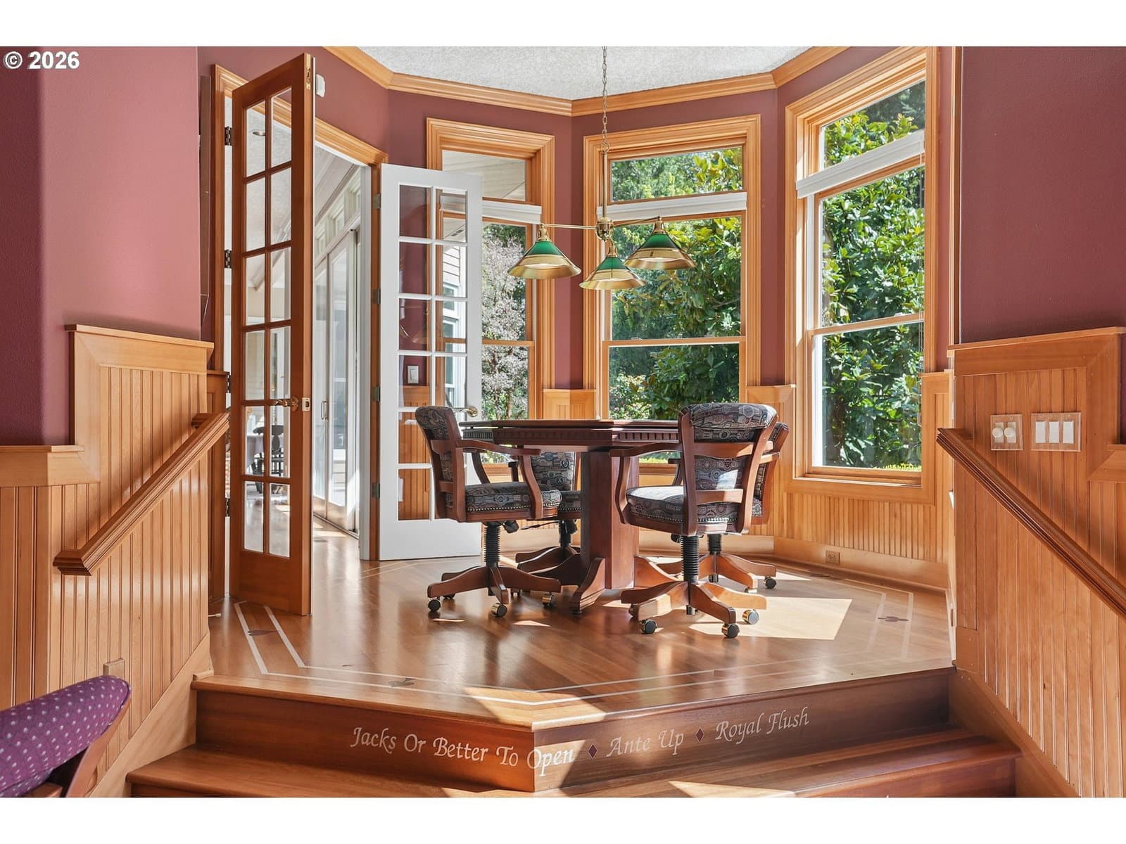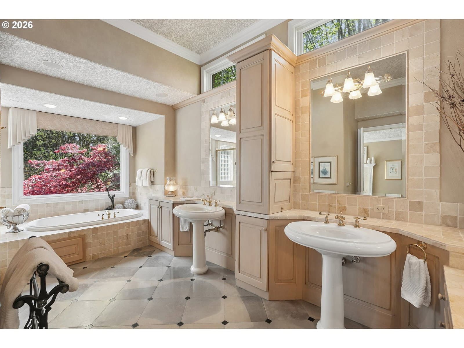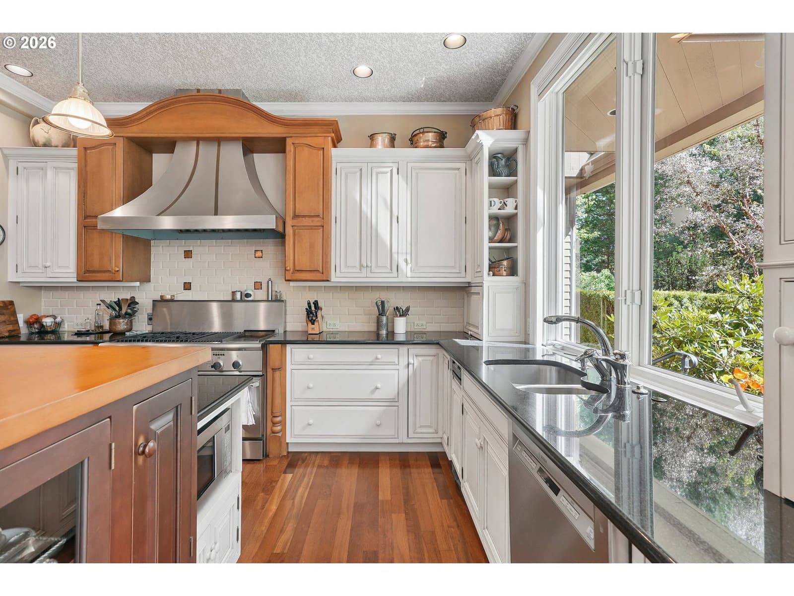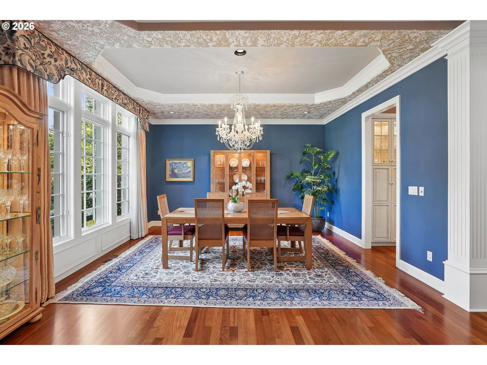 Stately Georgian Estate on a Rare Level Acre in the West HillsNestled on a quiet dead-end street, this extraordinary 7,040-square-foot home was custom built as a featured home in the 1998 Street of Dreams—an unmistakable testament to its craftsmanship and design. Just 20 minutes from the dining and shops of NW 23rd, it offers a rare combination of privacy, prestige, and convenience.From the moment you arrive, the home’s stately presence and timeless symmetry make a lasting impression. Inside, a breathtaking double staircase foyer welcomes you with soaring ceilings, rich woodwork, and impeccable custom millwork that carries throughout the home. Expansive Brazilian cherry hardwood floors, slab stone finishes, and walls of windows flood the interiors with natural light while showcasing serene views of formal gardens and Forest Park. Designed for both grand entertaining and everyday living, the home's upper level features four spacious bedroom suites, each offering comfort and privacy. The primary has a gas fireplace, walk in closet, and large bathroom with a shower and tub. The main level includes a sophisticated office library wrapped in warm wood paneling and built-in shelving, fireplace and a private veranda—plus a hidden staircase that leads directly to the primary suite, adding a unique/functional touch of intrigue.The home is an entertainer’s dream, featuring a temperature-controlled 1,100-bottle wine cellar, a large billiards room w/ wet bar, and a media room with surround sound. Other flexible spaces include a generous bonus room currently used as a sewing studio and a dedicated potting/planting room for gardening enthusiasts.Outdoors, the property truly shines with expansive patio spaces designed for living, all surrounded by a lush, private garden setting that feels worlds away. A massive four-car garage and an abundance of thoughtfully designed storage throughout the home ensure both practicality and ease of living.This is a rare opportunity to [Home Energy Score = 3. HES Report at https://rpt.greenbuildingregistry.com/hes/OR10071625] The HOA's cover maintenance of the post and rail fence on Skyline, power washing of sidewalks, resurfacing of the road when needed, back flow testing on sprinklers, etc.