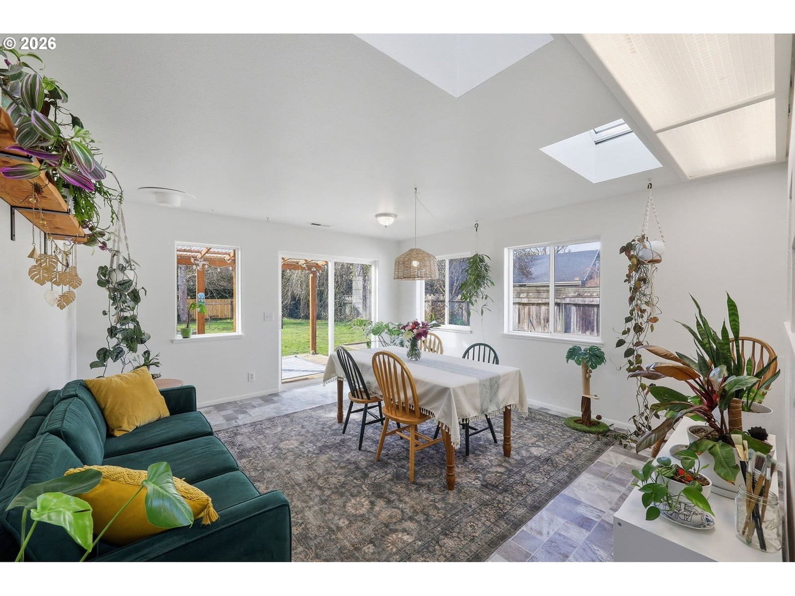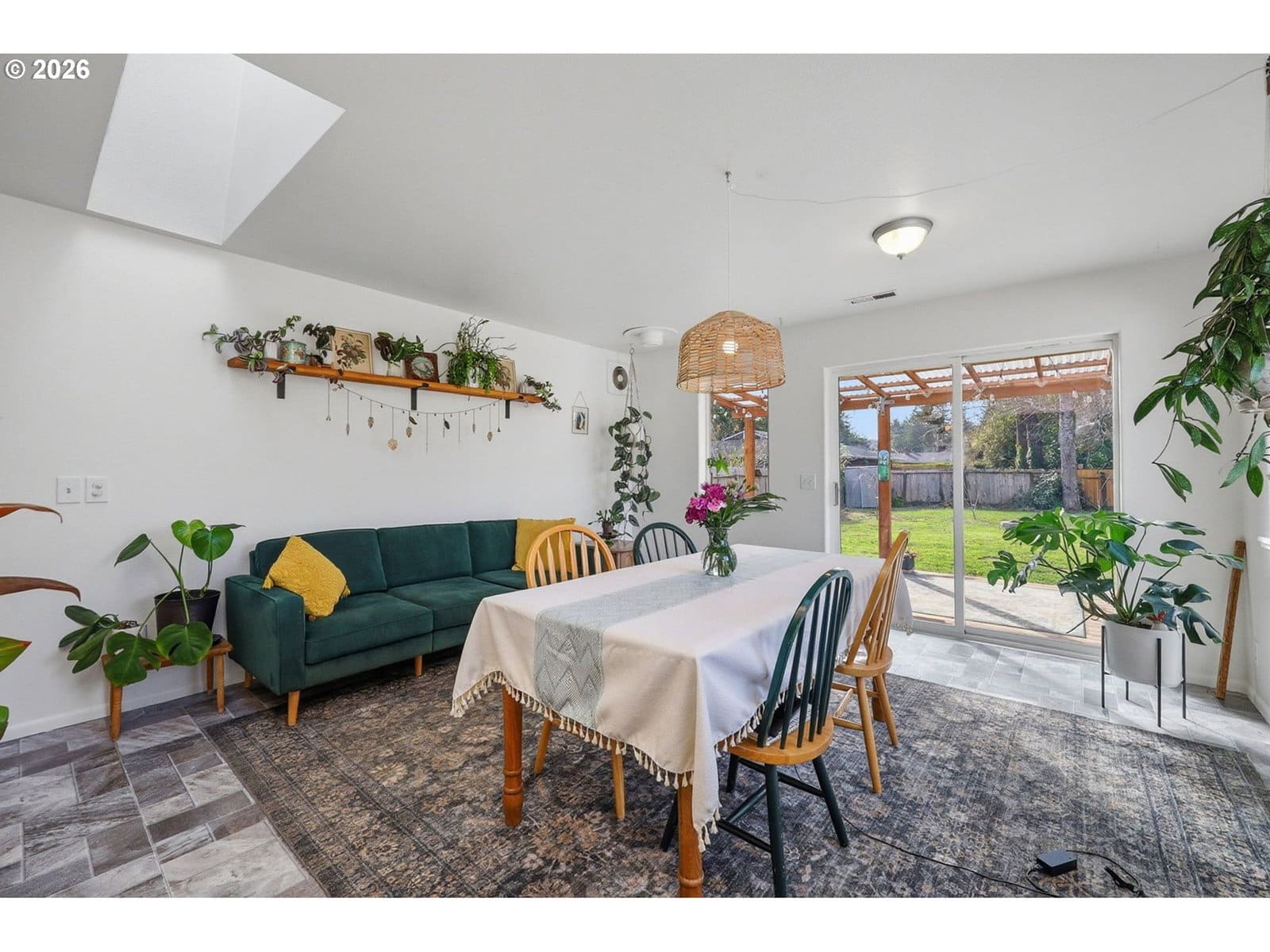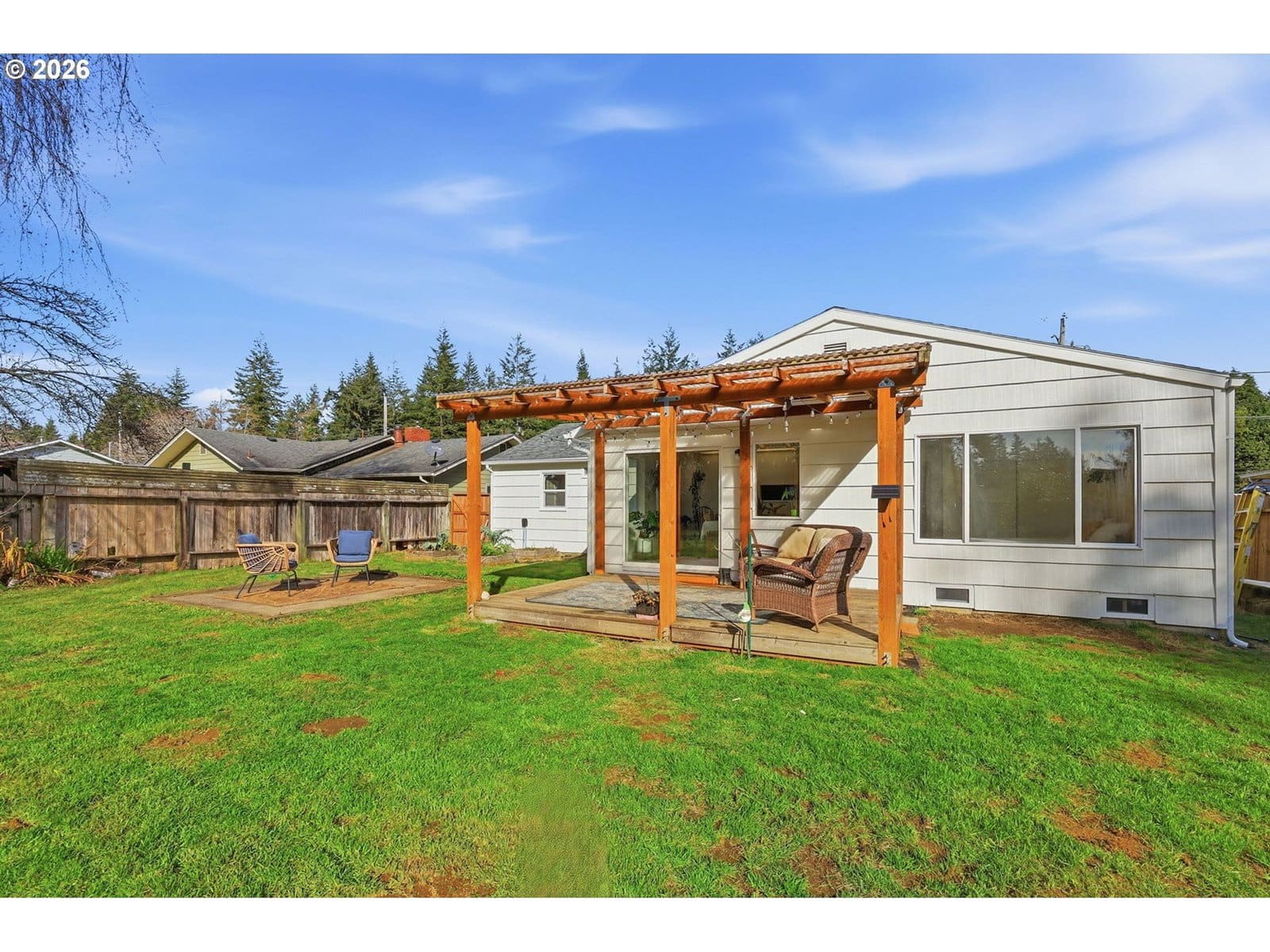 Updated, light-filled and move-in ready—this single-level 4 bedroom, 2 Full bathroom home in Milner’s Crest offers space, privacy and peace of mind in one of Coos Bay’s most convenient locations. The light-filled dining room truly is the heart of the home and offers generous space for everyday living and abundant space for entertaining. Sliding glass doors from the dining room open to a spacious backyard featuring a large covered deck, fire pit and ample room for gardening, play or outdoor gatherings. The well-designed galley kitchen offers abundant counter space and a gas range and was tastefully updated in 2022 with new countertops, tile backsplash, fresh paint and appliances. The primary bedroom easily fits a king-size bed and is thoughtfully positioned away from the additional bedrooms for added privacy. Both bathrooms have been updated with tile flooring, newer vanities and an updated tile shower surround in the hall bath. Major system updates provide peace of mind, including a new roof (2022), new water heater (2023), new furnace (2025) and fresh exterior paint (2025). As an added bonus, the finished garage includes a heat source and functions well as a workshop, hobby space, home gym or flexible bonus area. Well cared for and thoughtfully improved, this home offers peace of mind for years to come!