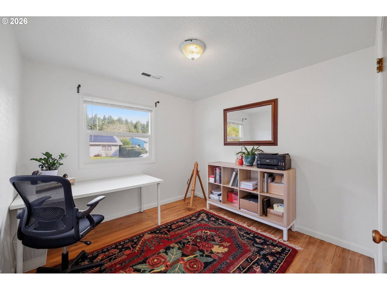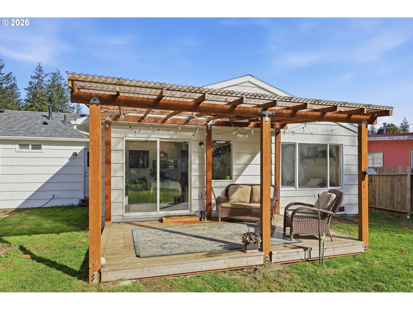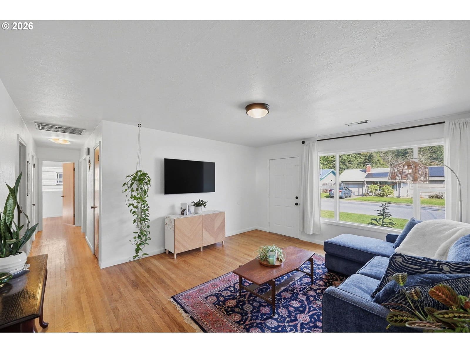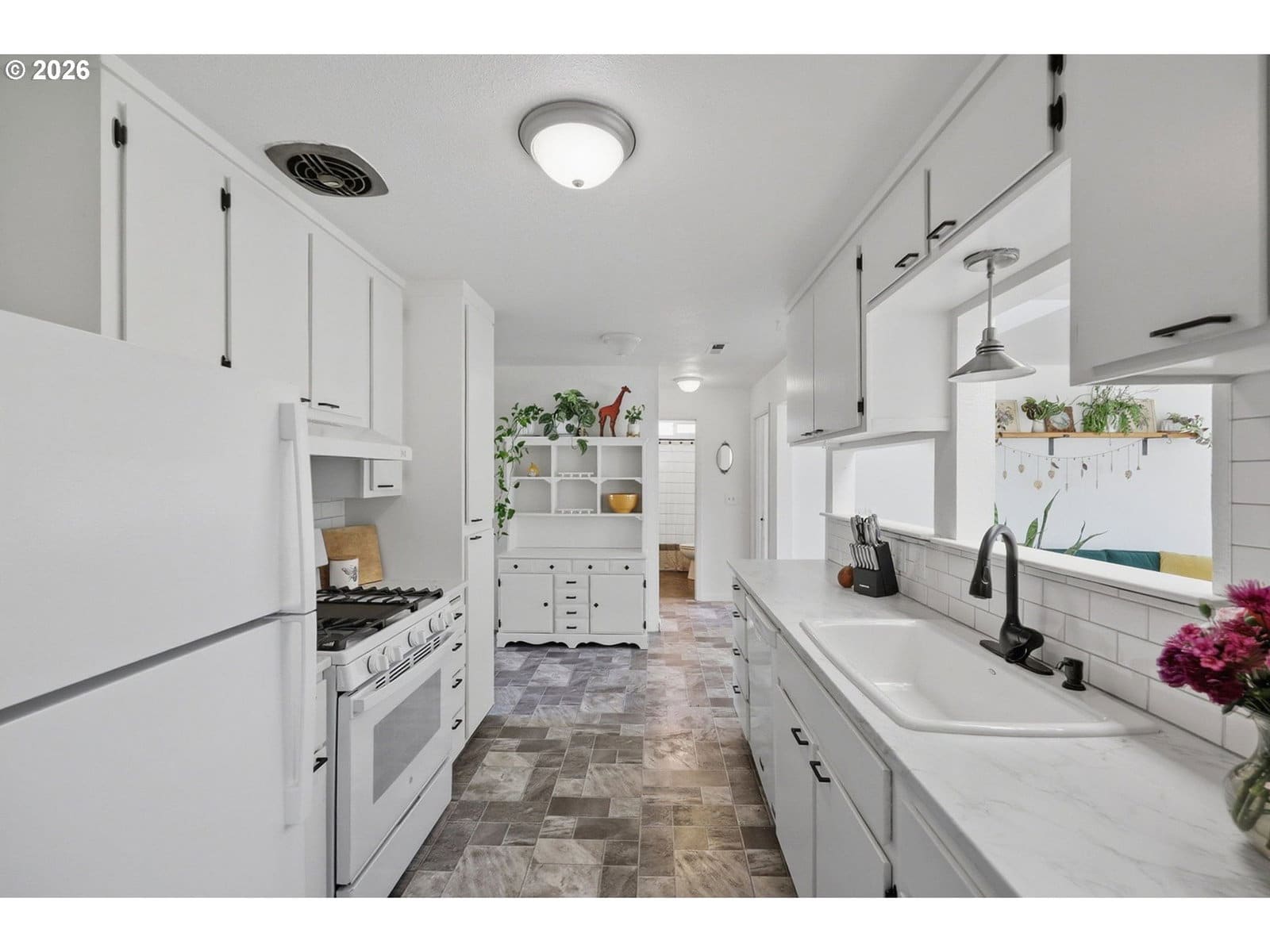 Updated, light-filled and move-in ready—this single-level 4 bedroom, 2 Full bathroom home in Milner’s Crest offers space, privacy and peace of mind in one of Coos Bay’s most convenient locations. The light-filled dining room truly is the heart of the home and offers generous space for everyday living and abundant space for entertaining. Sliding glass doors from the dining room open to a spacious backyard featuring a large covered deck, fire pit and ample room for gardening, play or outdoor gatherings. The well-designed galley kitchen offers abundant counter space and a gas range and was tastefully updated in 2022 with new countertops, tile backsplash, fresh paint and appliances. The primary bedroom easily fits a king-size bed and is thoughtfully positioned away from the additional bedrooms for added privacy. Both bathrooms have been updated with tile flooring, newer vanities and an updated tile shower surround in the hall bath. Major system updates provide peace of mind, including a new roof (2022), new water heater (2023), new furnace (2025) and fresh exterior paint (2025). As an added bonus, the finished garage includes a heat source and functions well as a workshop, hobby space, home gym or flexible bonus area. Well cared for and thoughtfully improved, this home offers peace of mind for years to come!