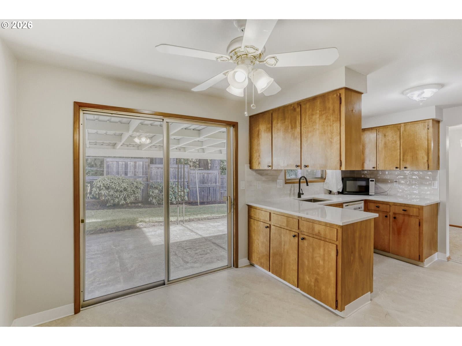 Newly updated one level Mid-Century home ready to move in! Views of wooded area from behind for pricacy! New quartz kitchen counter tops with full subway tile backsplash, and new Luxury vinyl plank floors. Great nook area off the kitchen with sliding glass door leading a 12x19 covered patio! Huge living room with new carpet and has cozy brick fireplace with gas insert that's tempature controlled by remote and has battery back up so it will provide radiant heat during power outage. Mini split Heatpump. Formal dining room. All 3 bedrooms have newly re-finished hardwood floors. Primary suite has a bathroom with walk-in shower. Laundry room with deep sink, Washer & Dryer included. Nice size finished and heated garage! Sprinkler system. Level lot over 10,000 SF with garden areas and mature landscaping. 2 story outbuilding that is 12x9 on each level with additional attached covered storage area. Long paved parking area for smaller RV's, toys or additional veihcles! You will love it! Click on the 3D tour! Please do not park on paved roadway :-)
