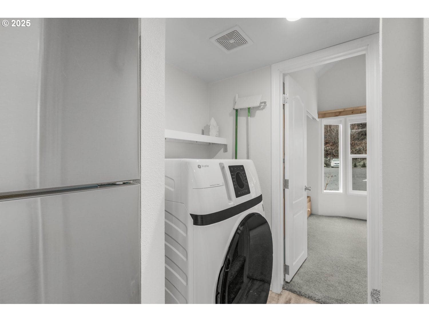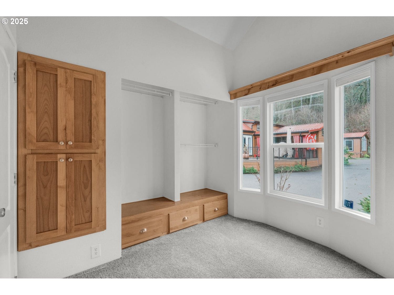 Beautifully maintained 1-bedroom, 1-bath Tiny Home on larger end lot in the tranquil, gated Hope Valley Resort community! Designed for easy living and minimal maintenance, this creek side home offers a peaceful, resort-style lifestyle where less upkeep means more time to relax and enjoy your surroundings. While the home may be tiny, the community and amenities are anything but! Enjoy stunning views of rolling hills and surrounding forest from your covered deck, perfect for morning coffee or evening unwinding. Inside, the home features beautiful flooring throughout, vaulted ceilings, a cozy main-level bedroom, kitchen with fridge, range, microwave and portable dishwasher, dedicated laundry space with 2-in-1 washer/dryer, and an 18x28 upstairs loft ideal for guests, a home office, or flex space. An 11x7 insulated storage shed provides room for your extra belongings. There's plenty of parking for guests. Hope Valley Resorts offers exceptional amenities including a swimming pool, private catch-and-release fishing lake, clubhouse, lodge, fitness center, basketball courts, tennis and pickleball courts, walking trails, community garden, dog park, storage units, and more, all in a serene, natural setting. Ideally located just one mile from Willamette Valley Vineyards and only a 5-minute drive to South Salem dining and shopping, this location truly can’t be beat. Home has new paint, new leaf guard gutters for added peace of mind. Updates include updated bathroom, blinds, carpet in 2025 and new countertops and mini-split in 2024. $992 park rent includes all park amenities plus water, sewer, garbage, and yard debris, making this an effortless, lock-and-leave lifestyle in a beautiful resort-like community. *Sellers are offering seller finance at 4.5% interest -