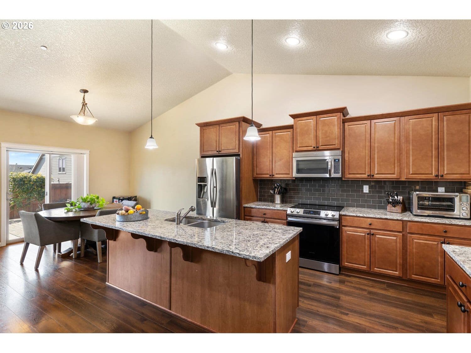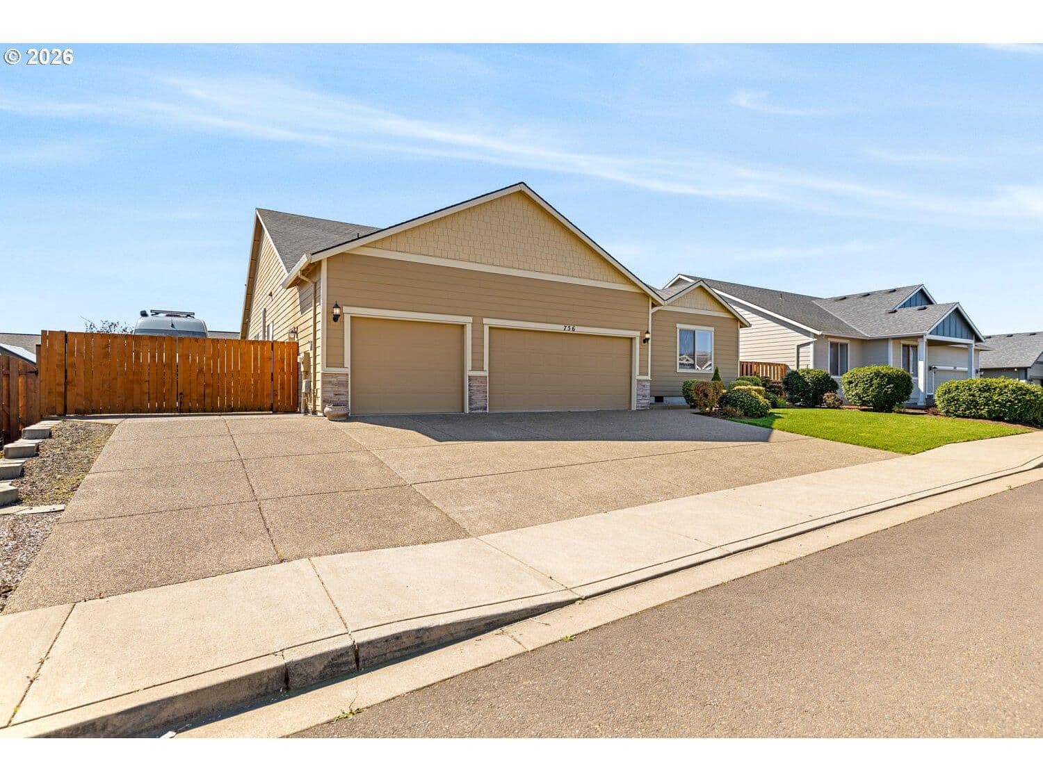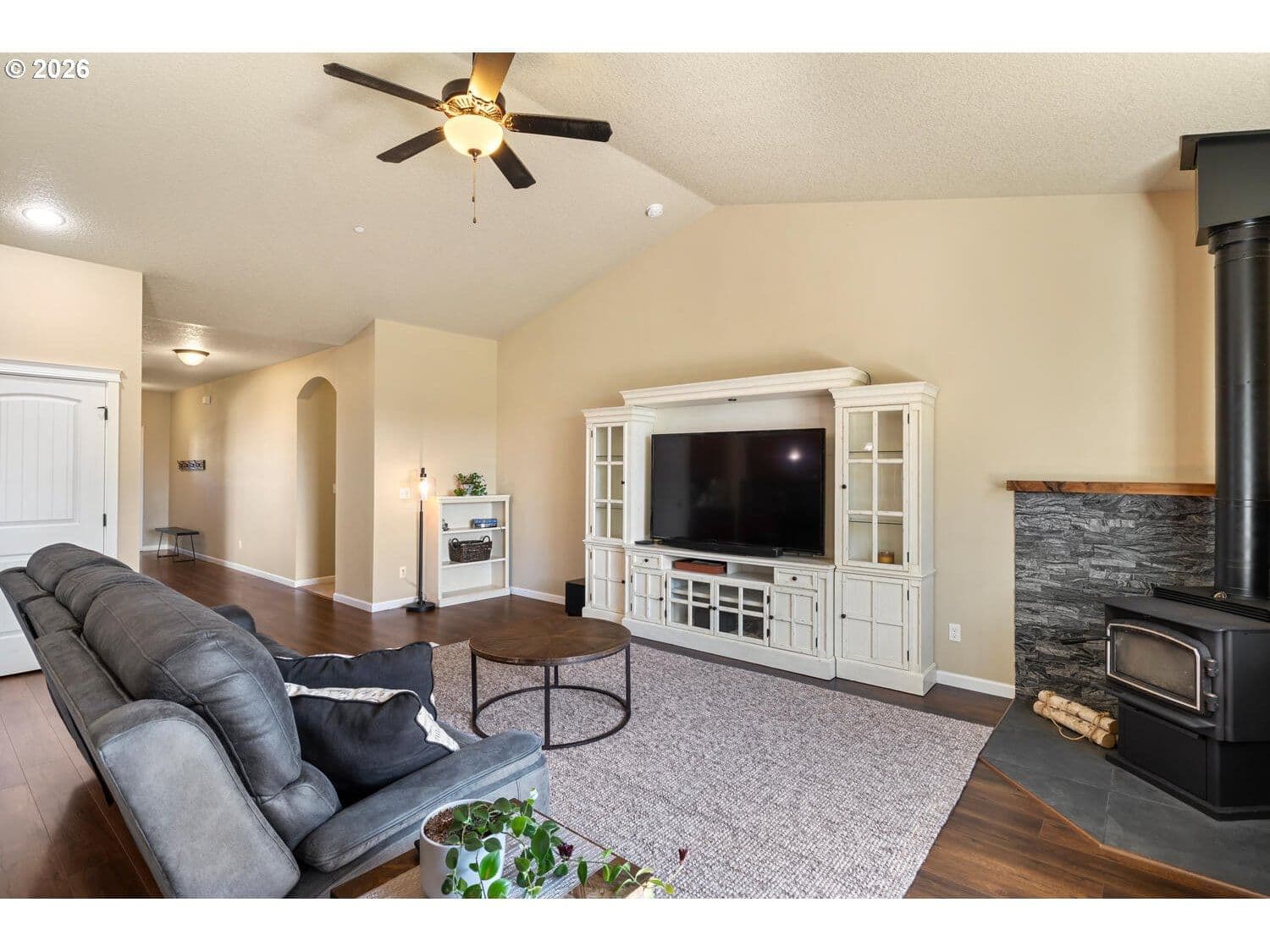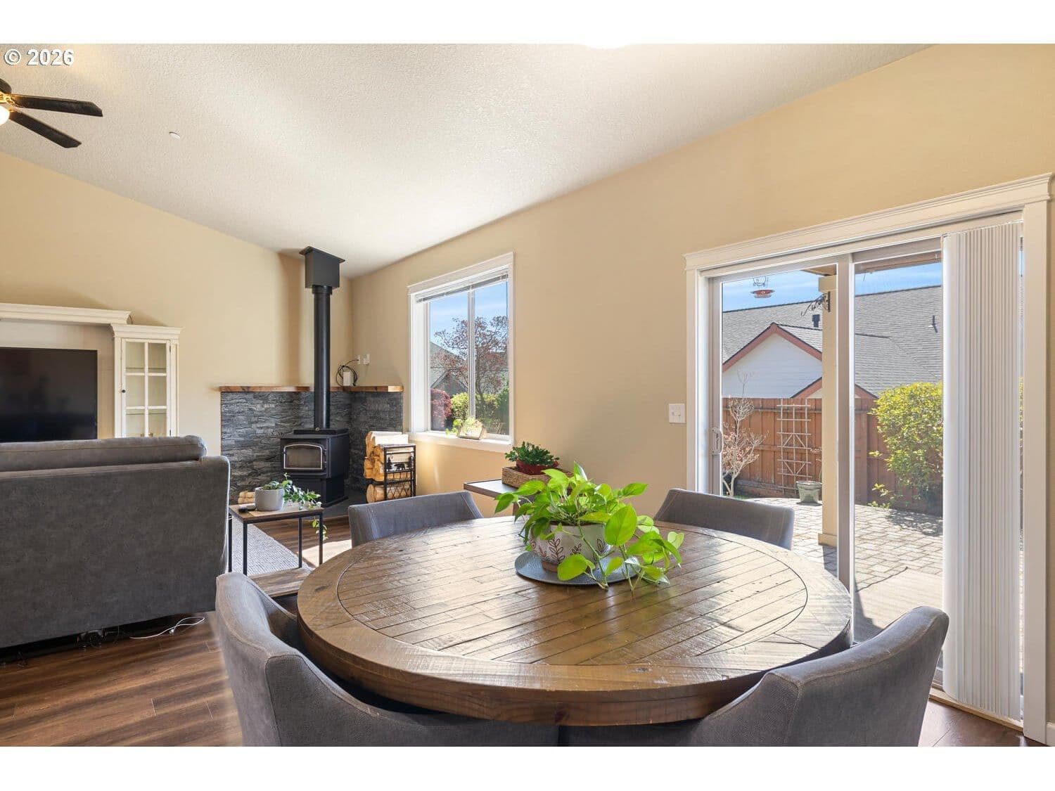 There’s something straightforward about a well-designed single-level home. Movement is easy, spaces connect naturally, and daily life doesn’t require much thought or adjustment. Open kitchen and family room sit under vaulted ceilings, giving a sense of volume while keeping everything connected. It’s open without feeling oversized, and functional without feeling tight. Outside of the living space, the property offers a different kind of flexibility. A 3-car garage plus 12 foot gate span side access (with 30 AMP) creates room for the things that don’t always fit neatly—RVs, vans, trailers, or simply extra space to spread out. Original driveway extended 15 X 50. With owned solar and new exterior paint, the focus shifts away from maintenance and toward long-term usability. New freestanding wood stove, a ductless HVAC system for the garage & new Bryant Evolution Fan coil & 20 SEER Heat Pump. It’s a home that supports how people actually live— simple to navigate, adaptable, and built to handle both routine and change.